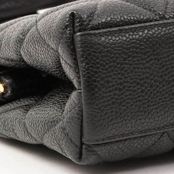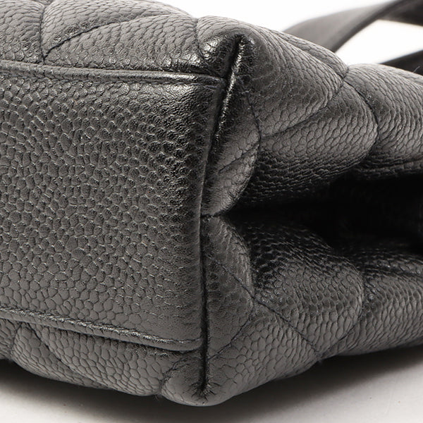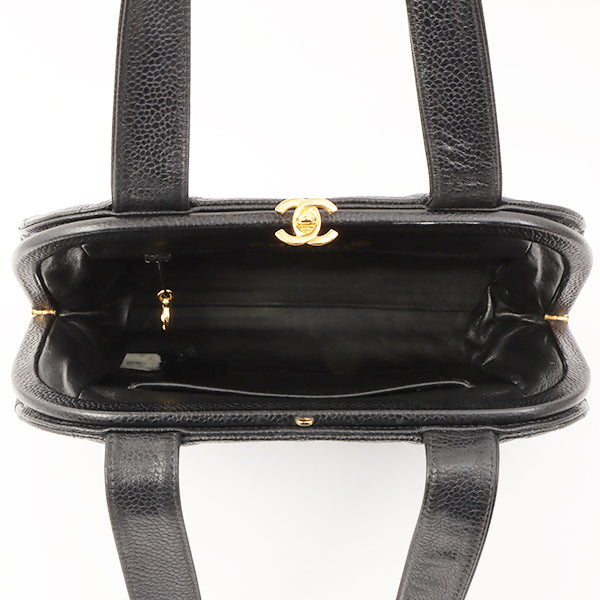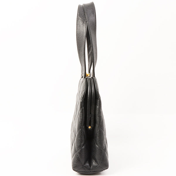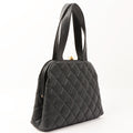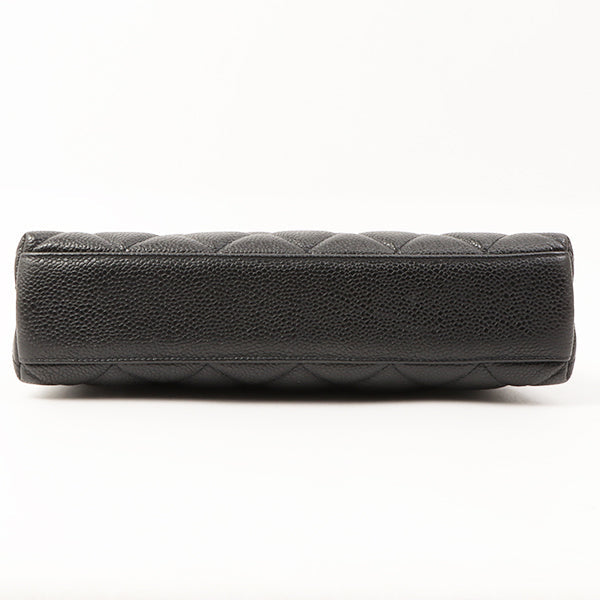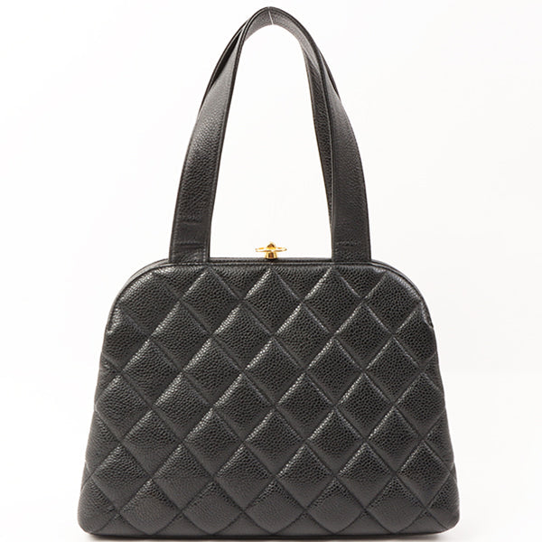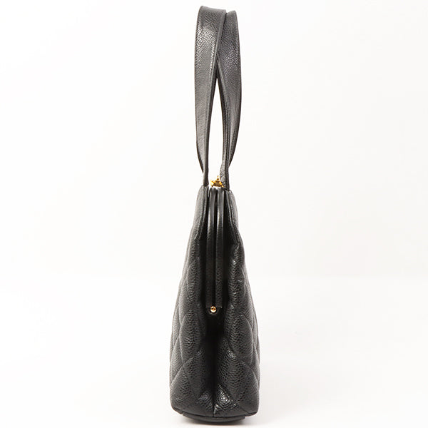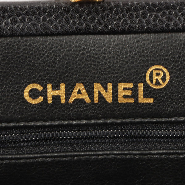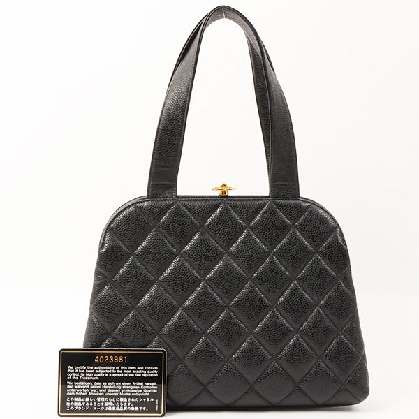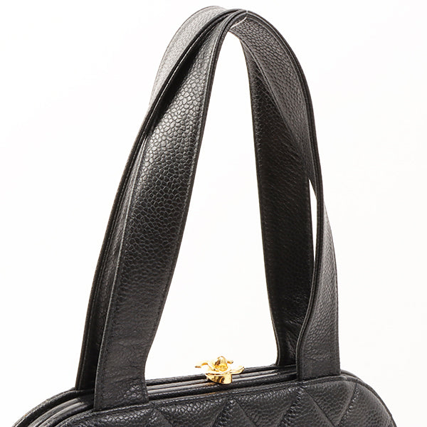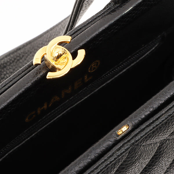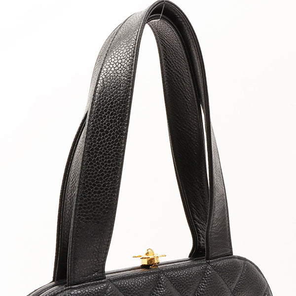 Chanel Around 1997 Made Caviar Skin Matelasse Plate Metal Clasp Hand Bag Black