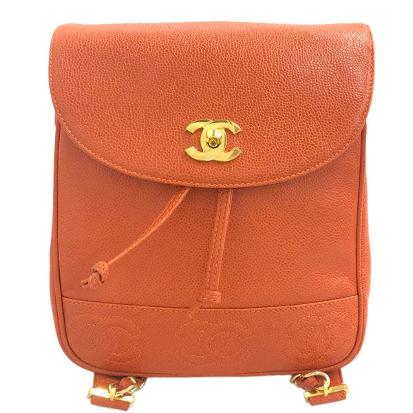 CHANEL Around 1997 Made Caviar Skin Turn-Lock Backpack Orange