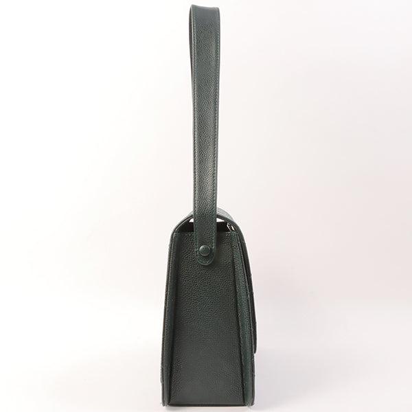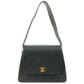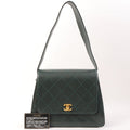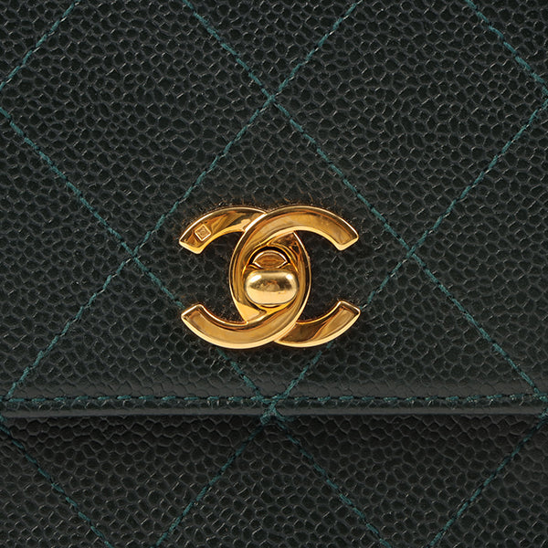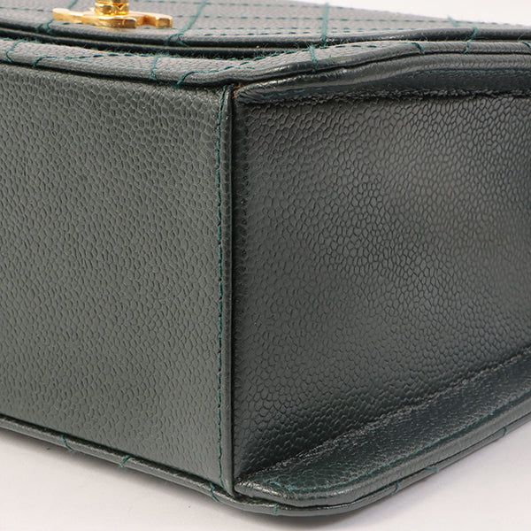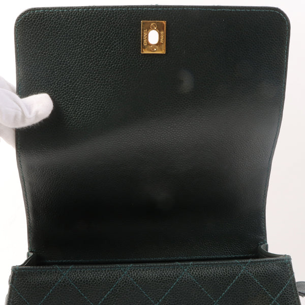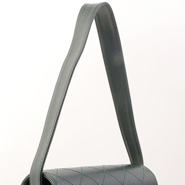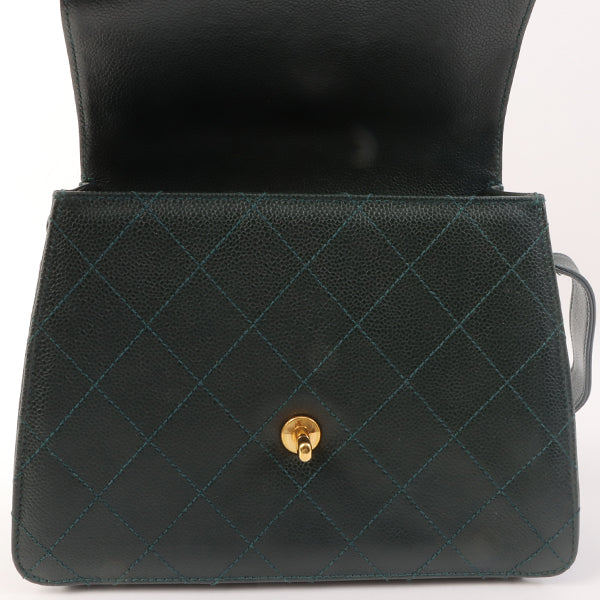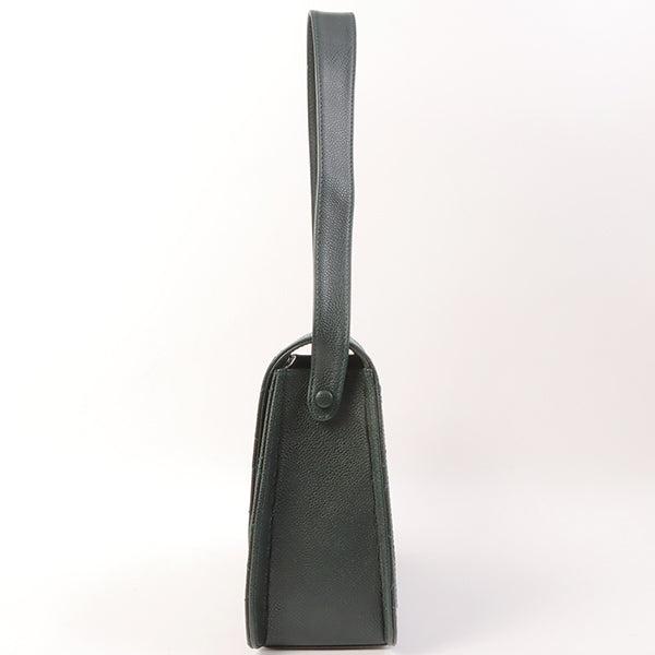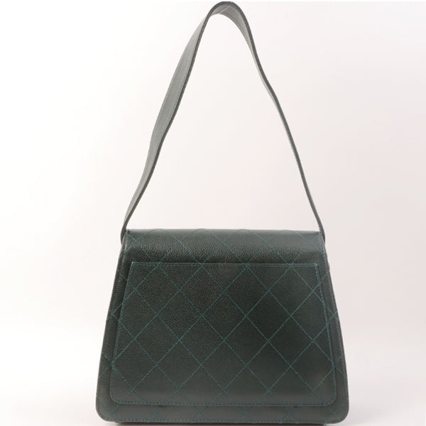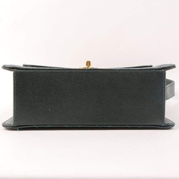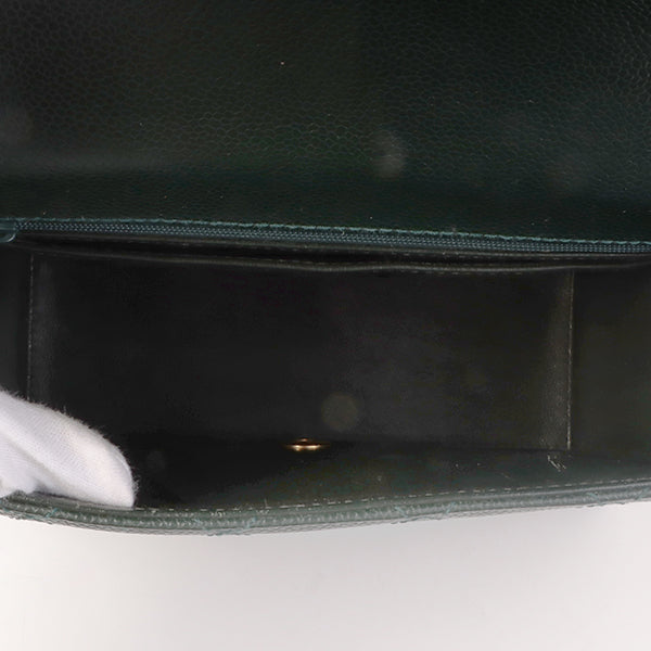 Chanel Around 1997 Made Caviar Skin Turn-Lock Shoulder Bag Dark Green