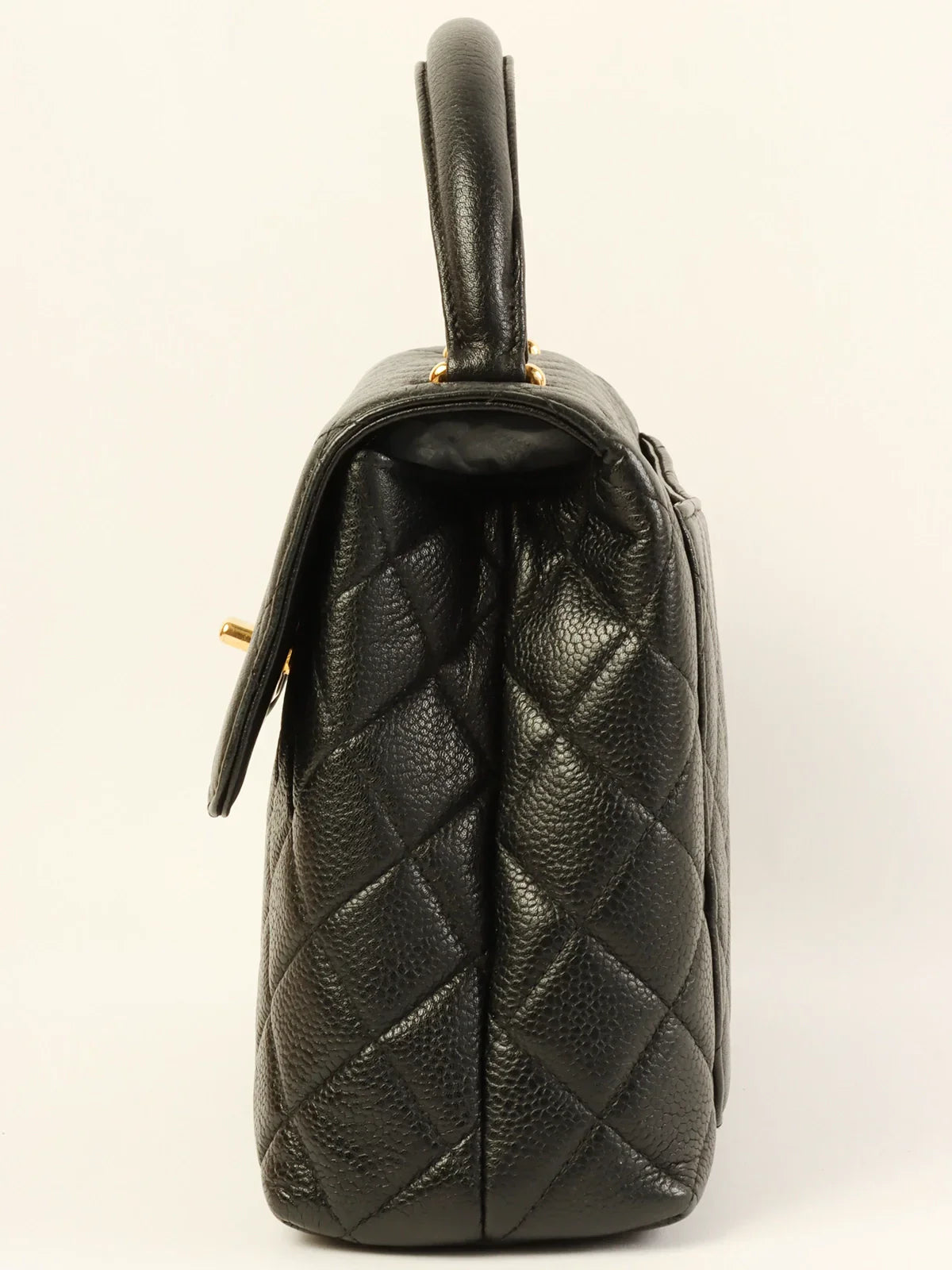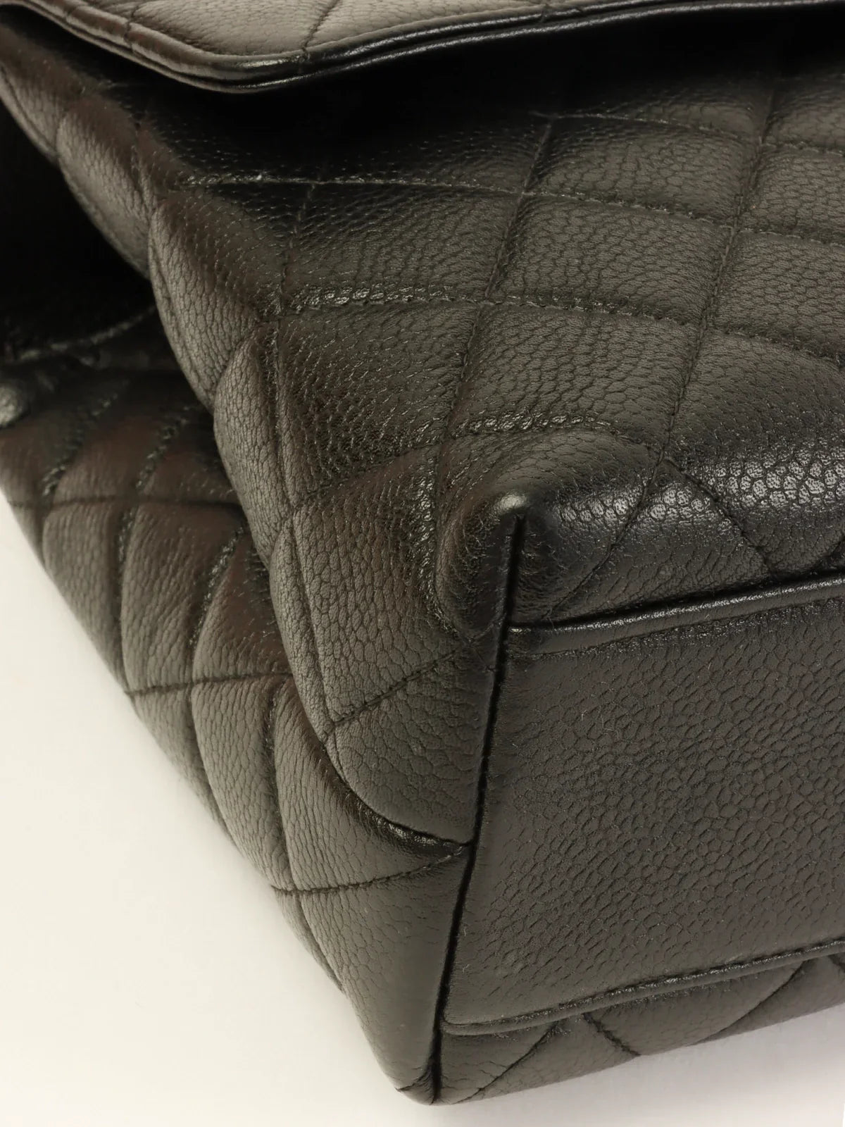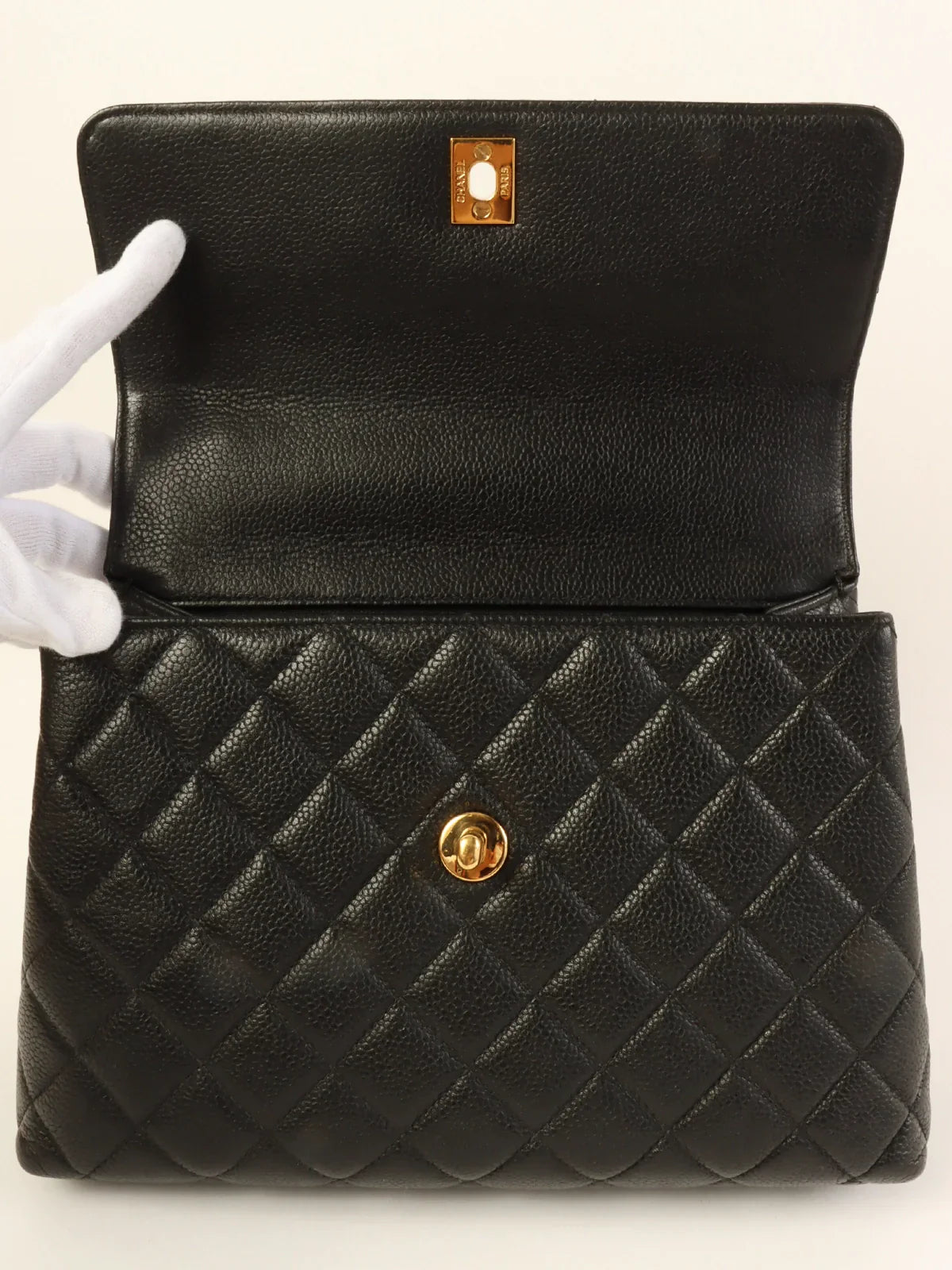 CHANEL Around 1997 Made Caviar Skin Turn-Lock Top Handle Bag Black