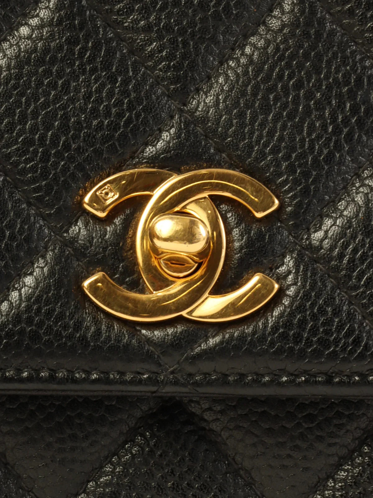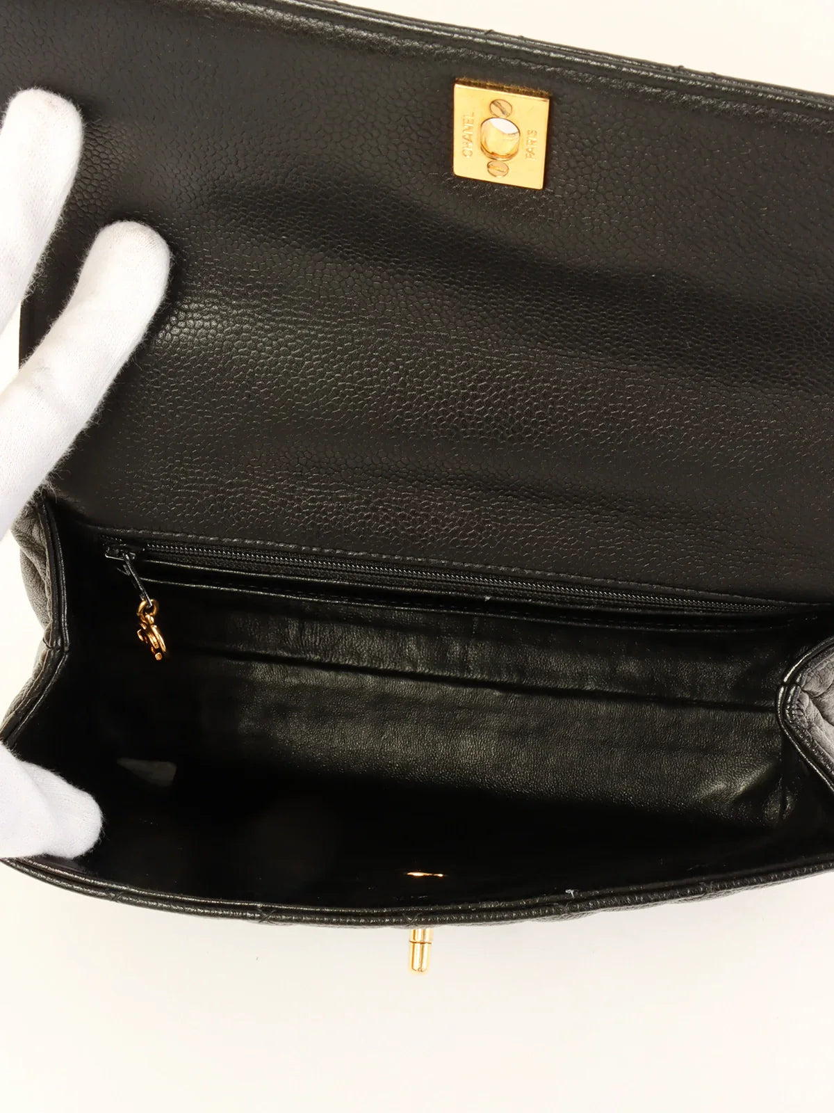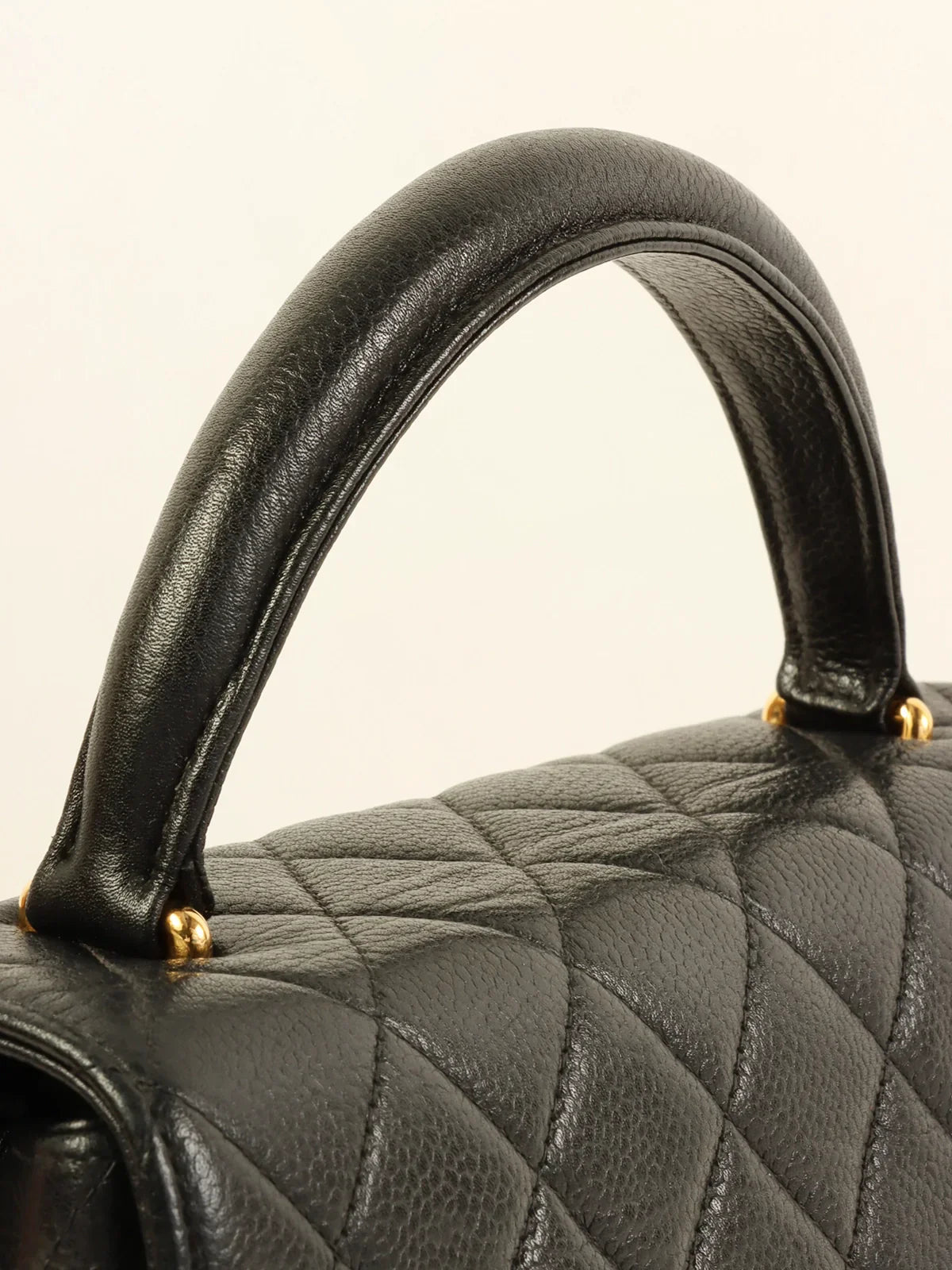 CHANEL Around 1997 Made Caviar Skin Turn-Lock Top Handle Bag Black