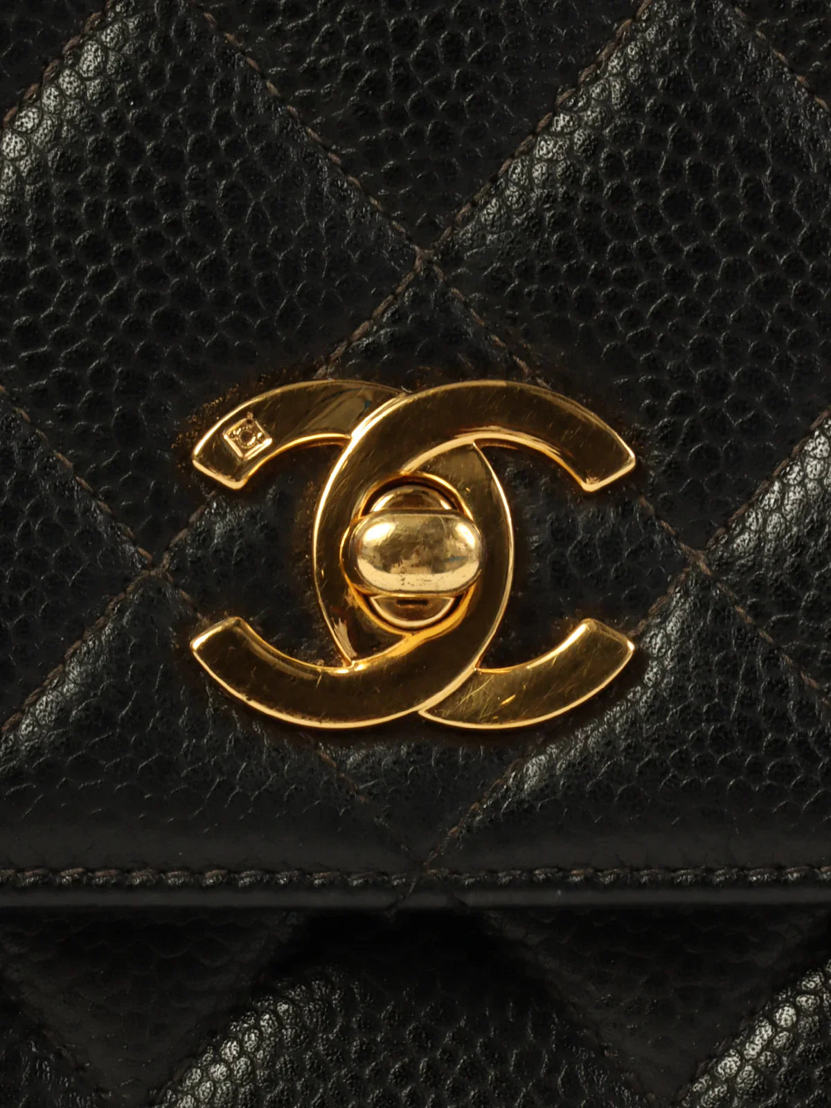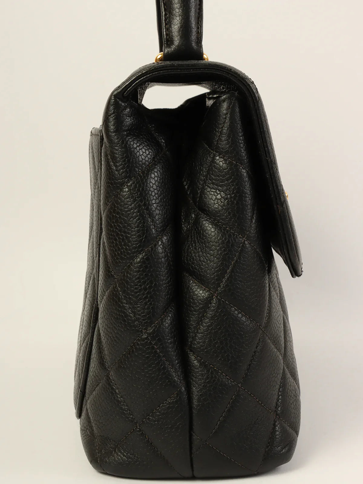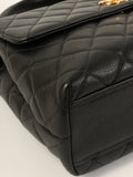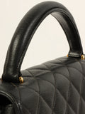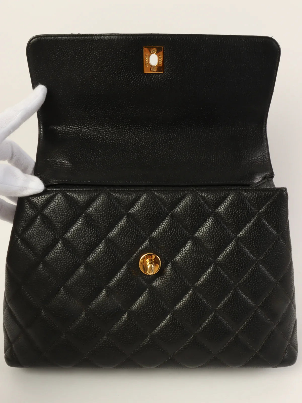 CHANEL Around 1997 Made Caviar Skin Turn-Lock Top Handle Bag Black