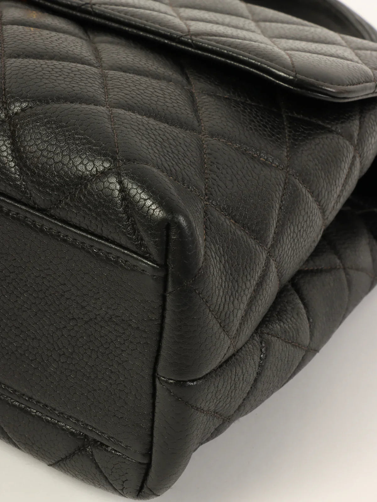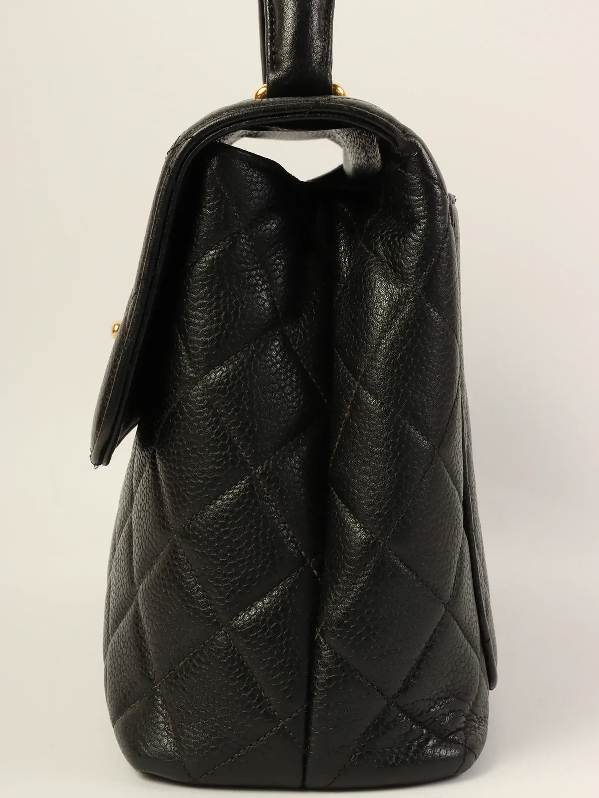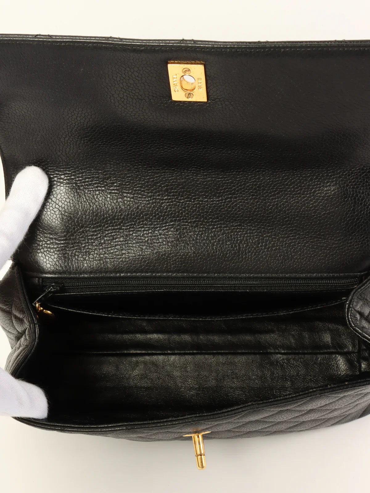 CHANEL Around 1997 Made Caviar Skin Turn-Lock Top Handle Bag Black