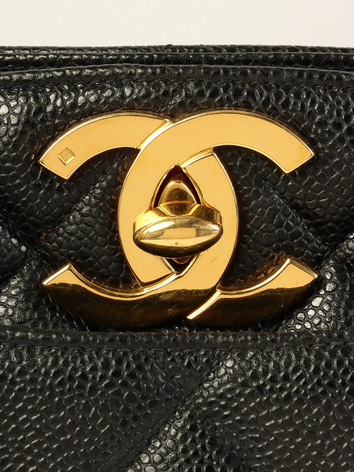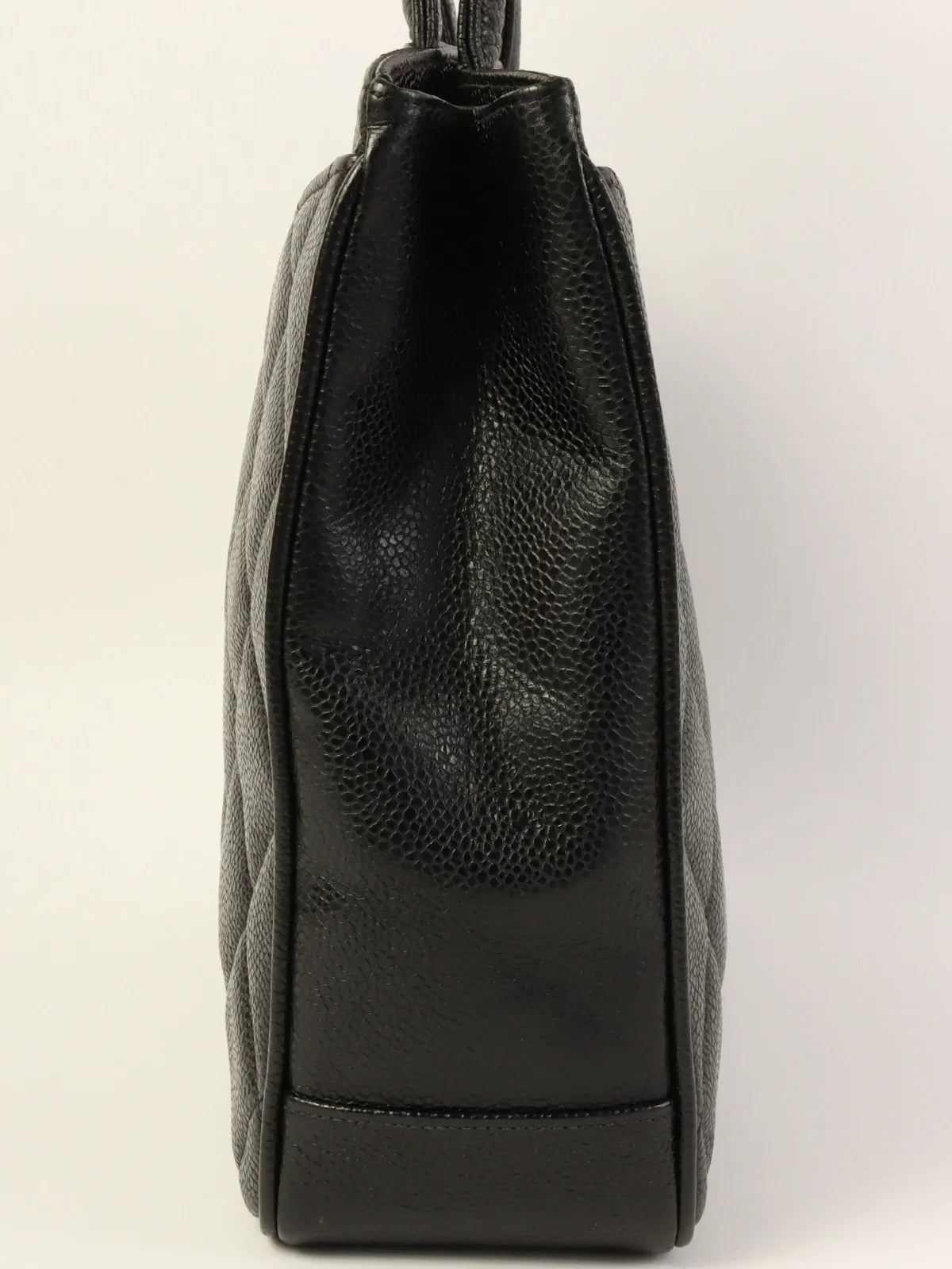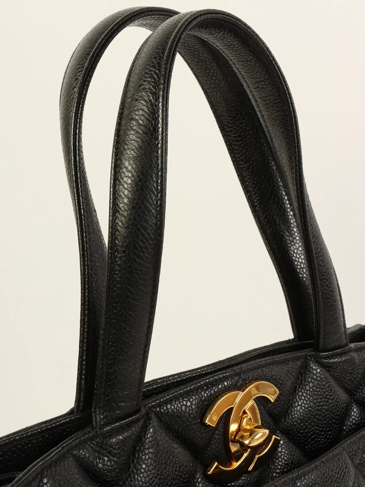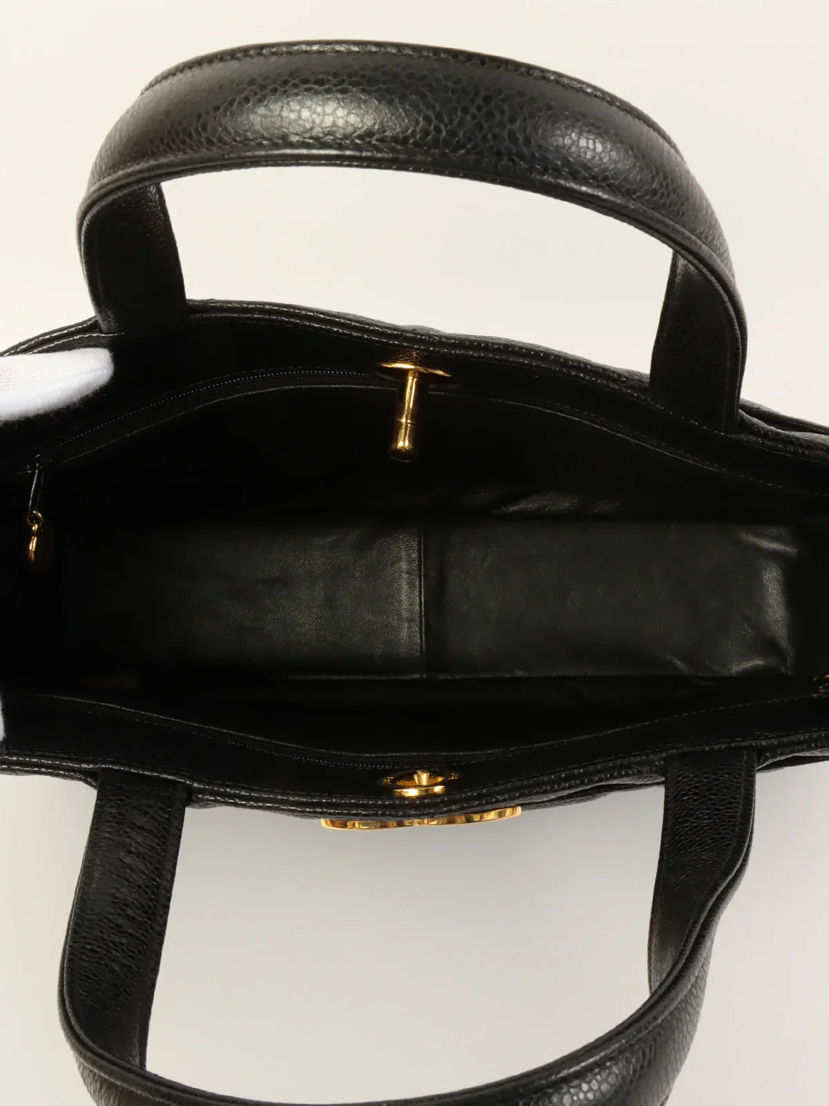 CHANEL Around 1997 Made Caviar Skin Turn-Lock Tote Bag Black