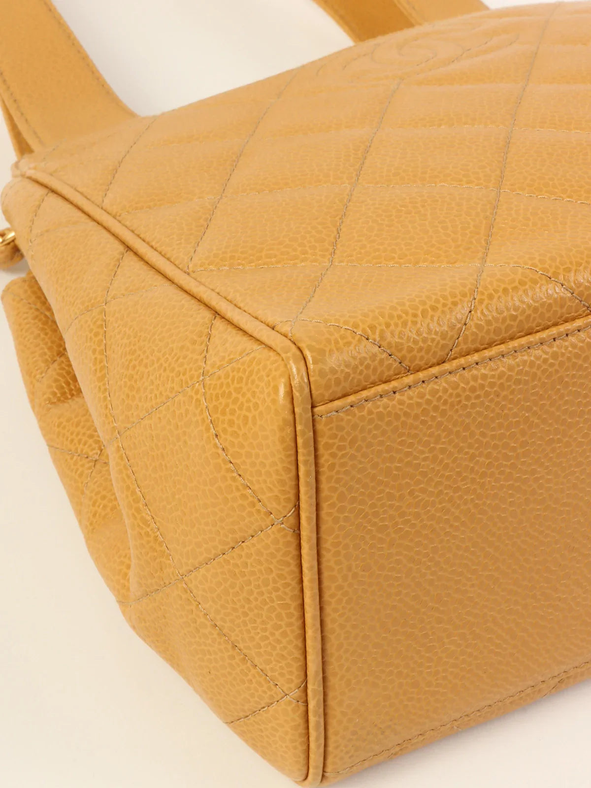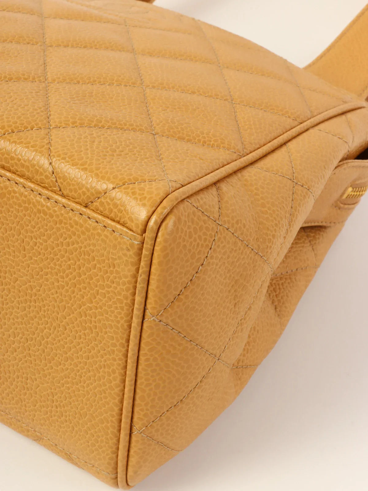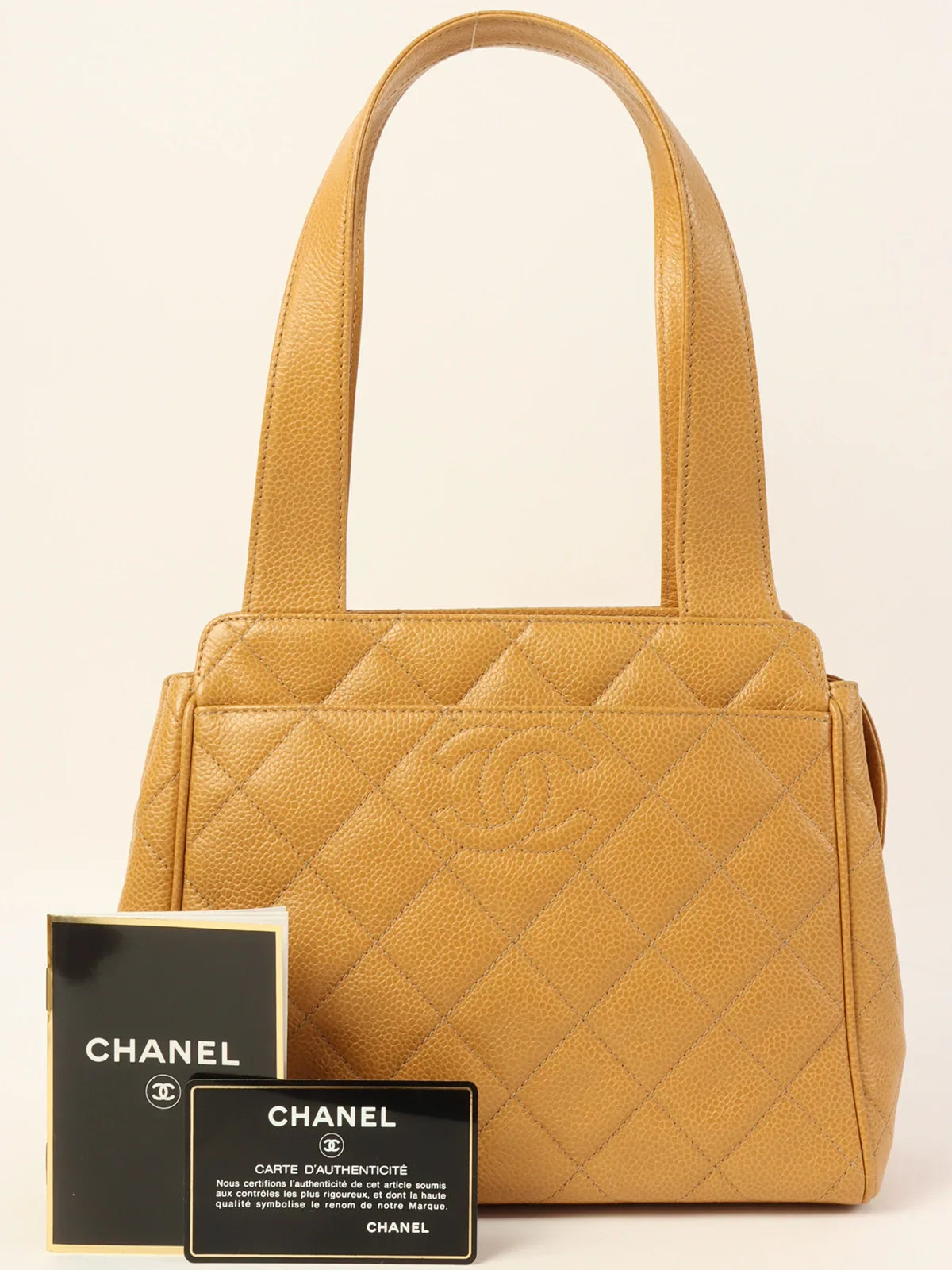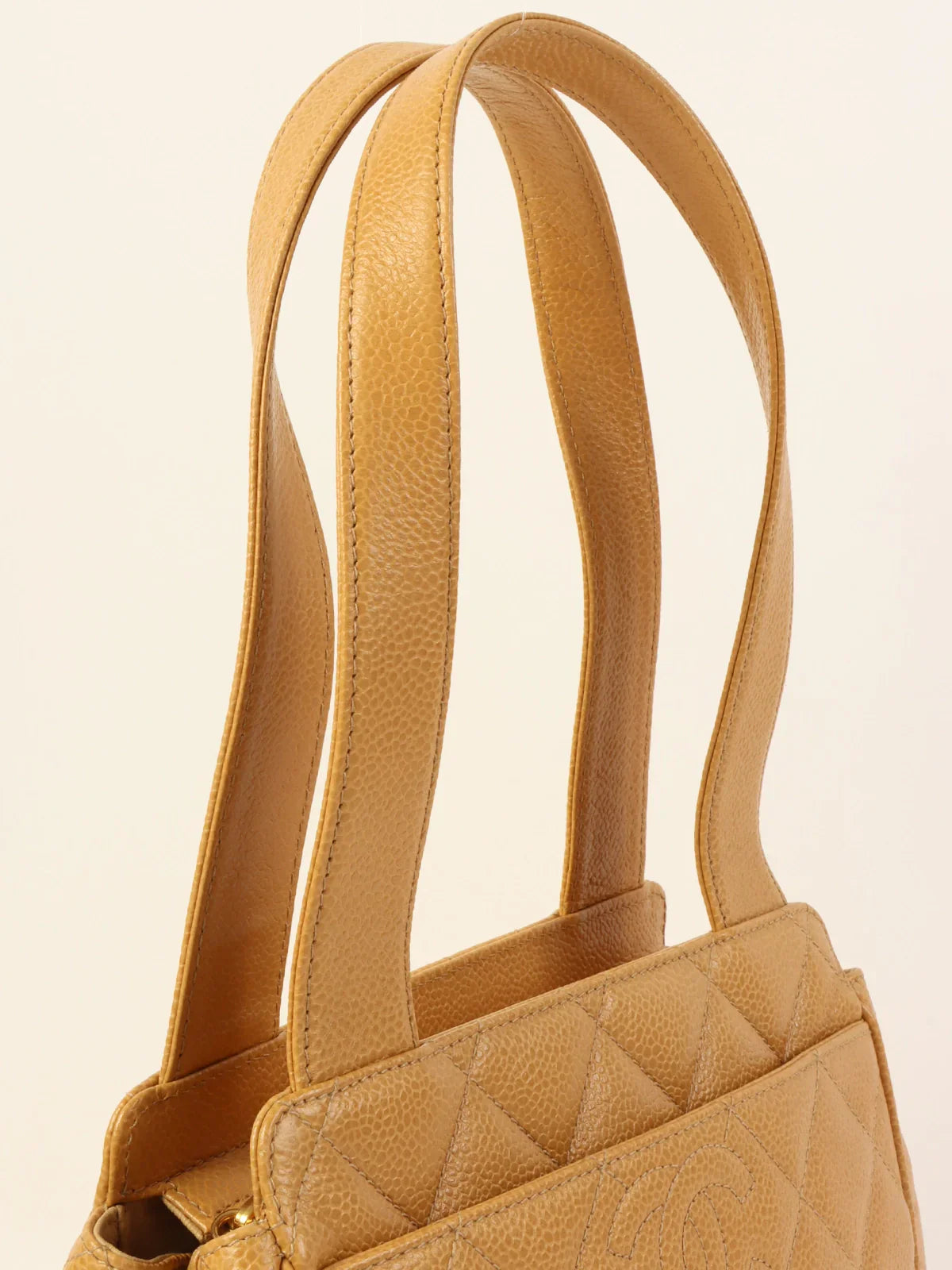 CHANEL Around 1997 Made Cc Mark Stitch Top Handle Bag Beige
