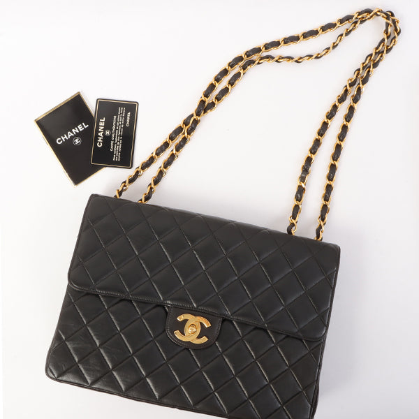 Chanel Around 1997 Made Classic Flap Chain Bag Jumbo Black