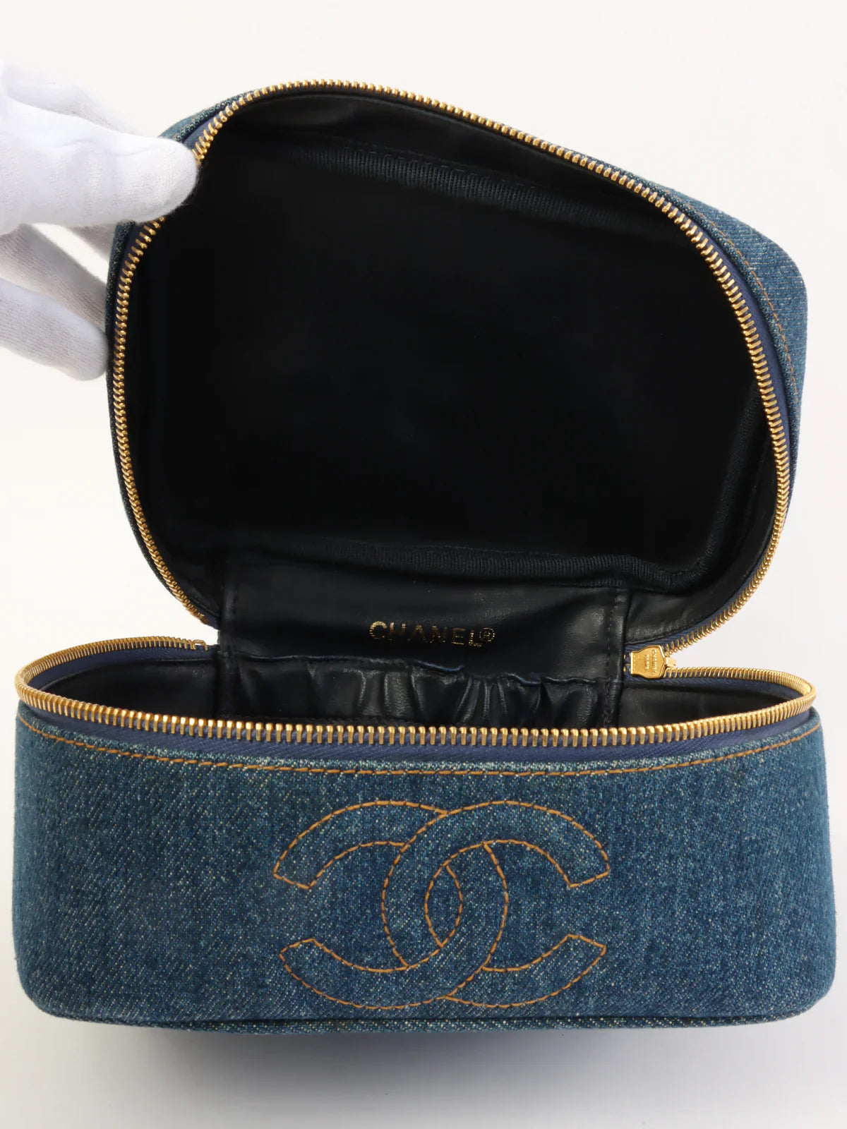 CHANEL Around 1997 Made Denim Cc Mark Stitch Vanity Indigo