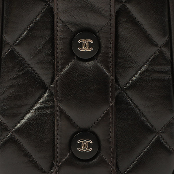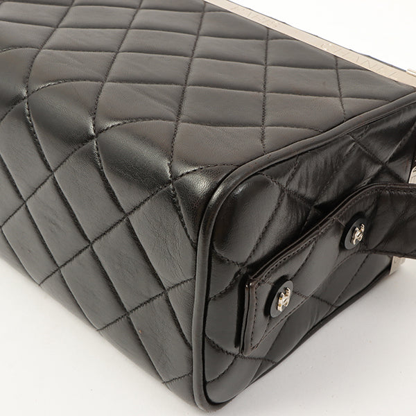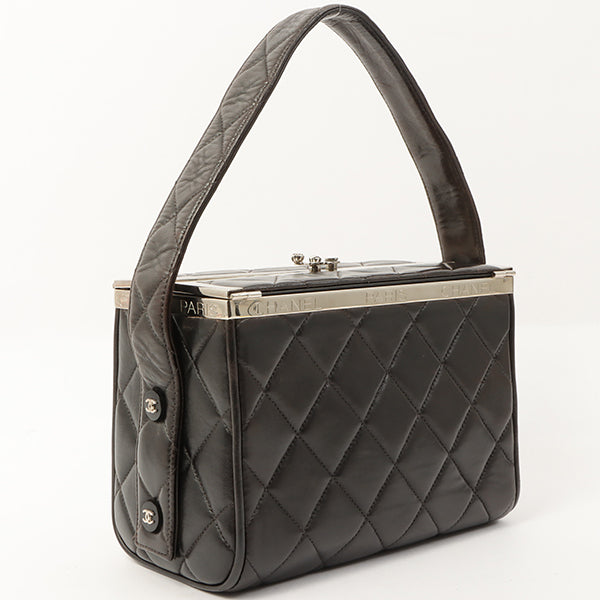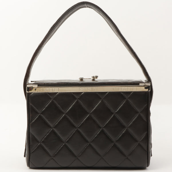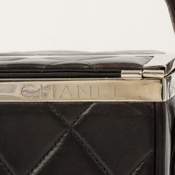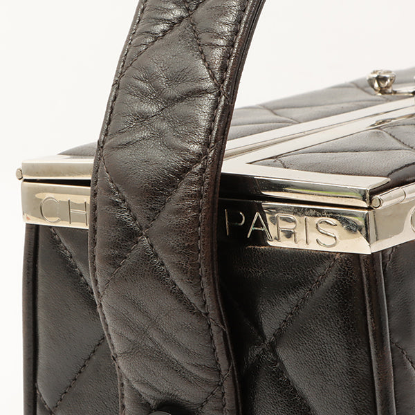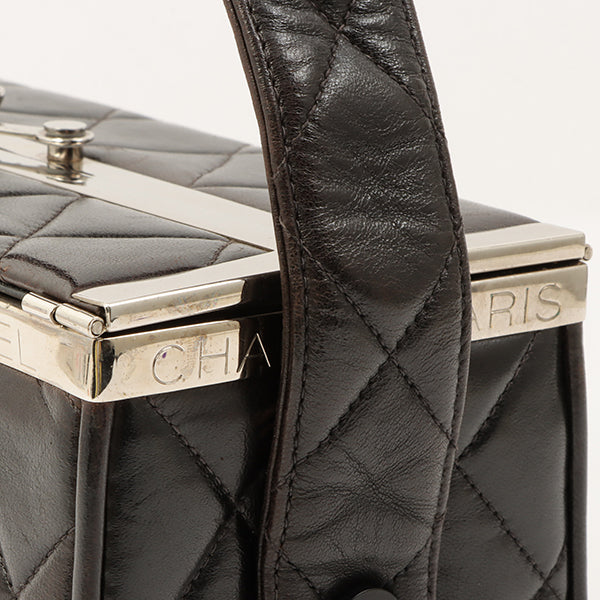 Chanel Around 1997 Made Logo Plate Box Handbag Black/Silver