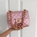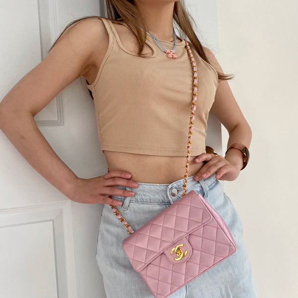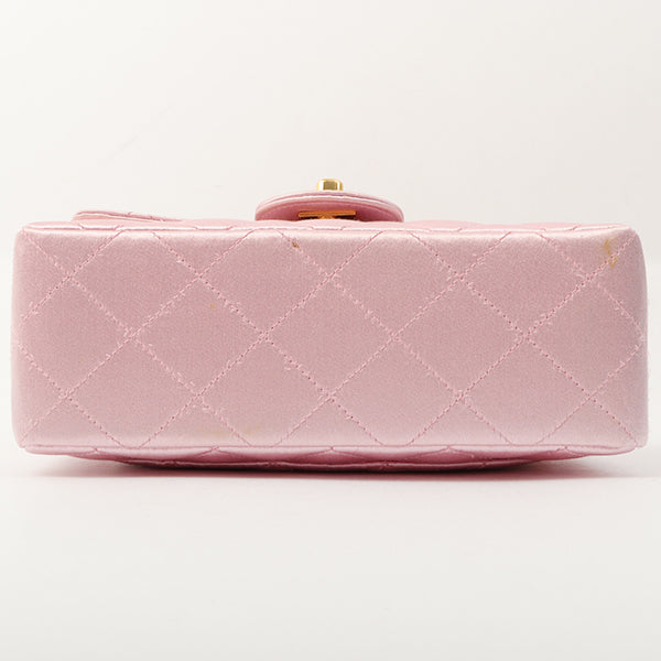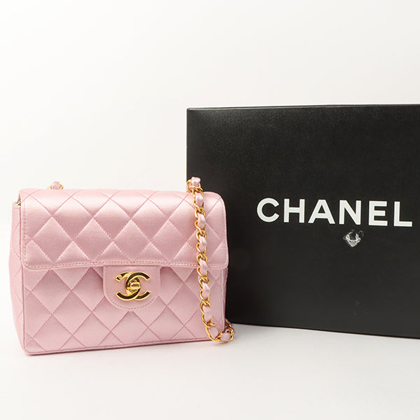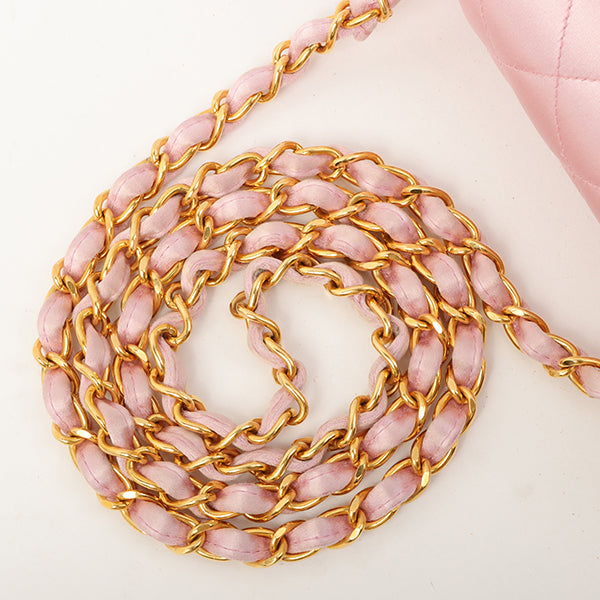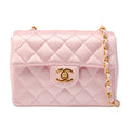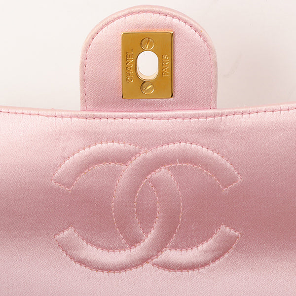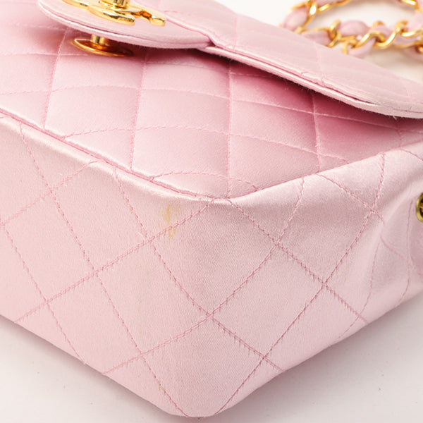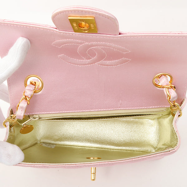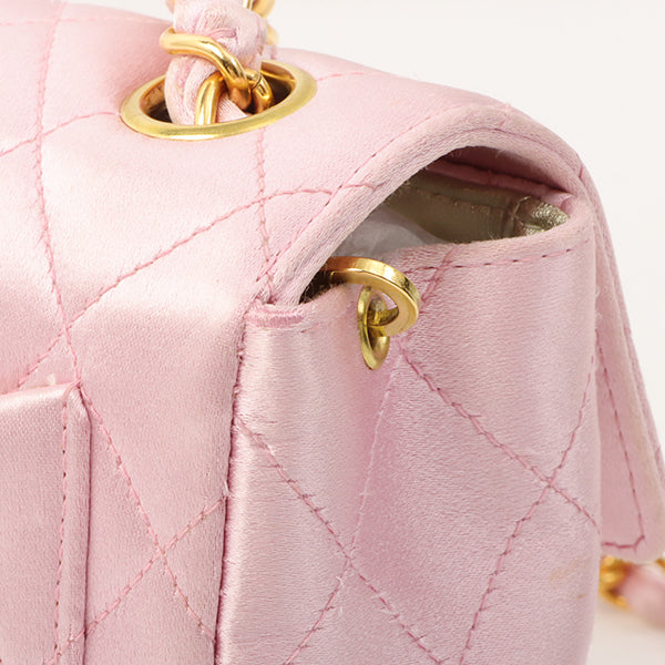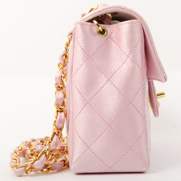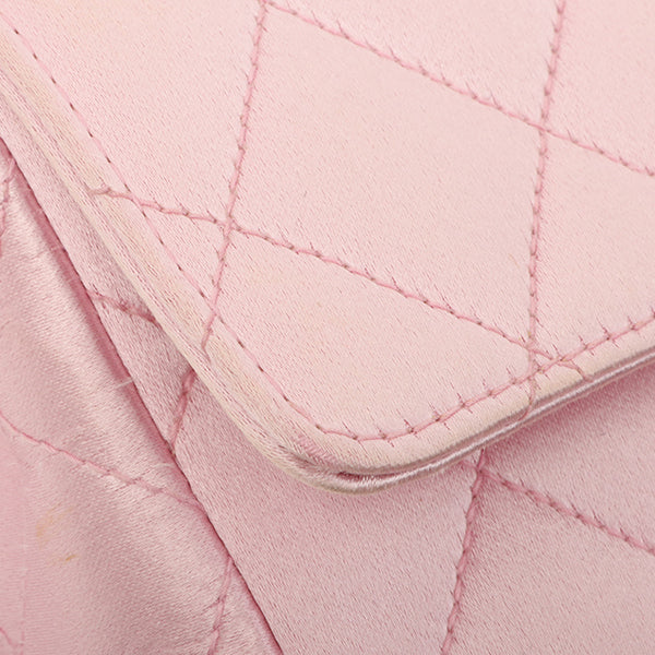 Chanel Around 1997 Made Silk Stain Classic Flap Chain Bag Mini Pink