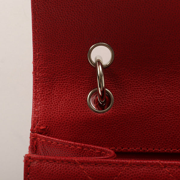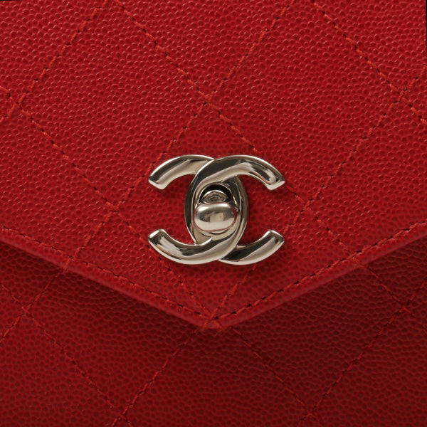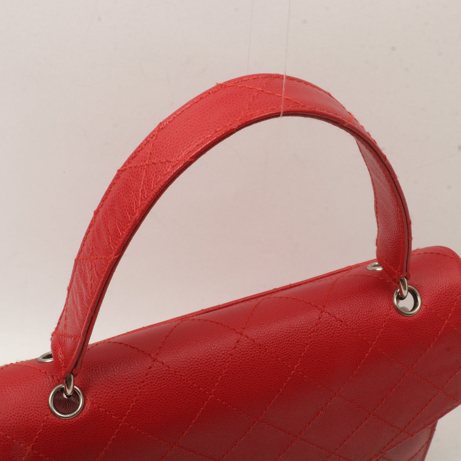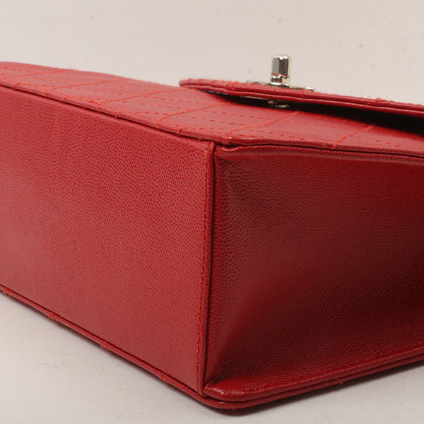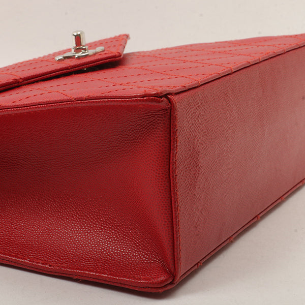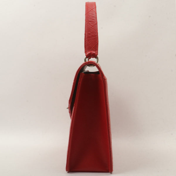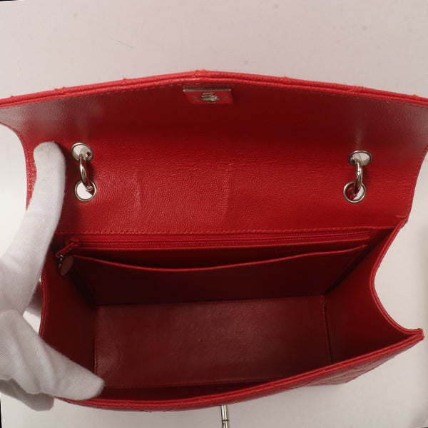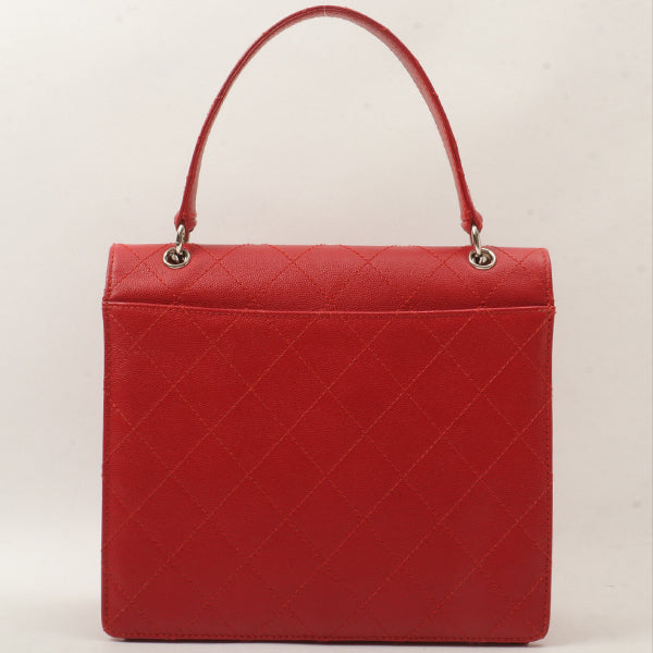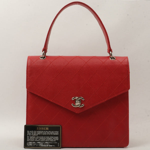 Chanel Around 1998 Made Bicolore Stitch Turn-Lock Handbag Red/Silver