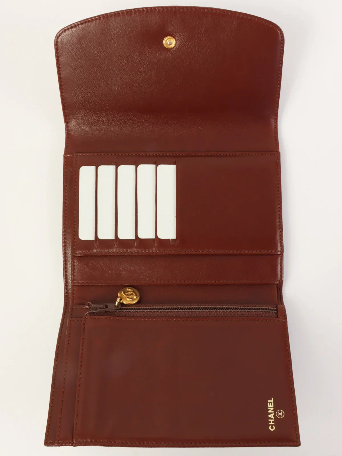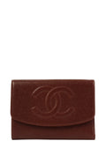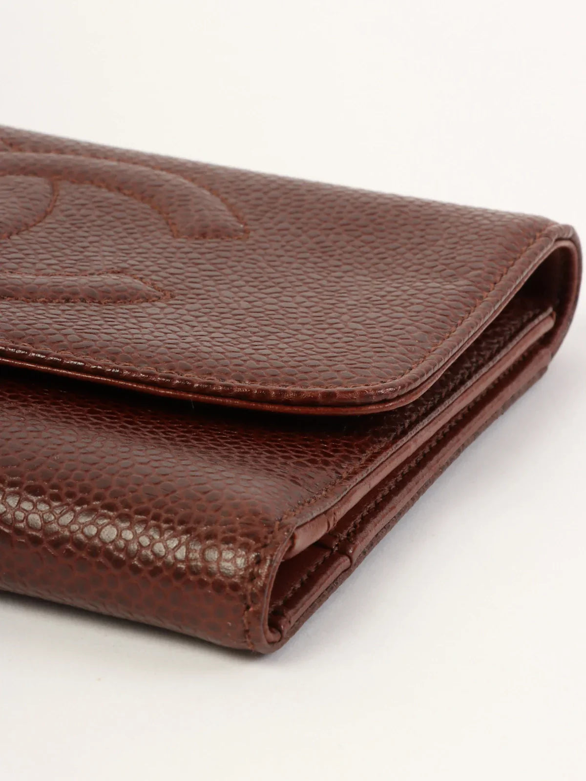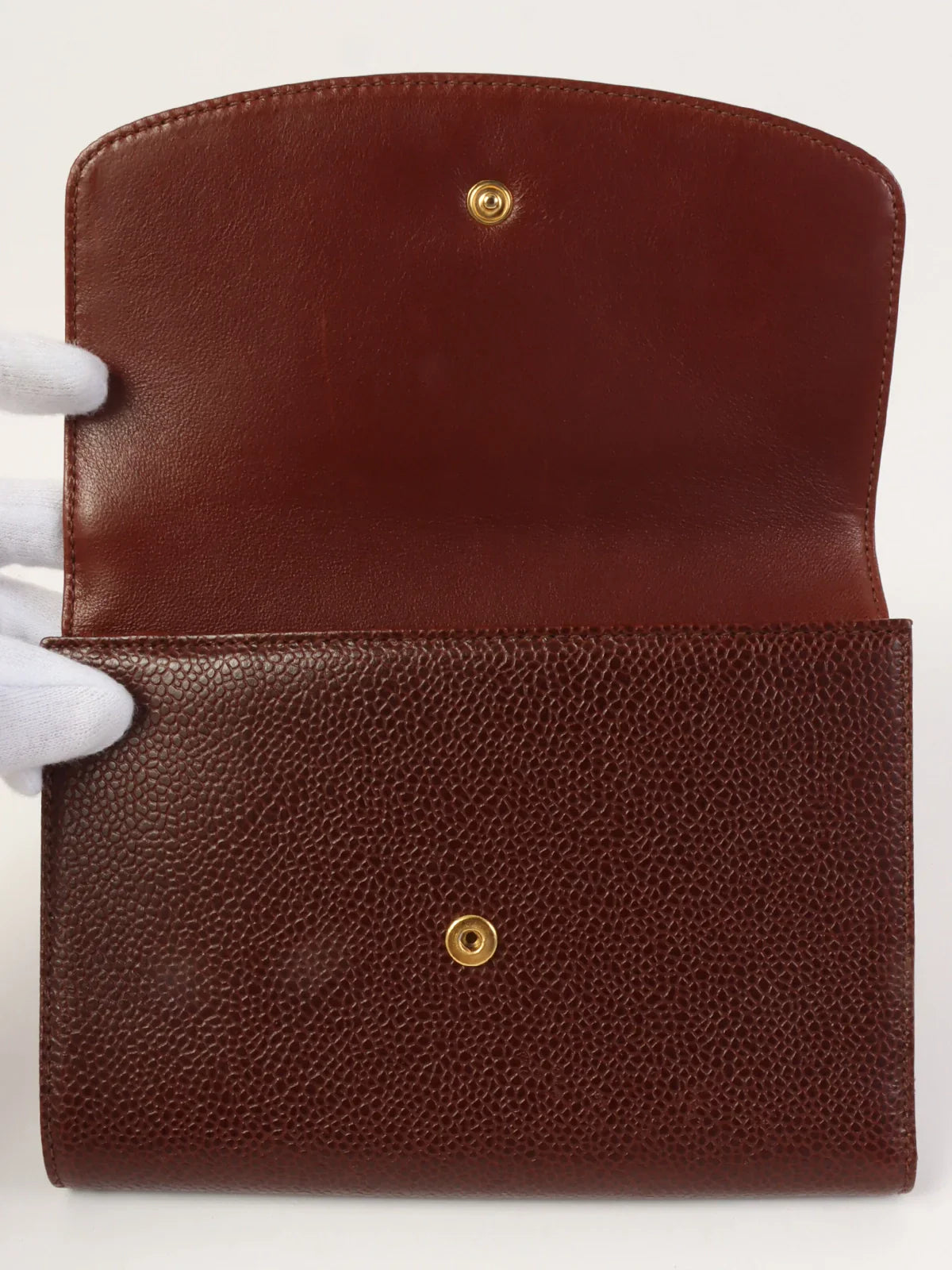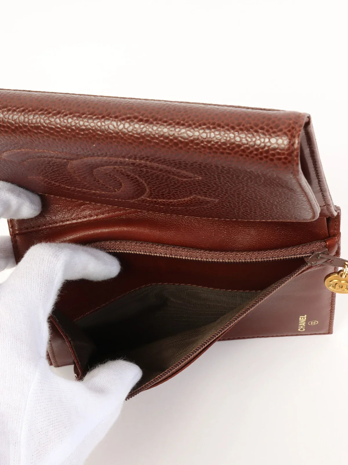 CHANEL Around 1998 Made Caivar Skin Cc Mark Stitch Wallet Brown