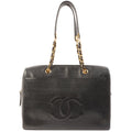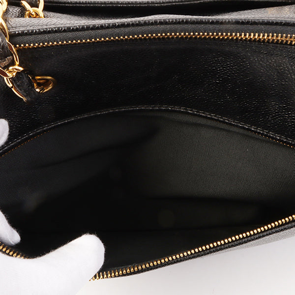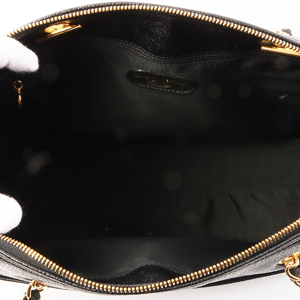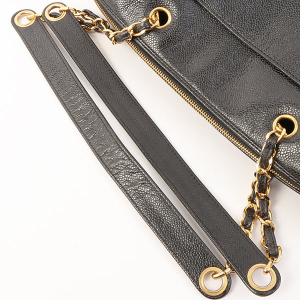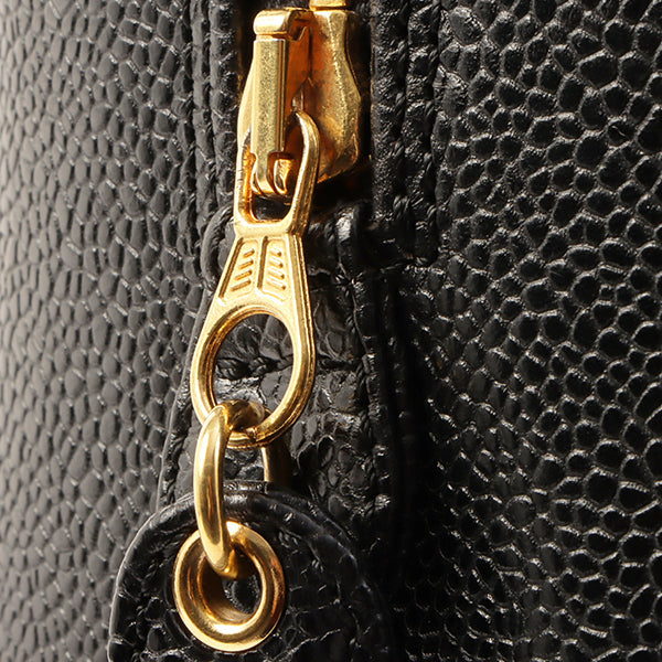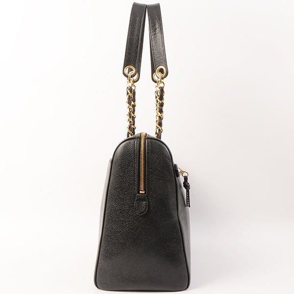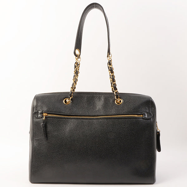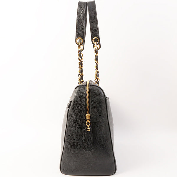 Chanel Around 1998 Made Caviar Skin Cc Mark Stitch Chain Boston Bag Black