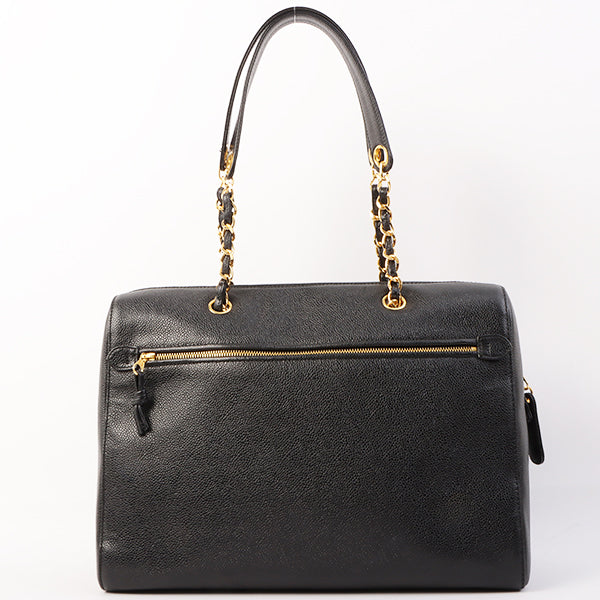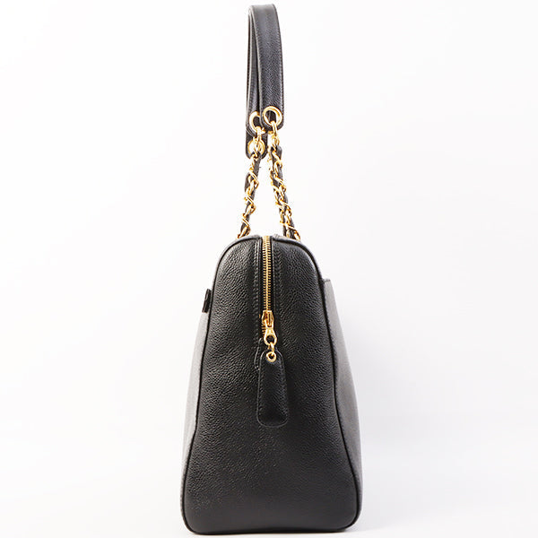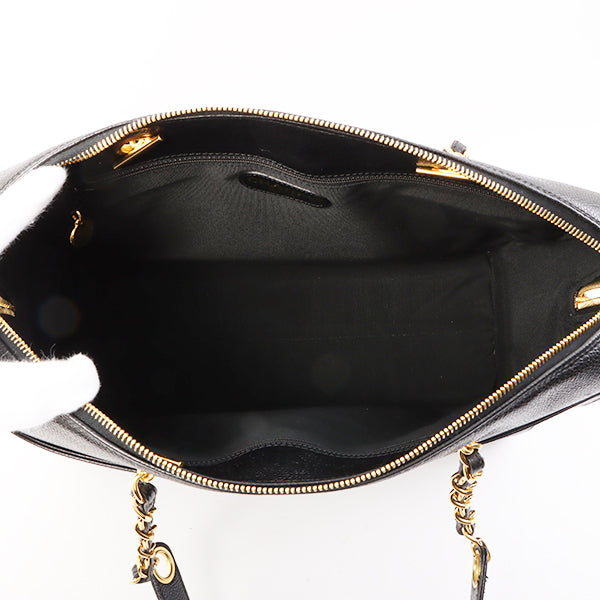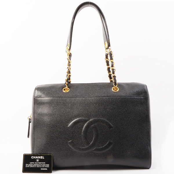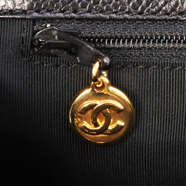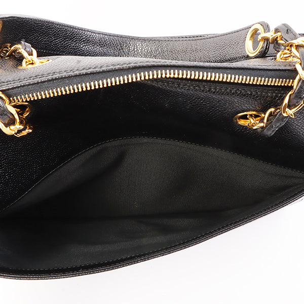 Chanel Around 1998 Made Caviar Skin Cc Mark Stitch Chain Tote Bag Black