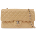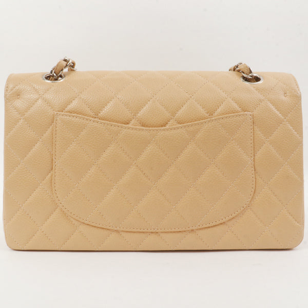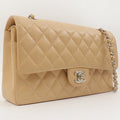 Chanel Around 1998 Made Caviar Skin Classic Flap Chain Bag 25Cm Beige/Silver