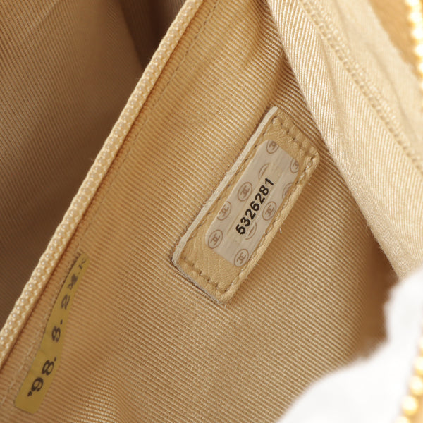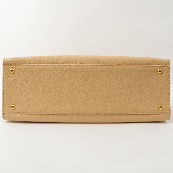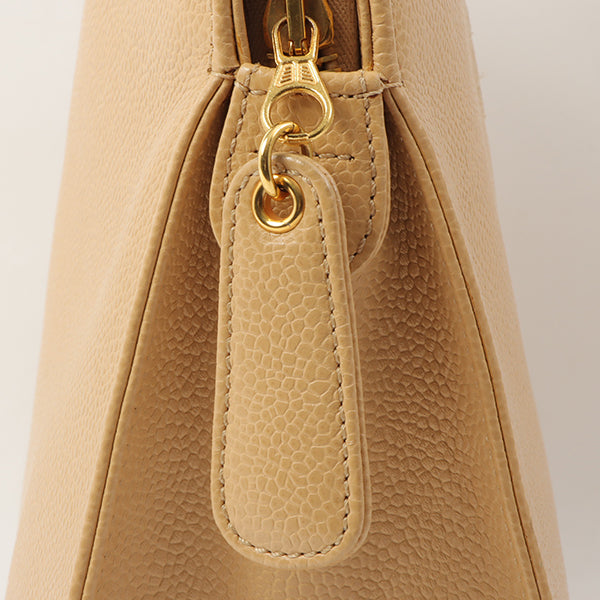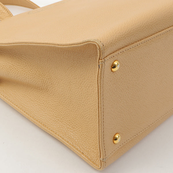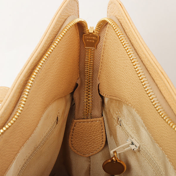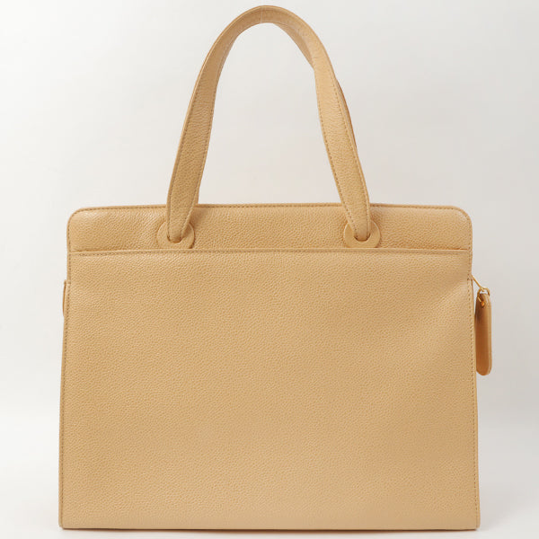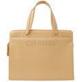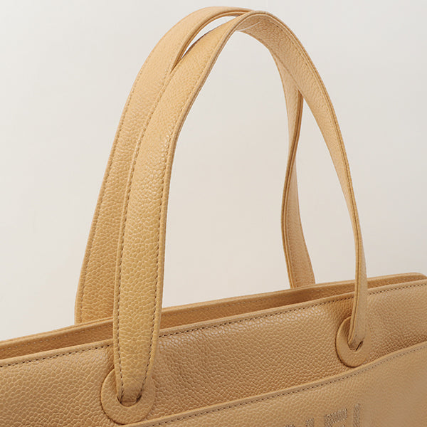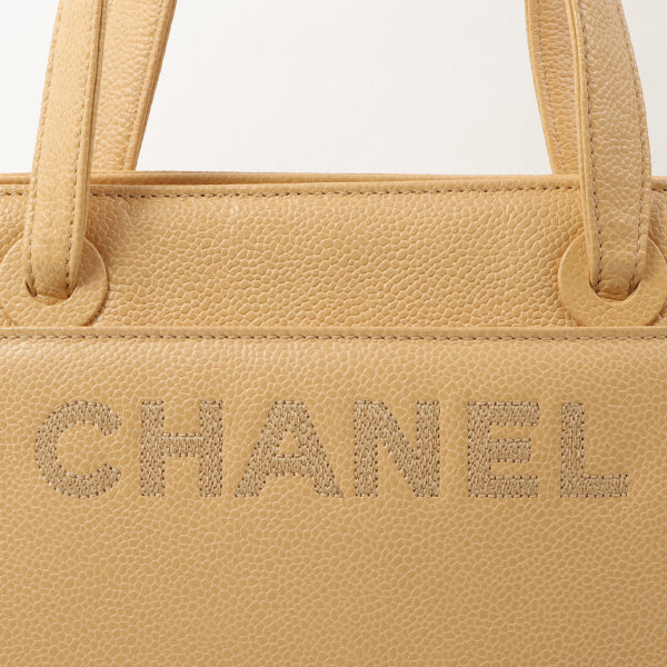 Chanel Around 1998 Made Caviar Skin Logo Embroidered Tote Bag Beige