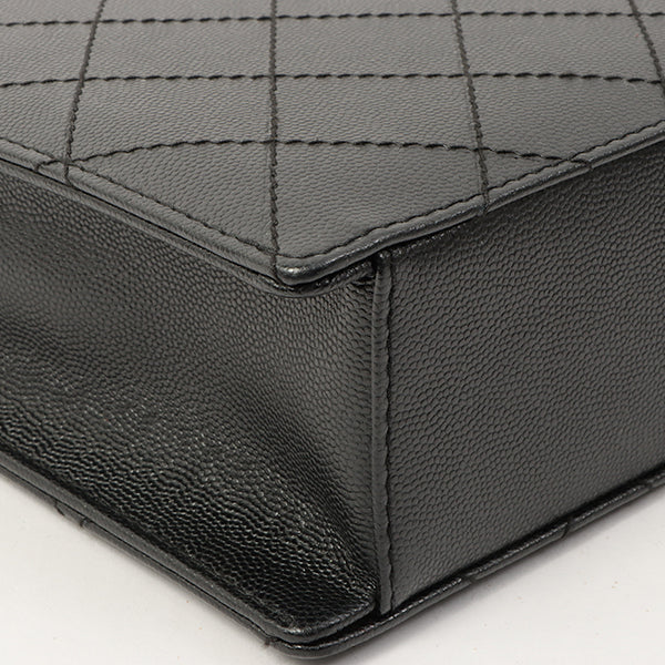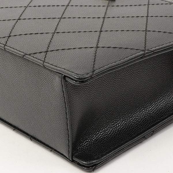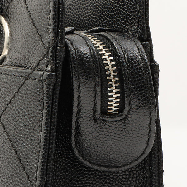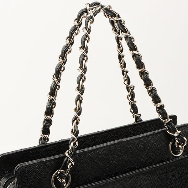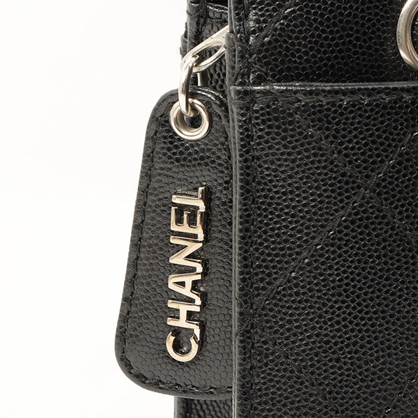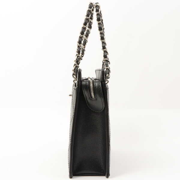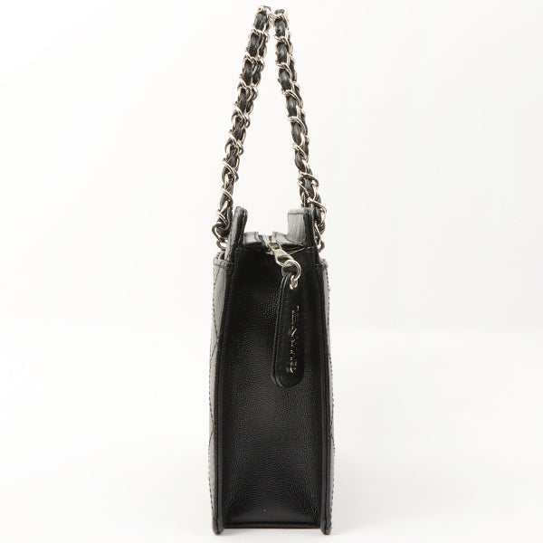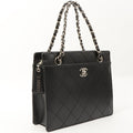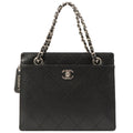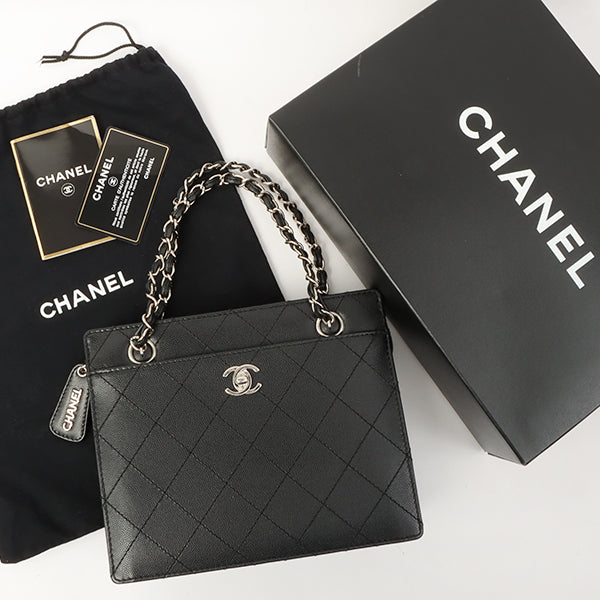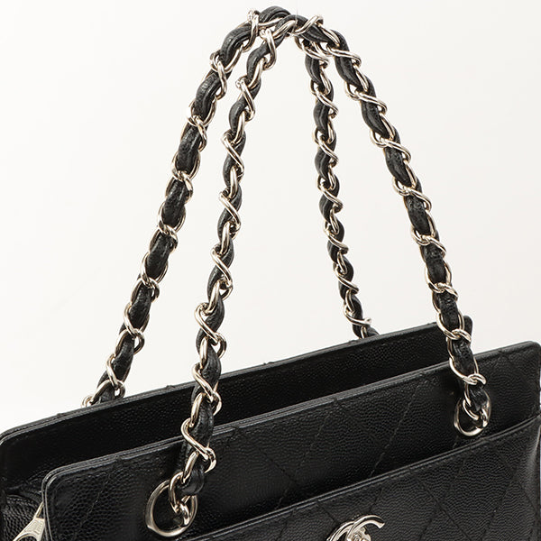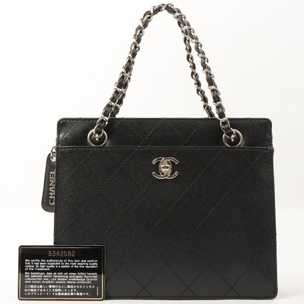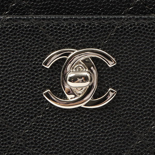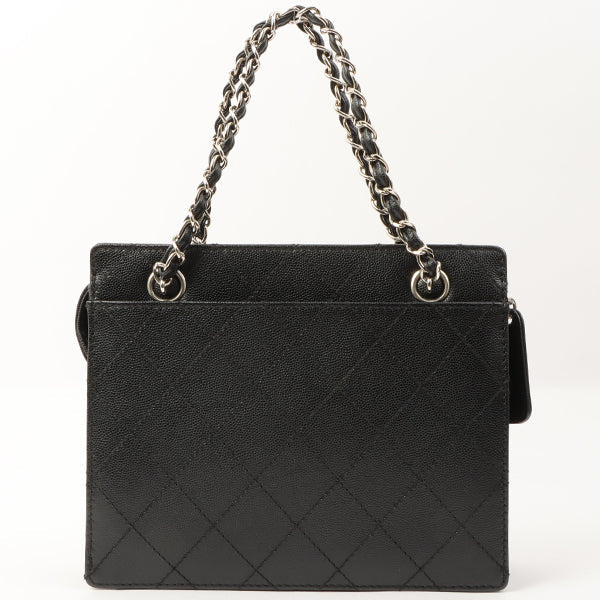 Chanel Around 1998 Made Caviar Skin Turn-Lock Chain Top Handle Bag Black