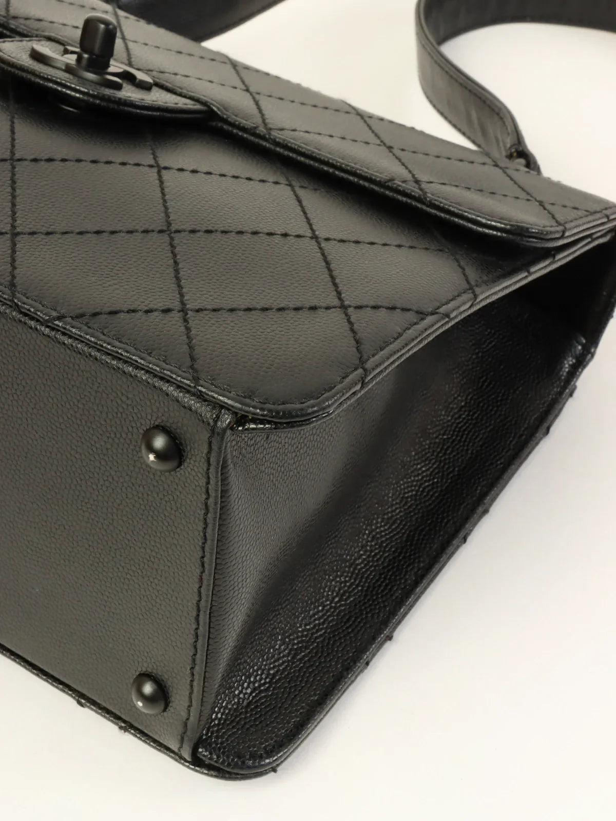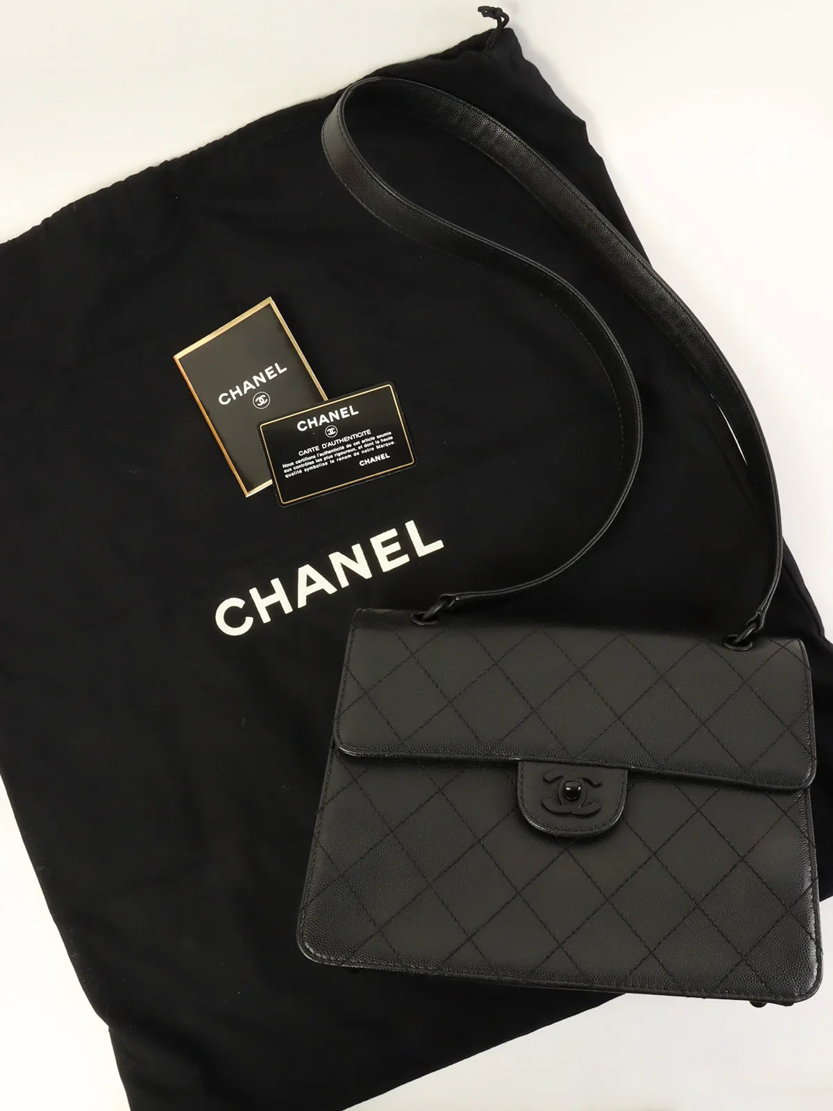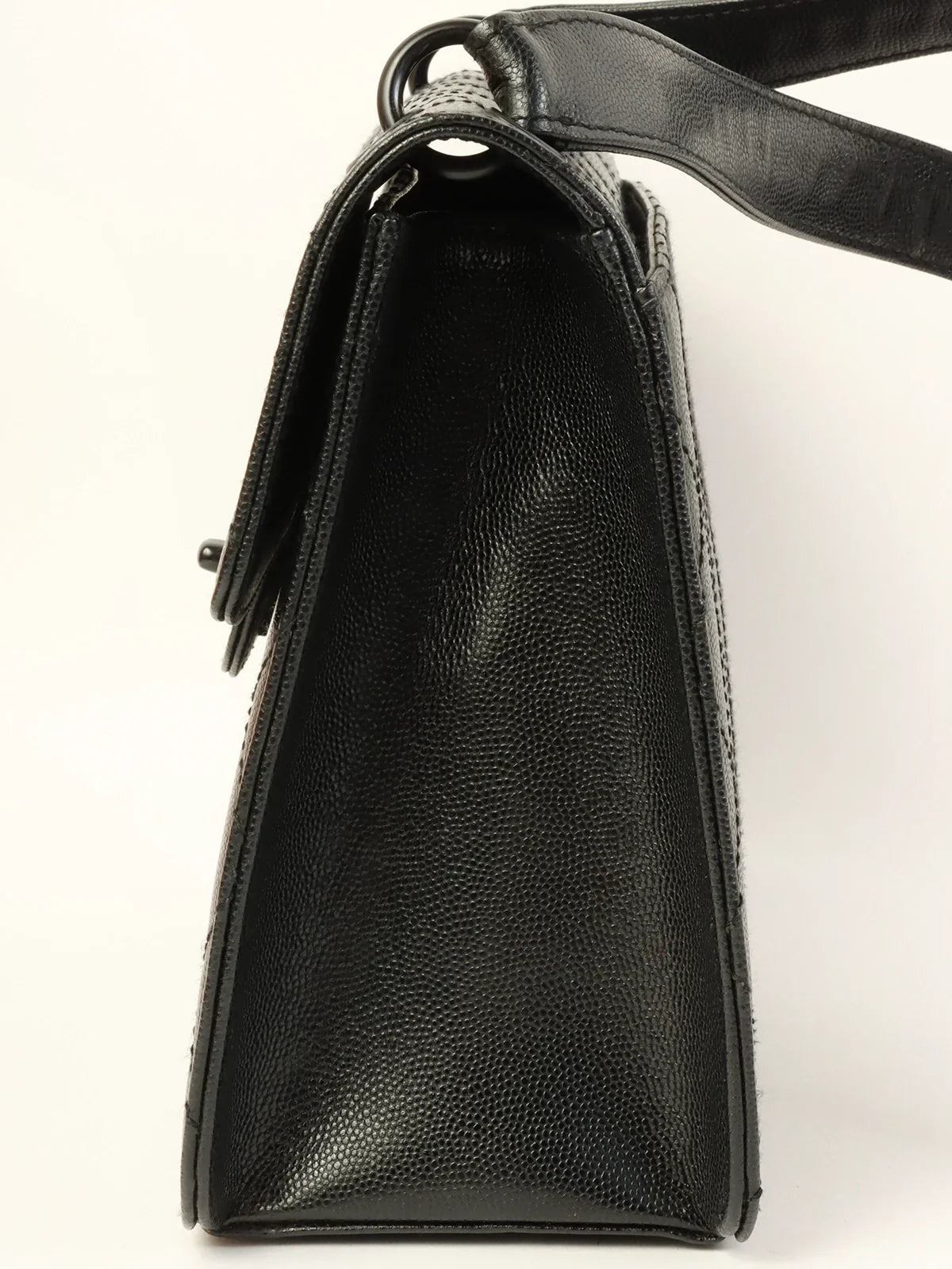 CHANEL Around 1998 Made Caviar Skin Turn-Lock Shoulder Bag Black