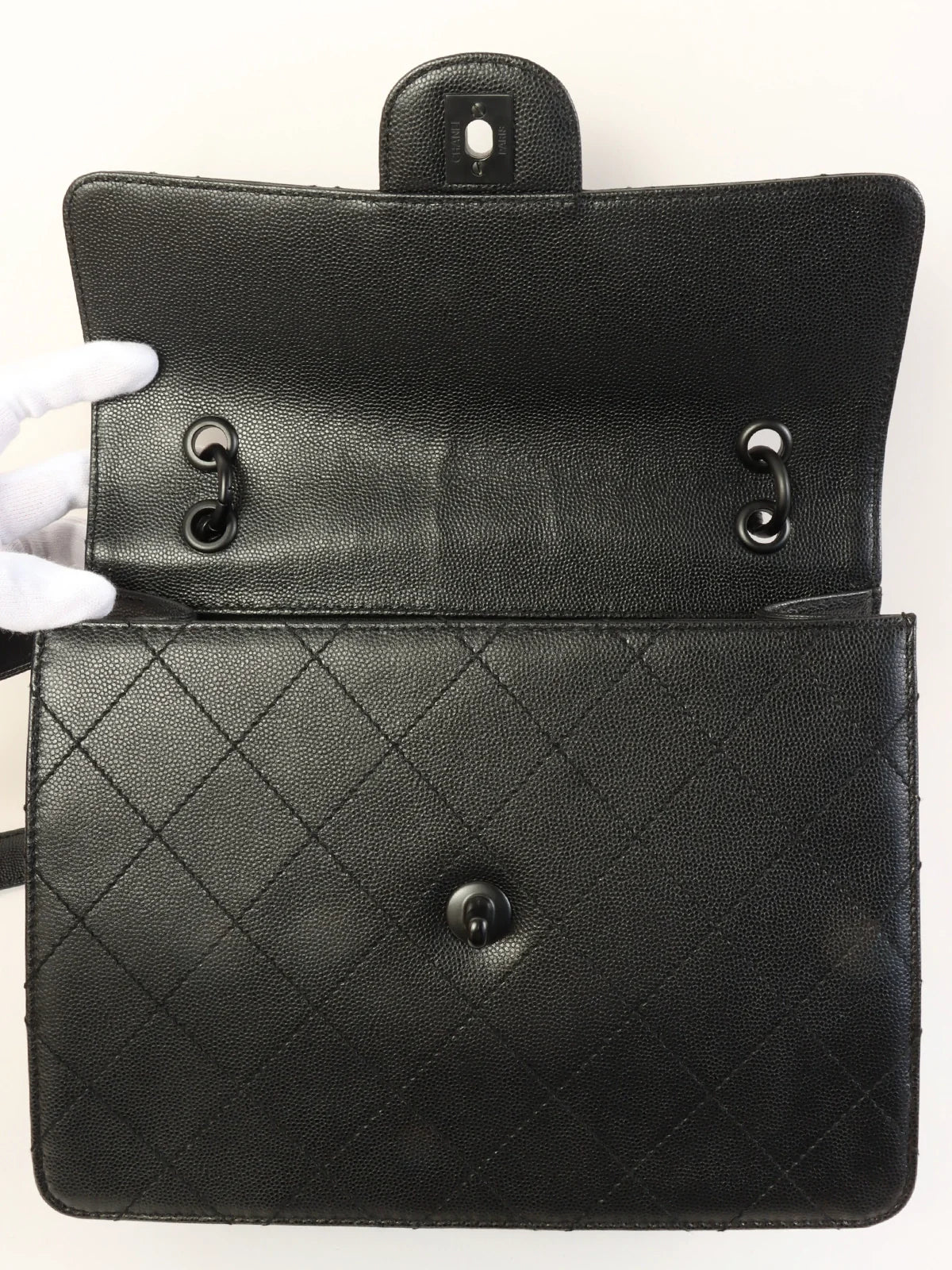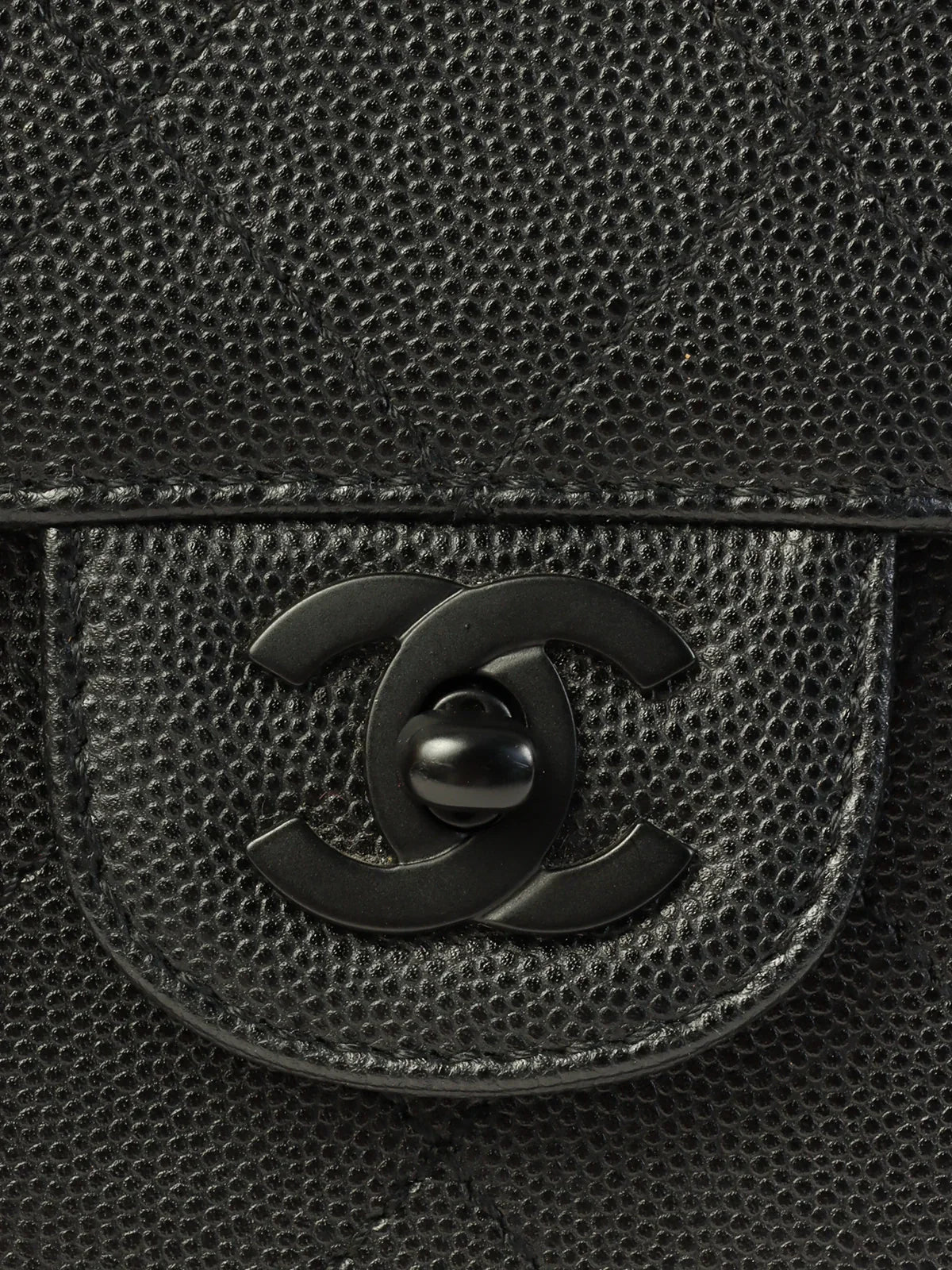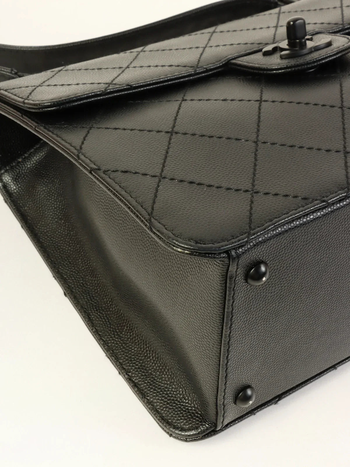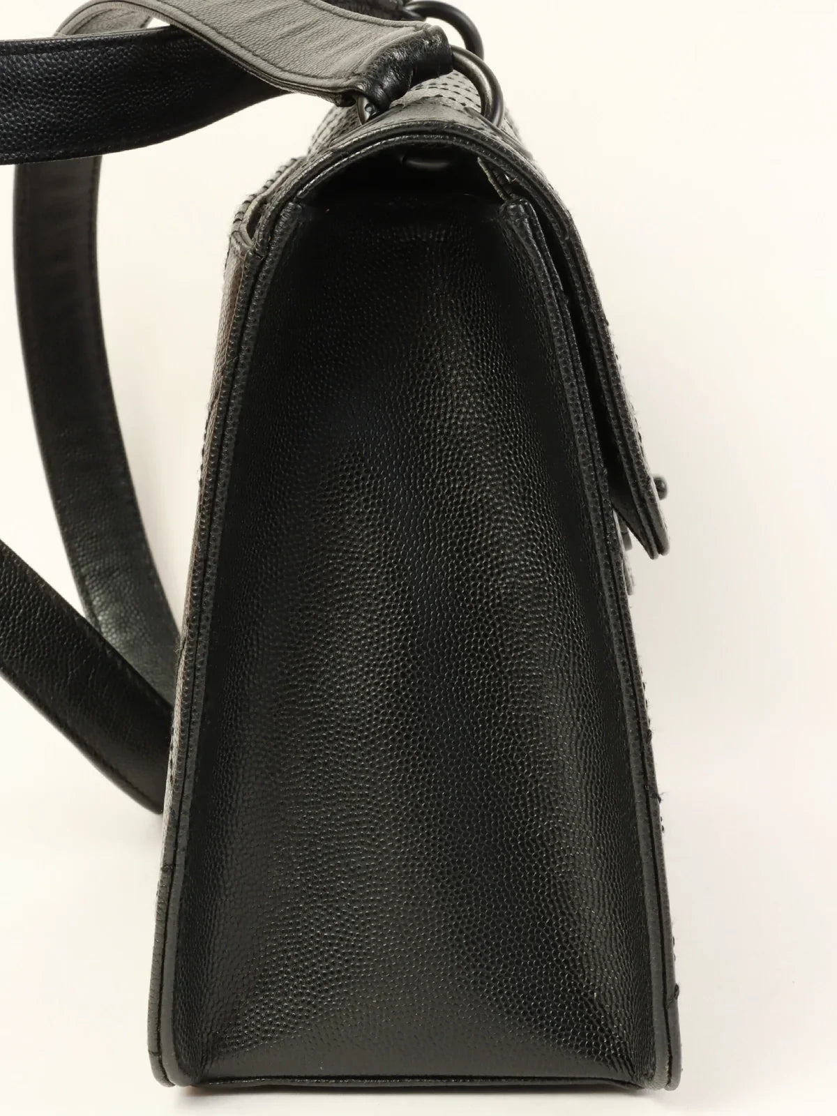 CHANEL Around 1998 Made Caviar Skin Turn-Lock Shoulder Bag Black