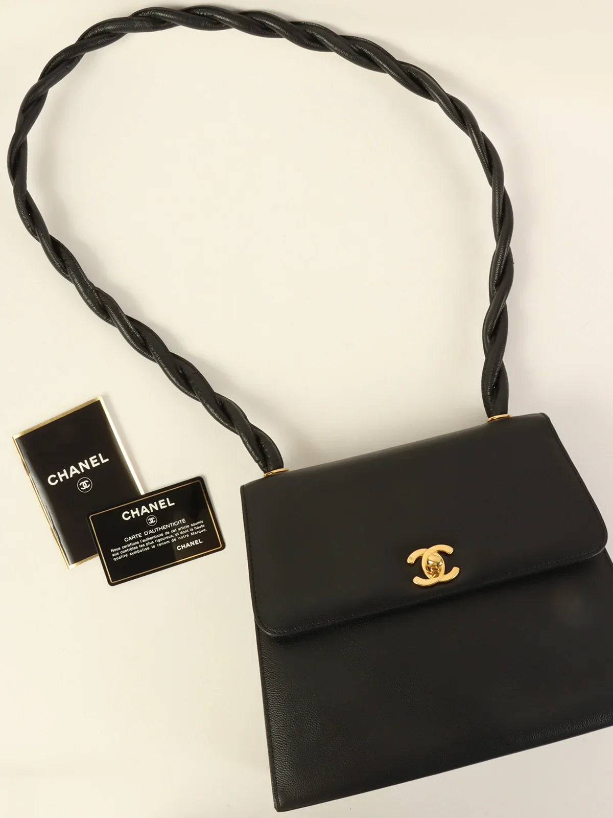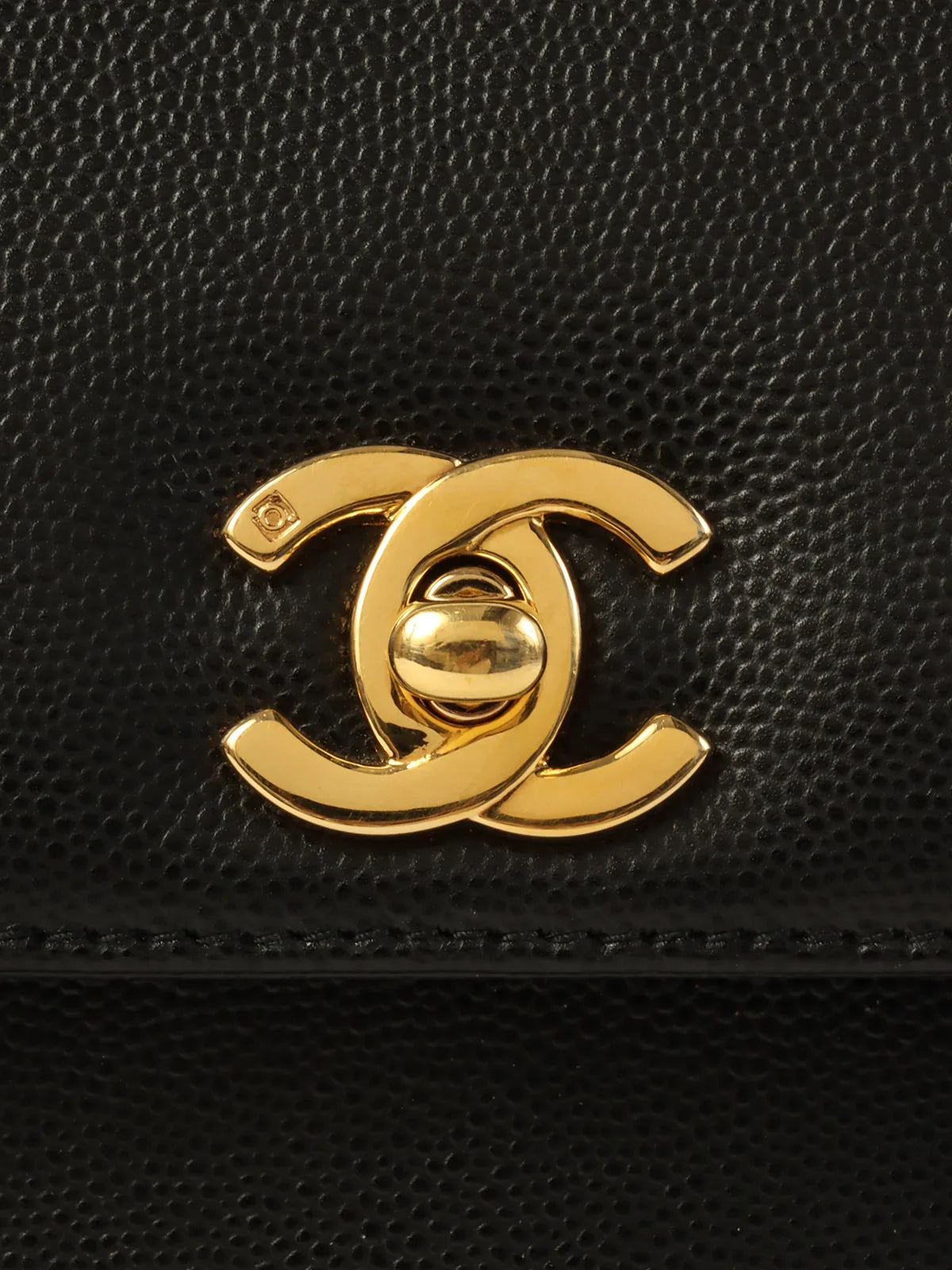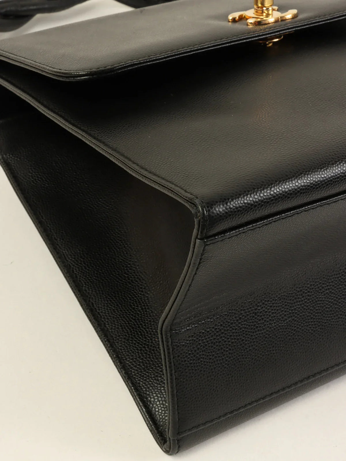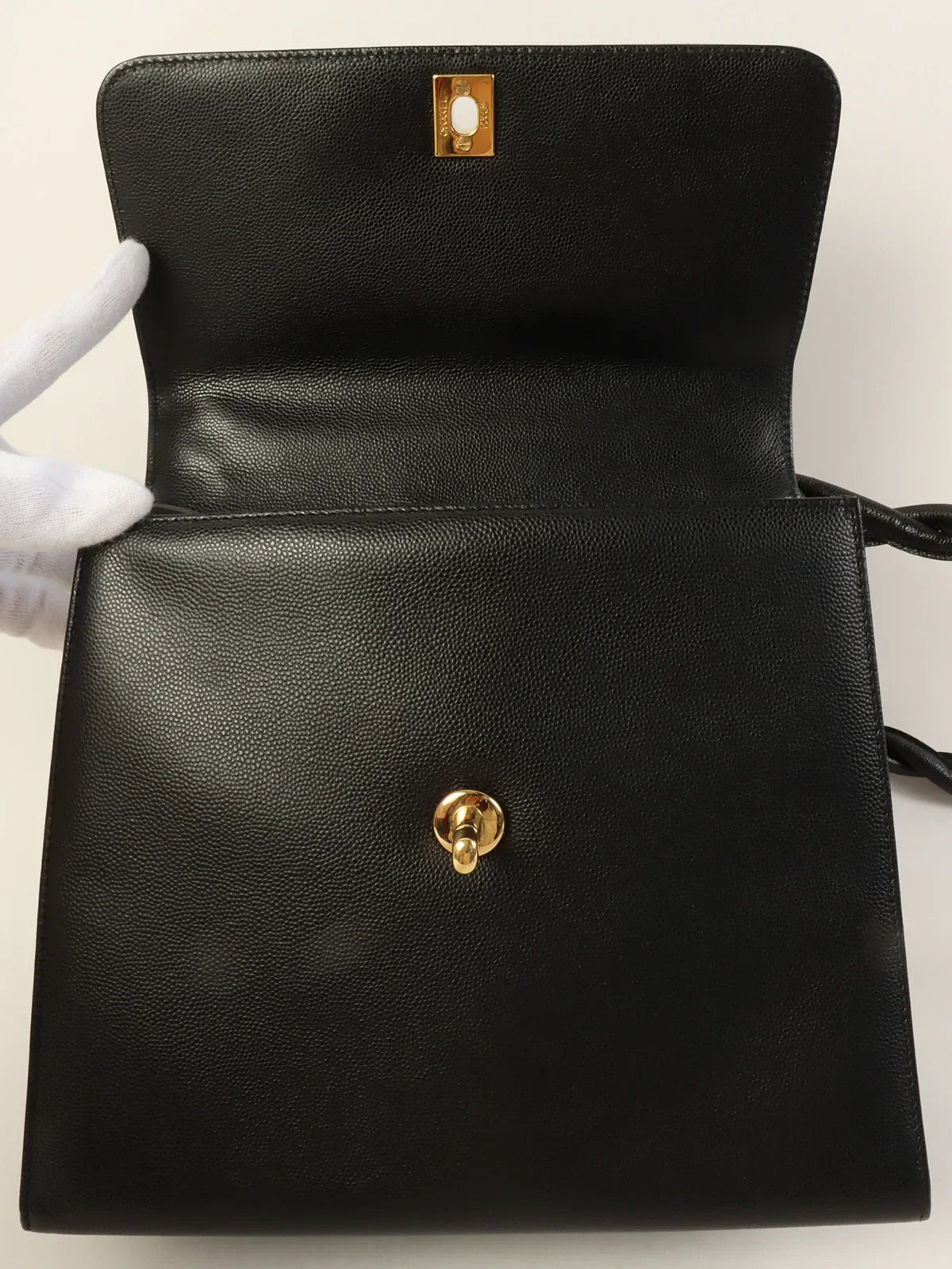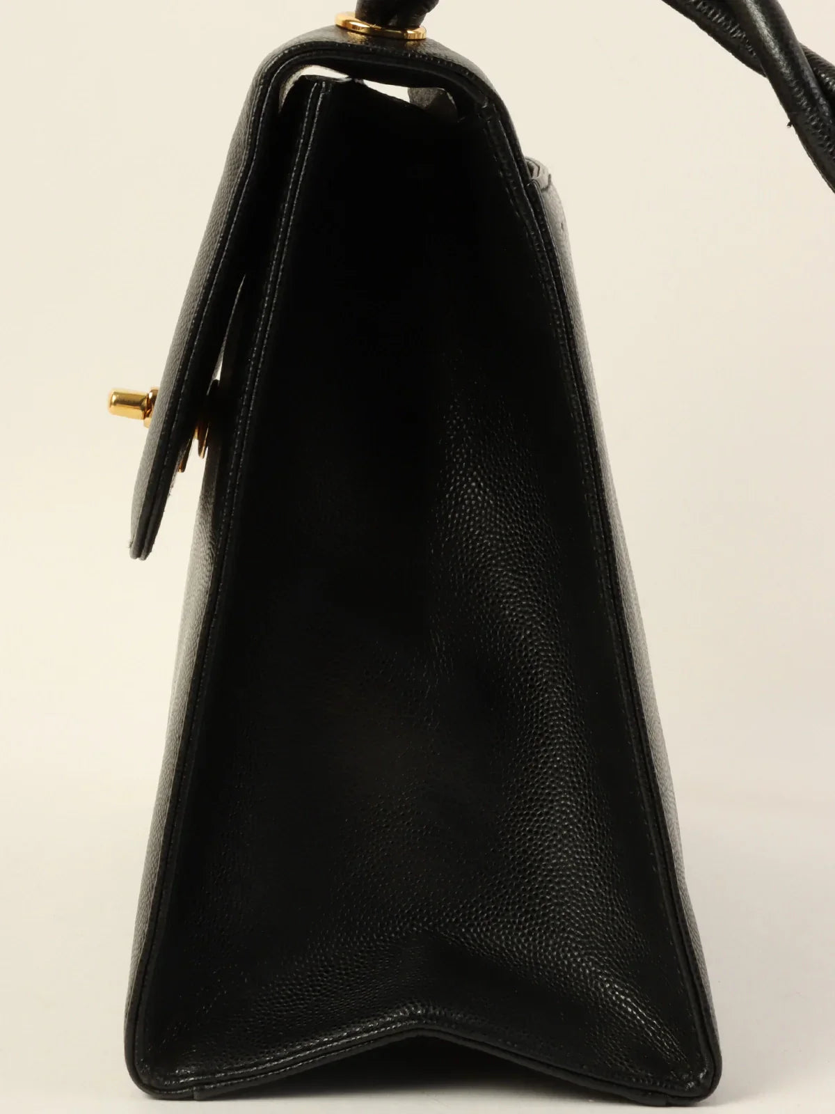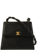 CHANEL Around 1998 Made Caviar Skin Turn-Lock Twist Shoulder Bag Black