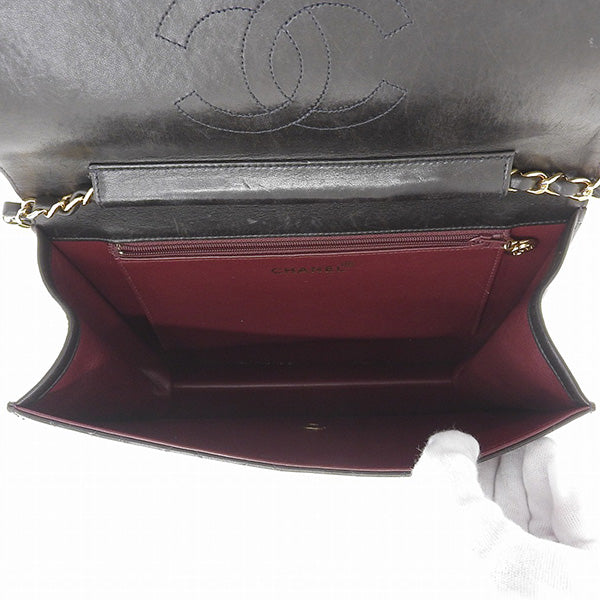 CHANEL Around 1998 Made Cc Mark Plate Chain Bag Black