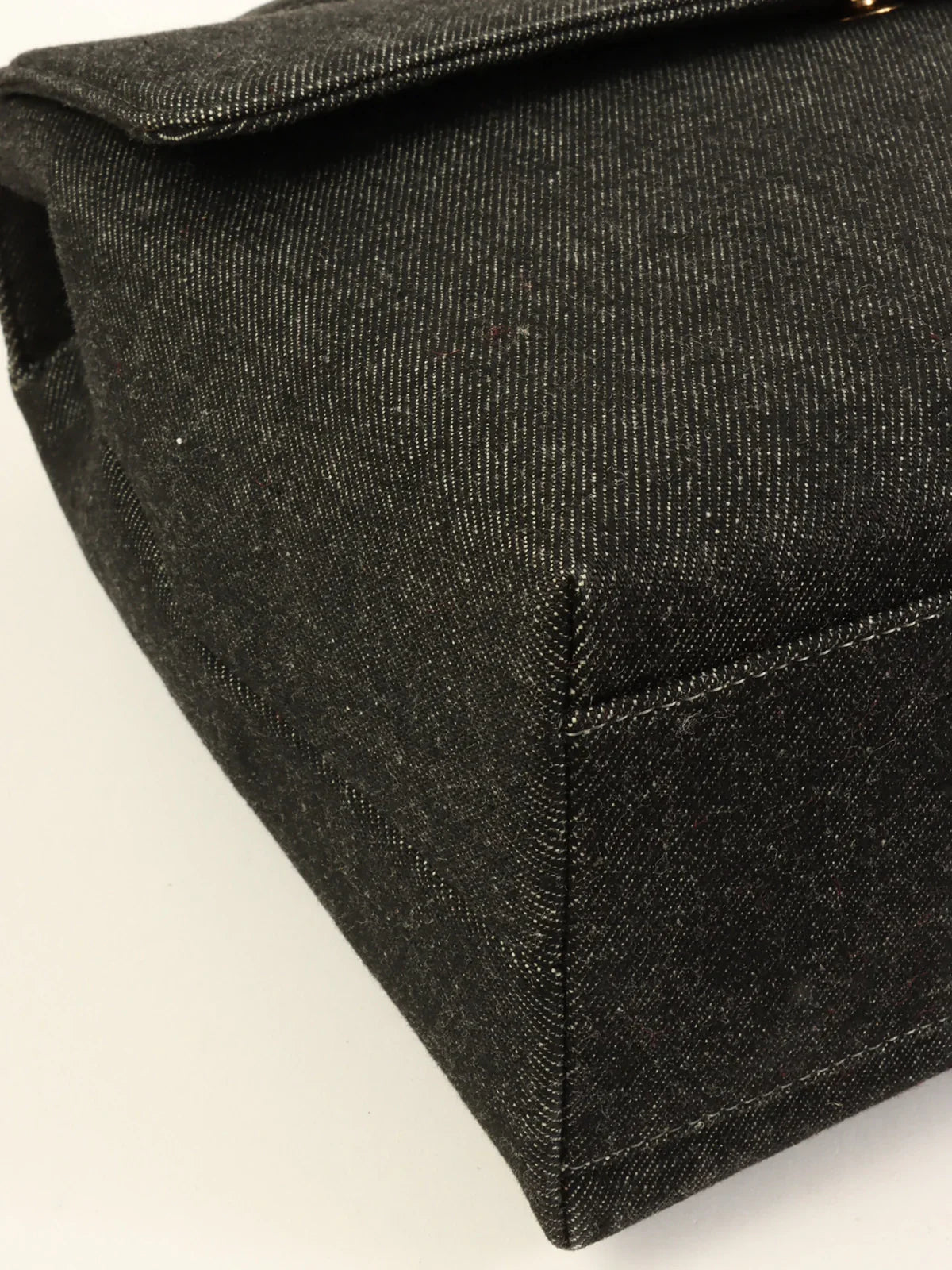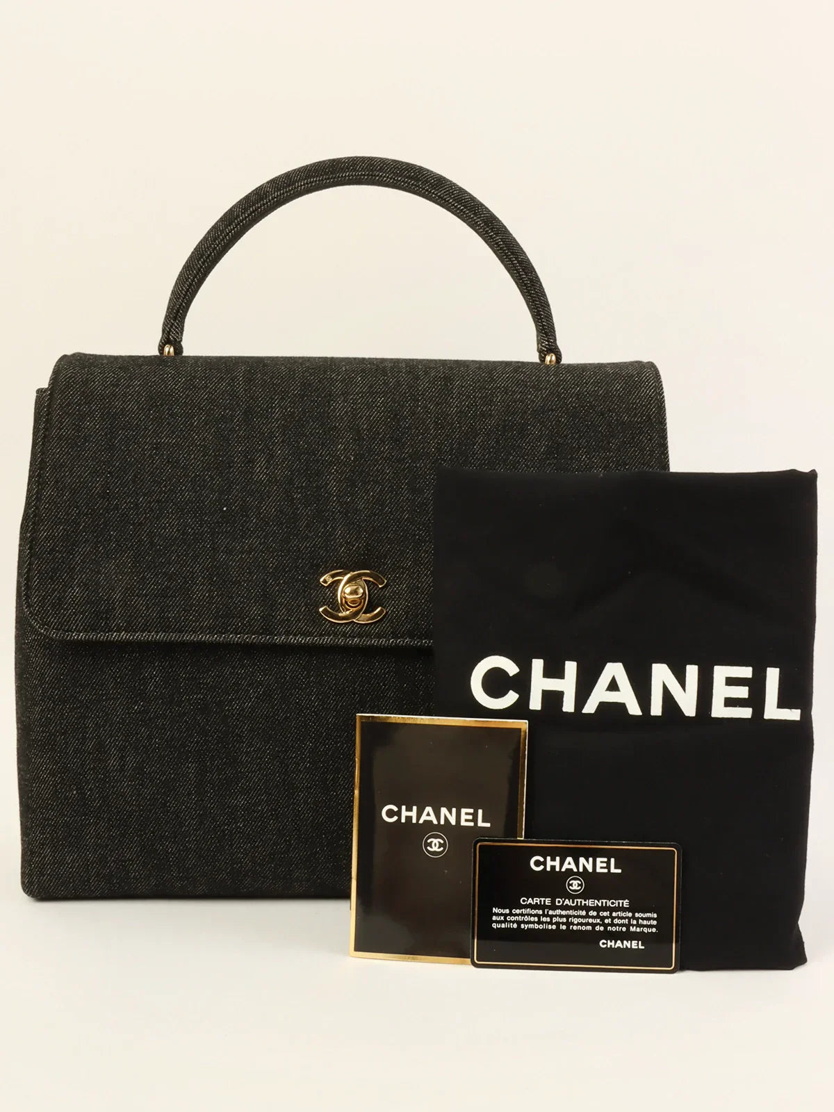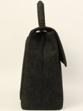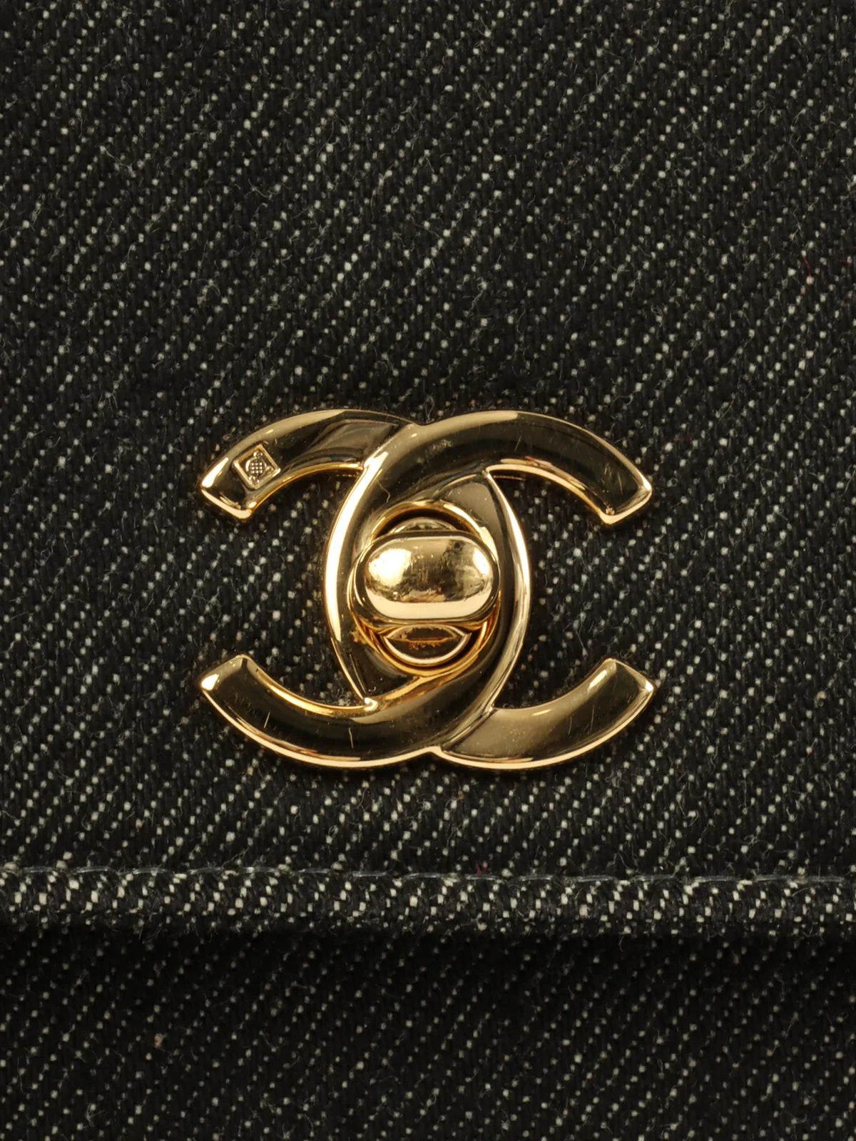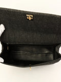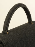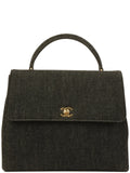 CHANEL Around 1998 Made Denim Turn-Lock Top Handle Bag Black