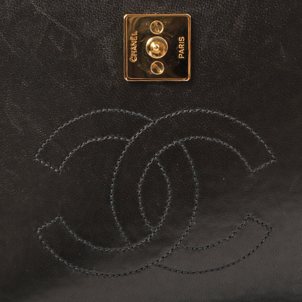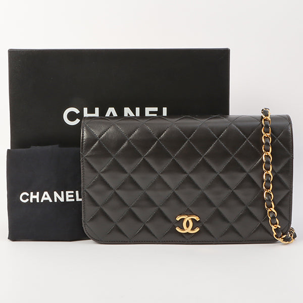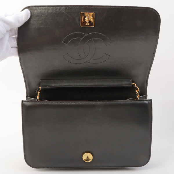 Chanel Around 1998 Made Full Flap Cc Mark Plate Chain Bag Black