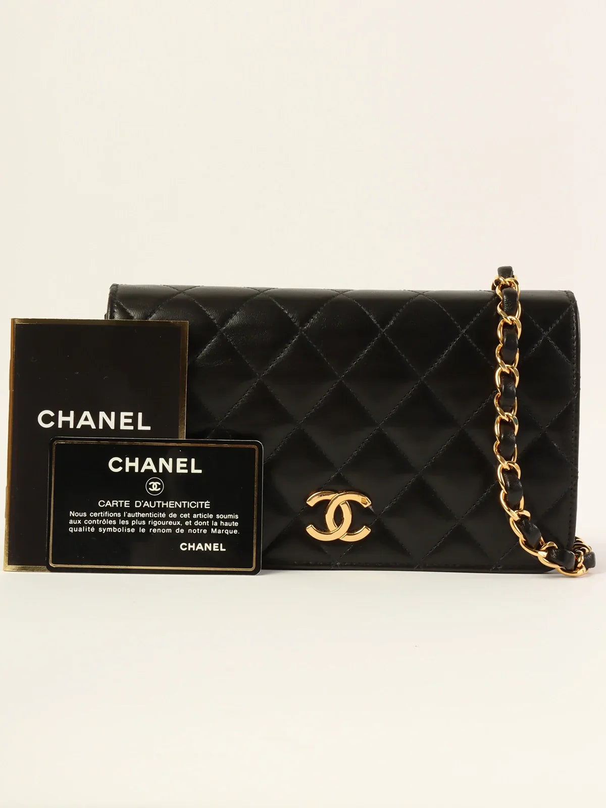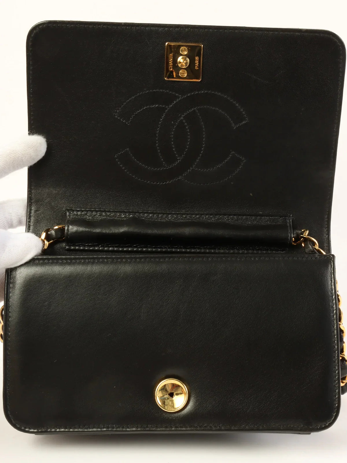 CHANEL Around 1998 Made Full Flap Cc Mark Plate Chain Bag Mini Black