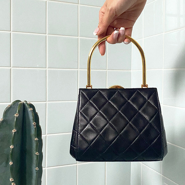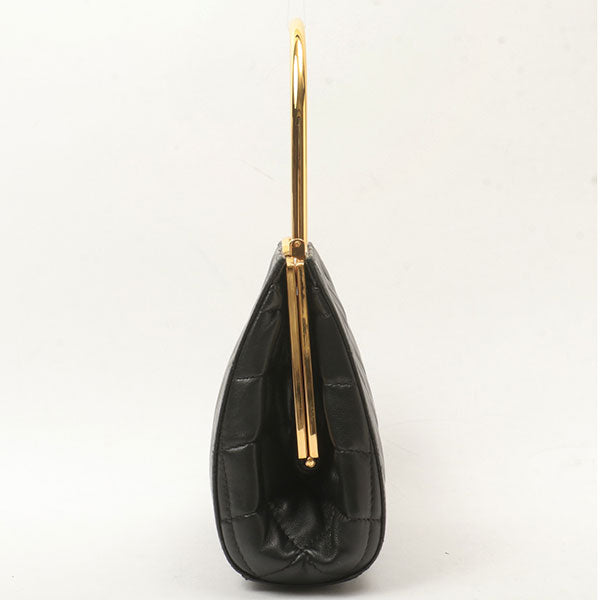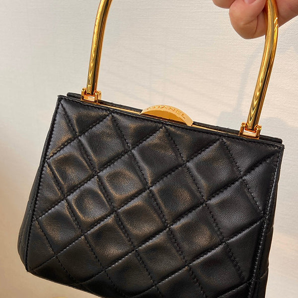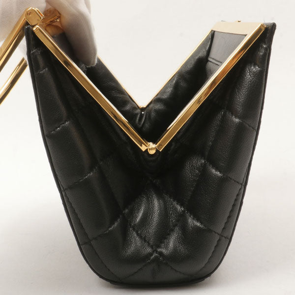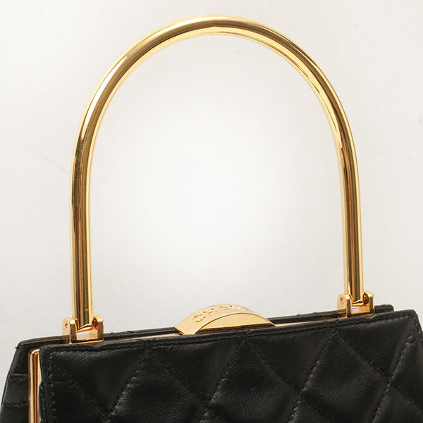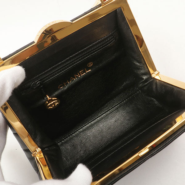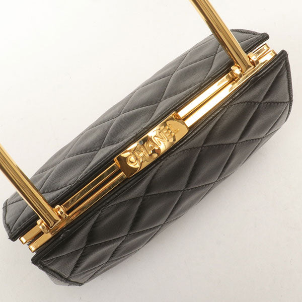 Chanel Around 1998 Made Logo Metal Clasp Handbag Black