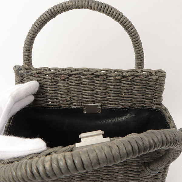 Chanel Around 1998 Made Paper Logo Plate Handbag Grey/Natural