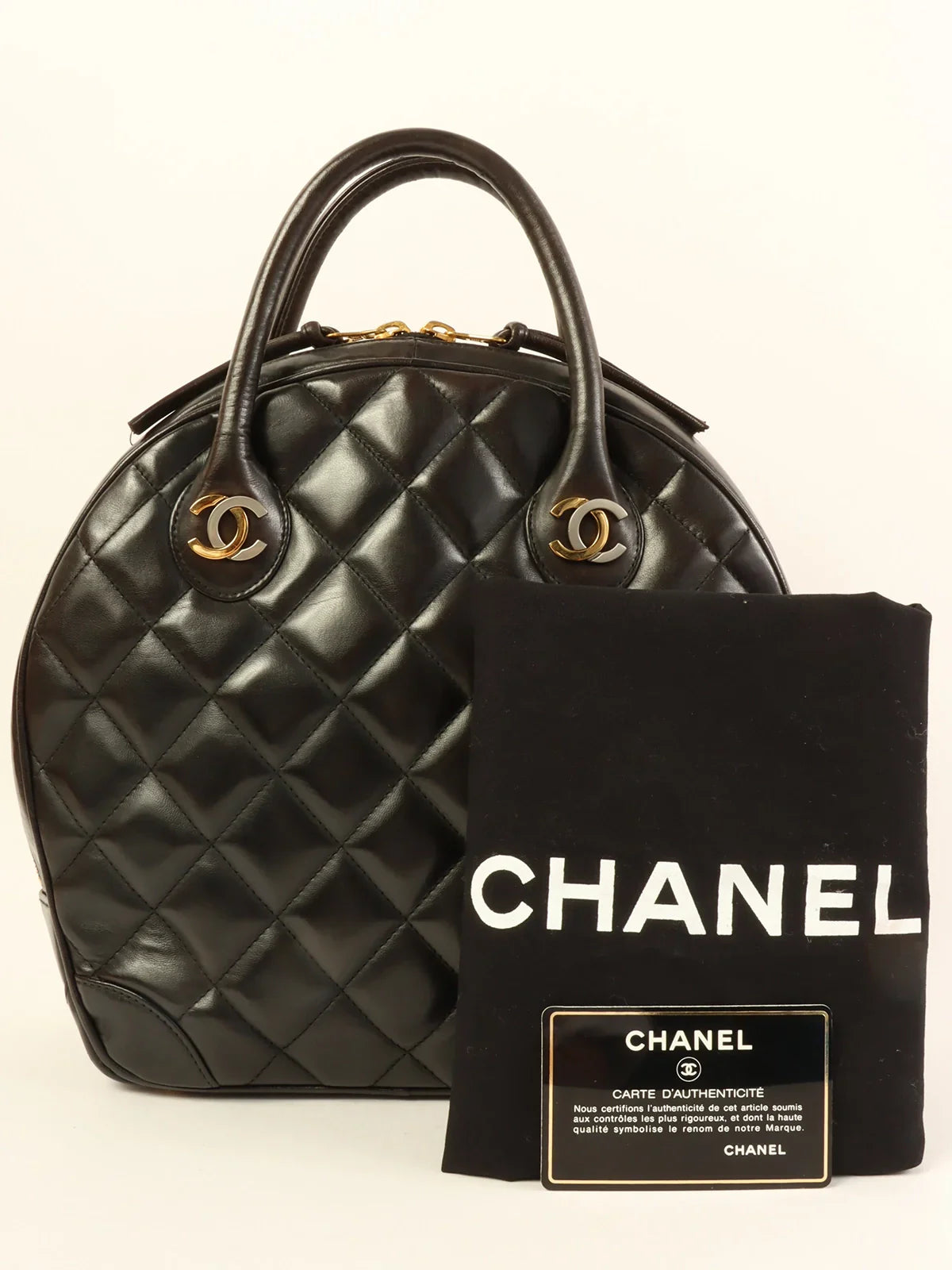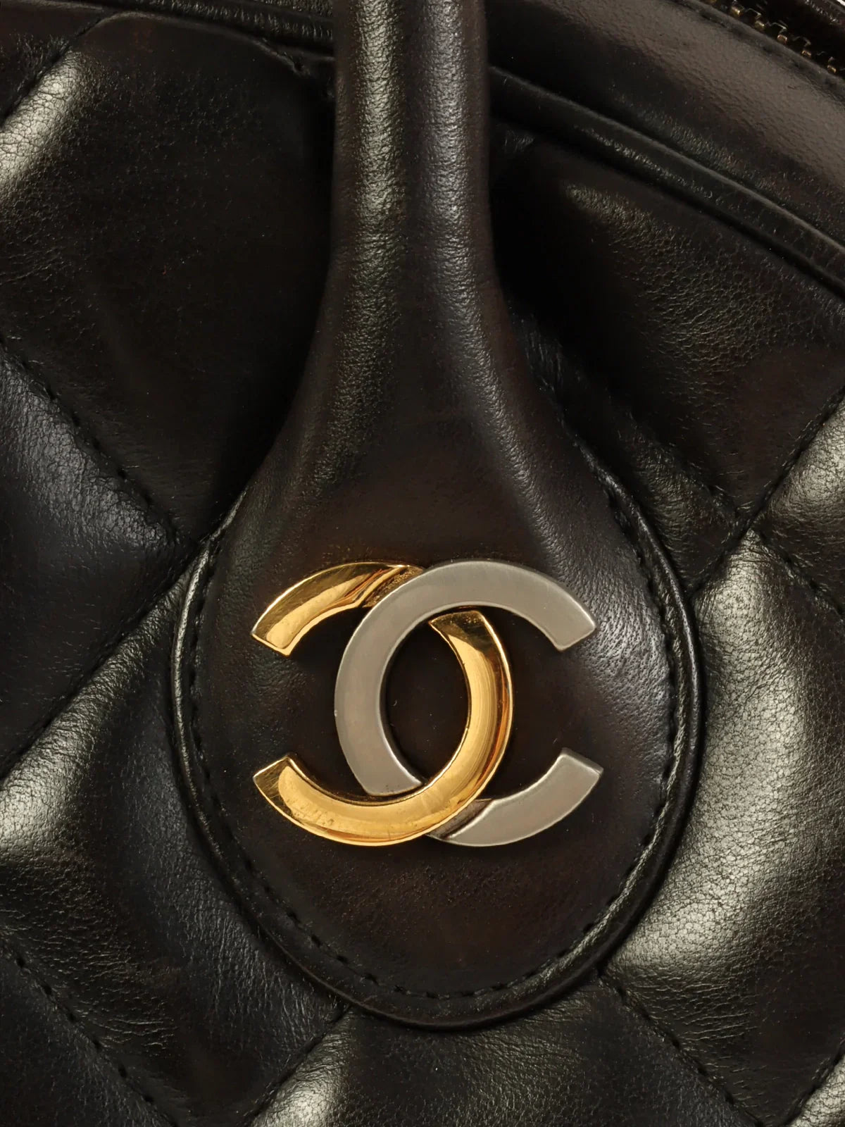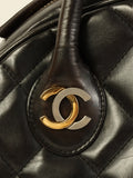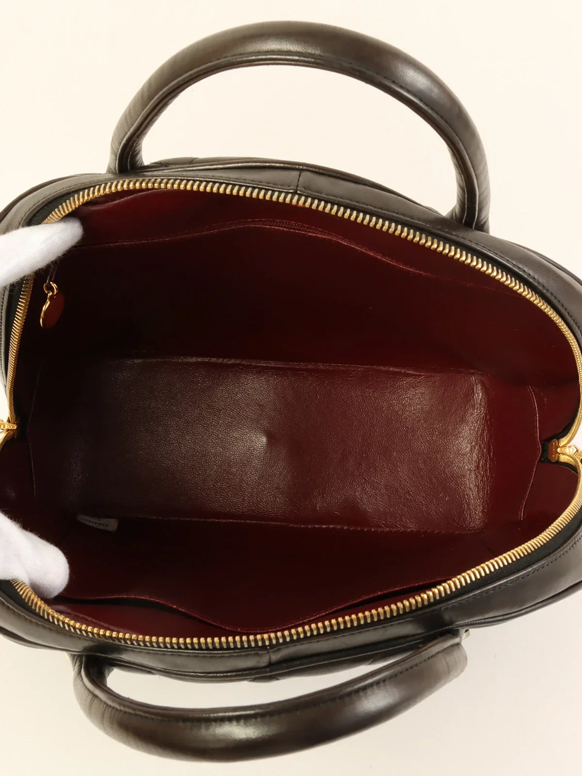 CHANEL Around 1998 Made Paris Limited Cc Mark Plate Top Handle Bag Black