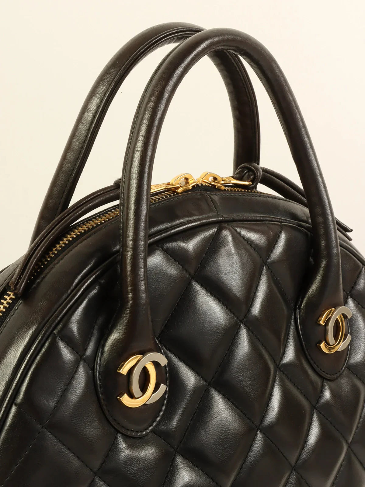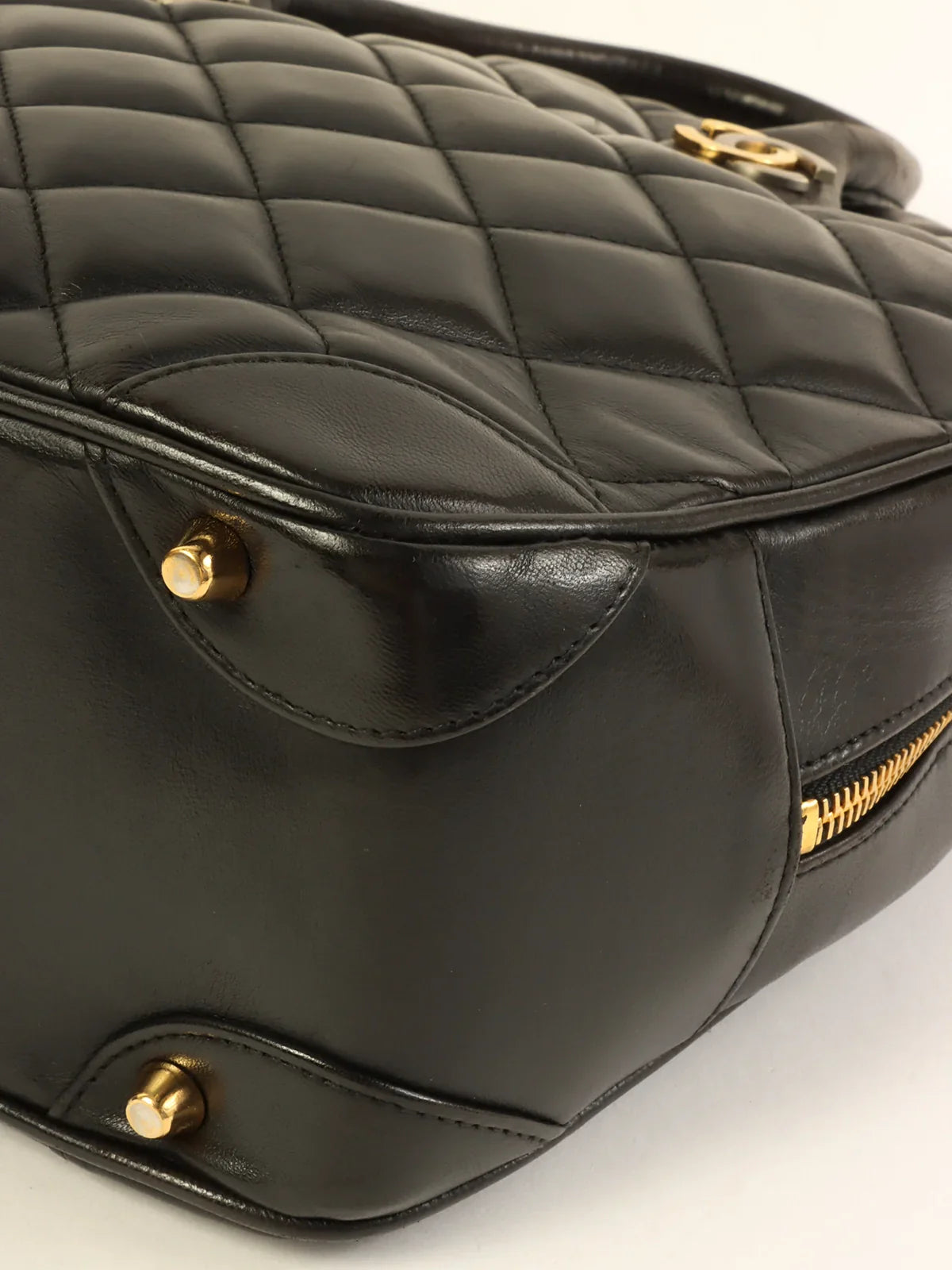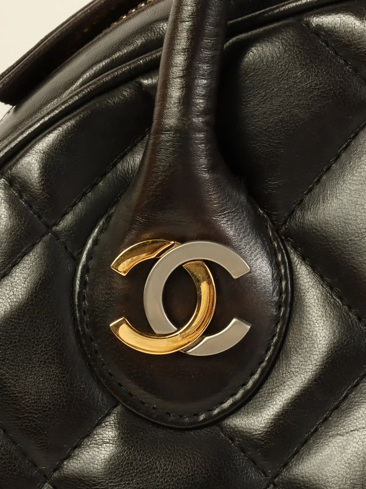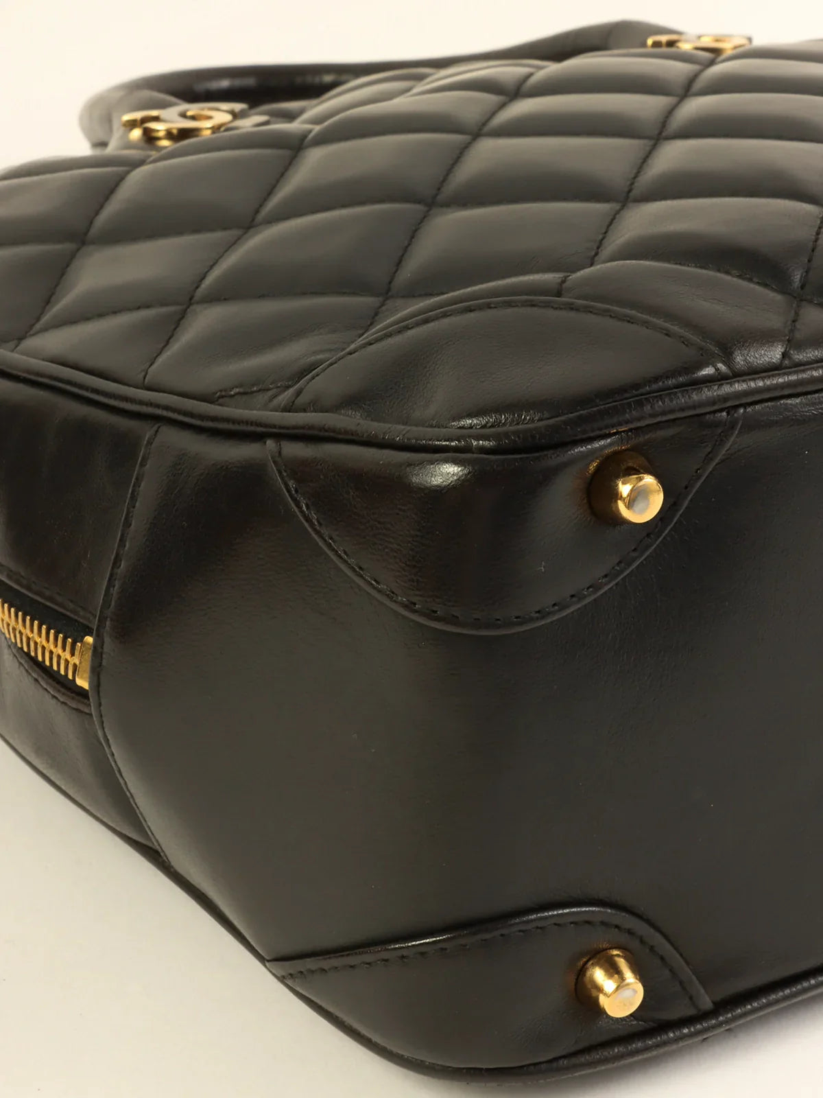 CHANEL Around 1998 Made Paris Limited Cc Mark Plate Top Handle Bag Black