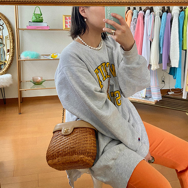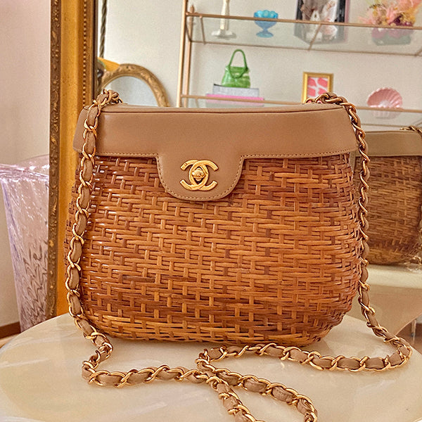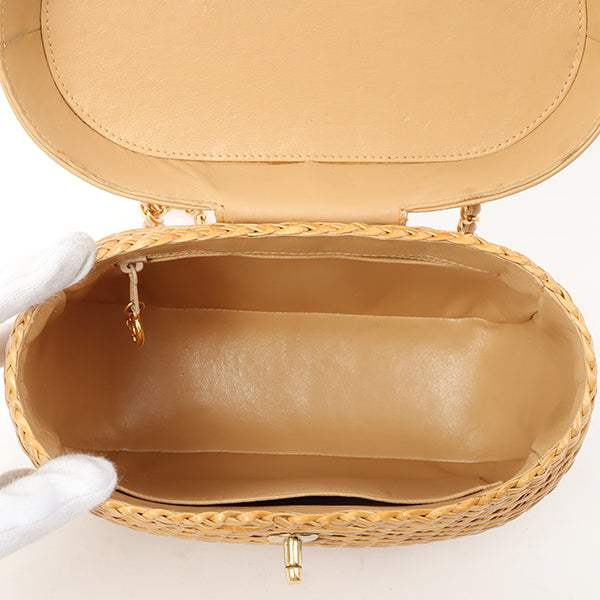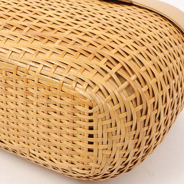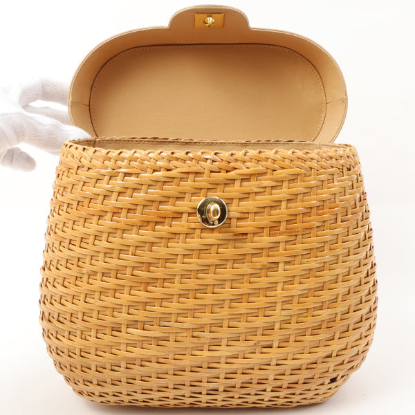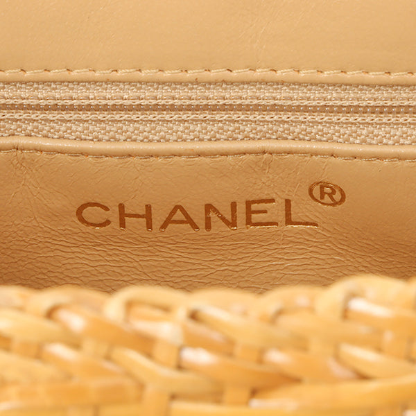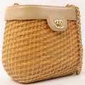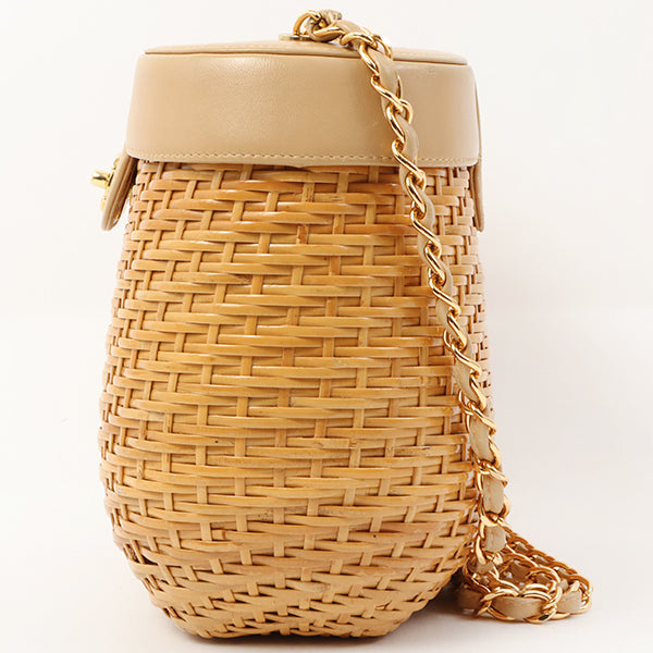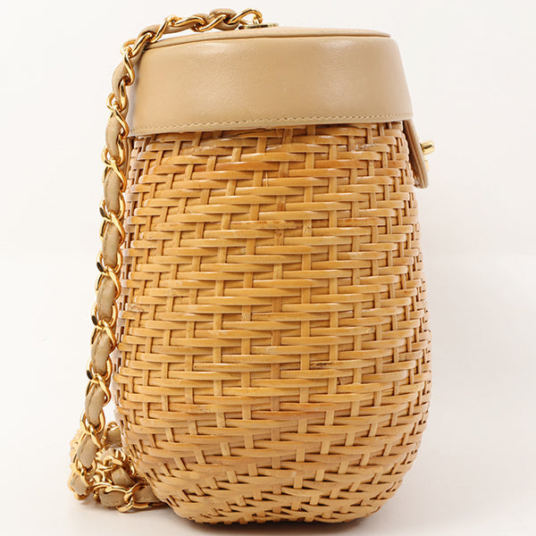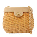 Chanel Around 1998 Made Rattan Turn-Lock Basket Chain Bag Beige
