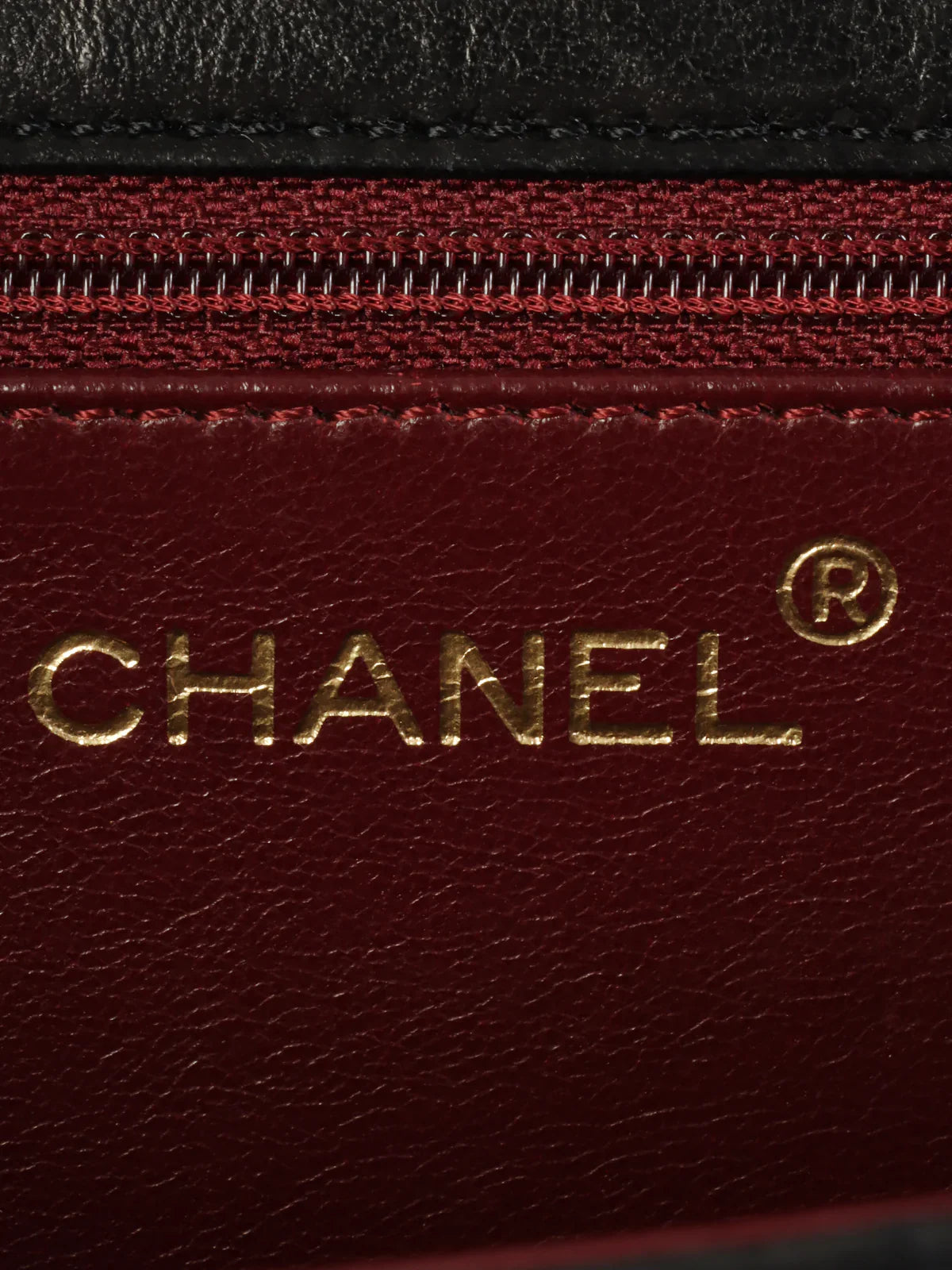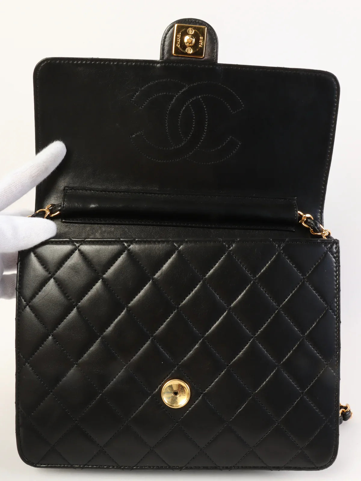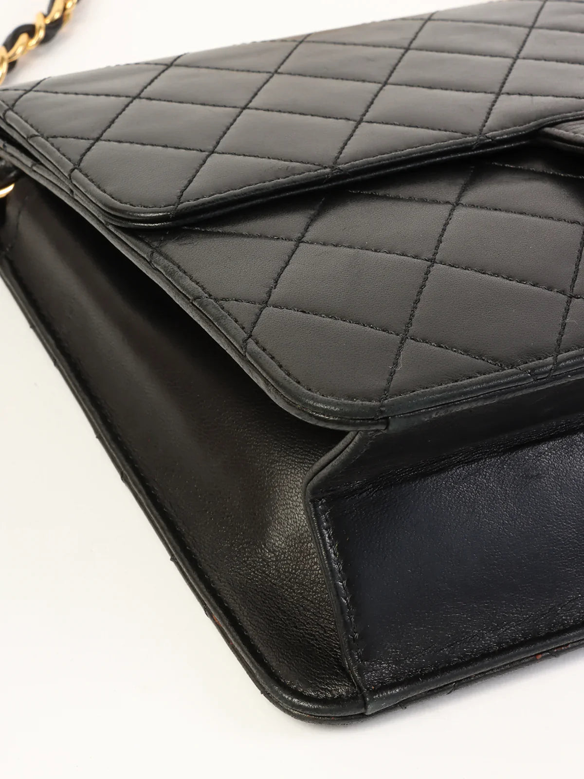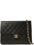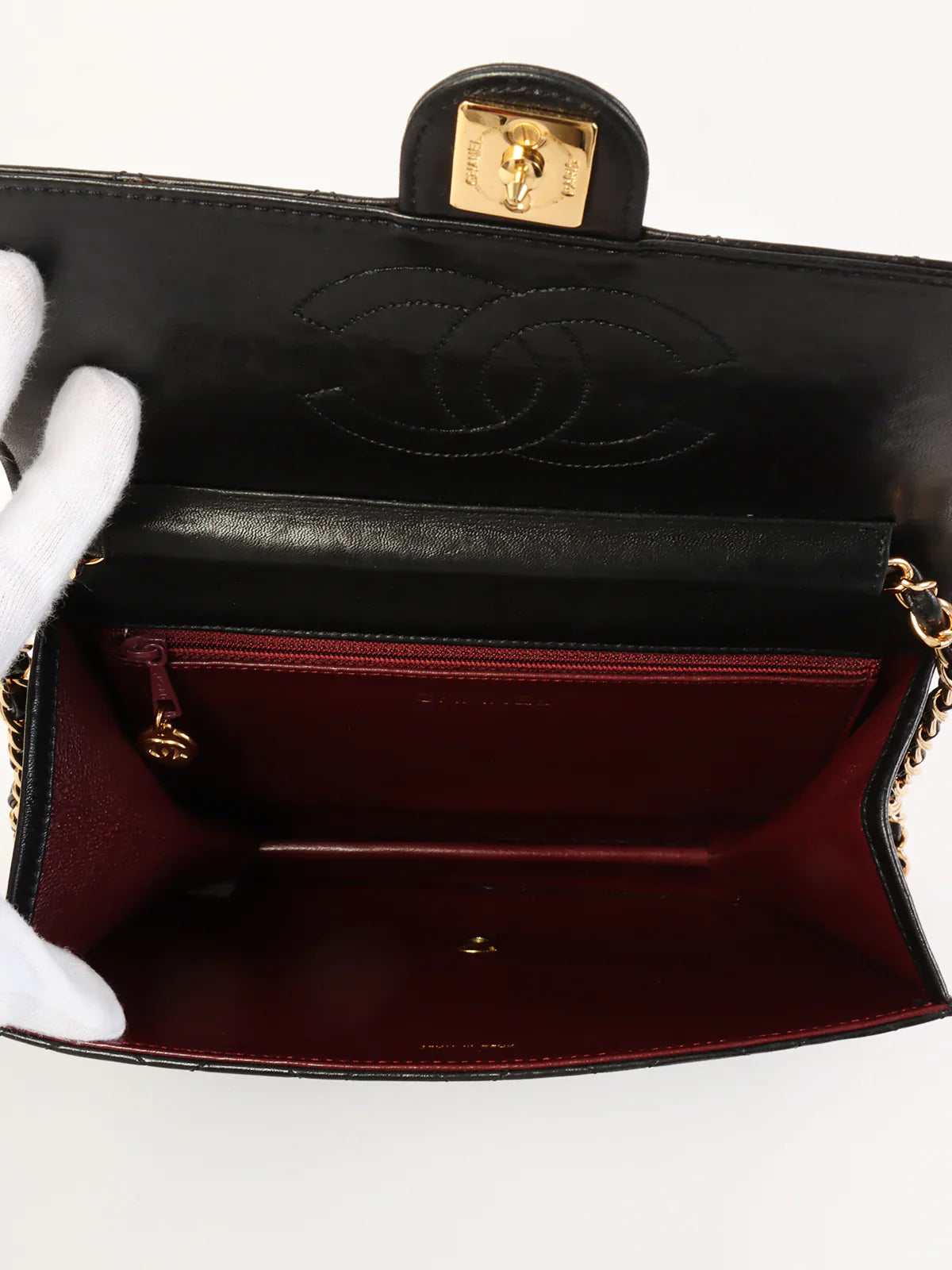 CHANEL Around 1998 Made Straight Flap Cc Mark Plate Chain Bag Black