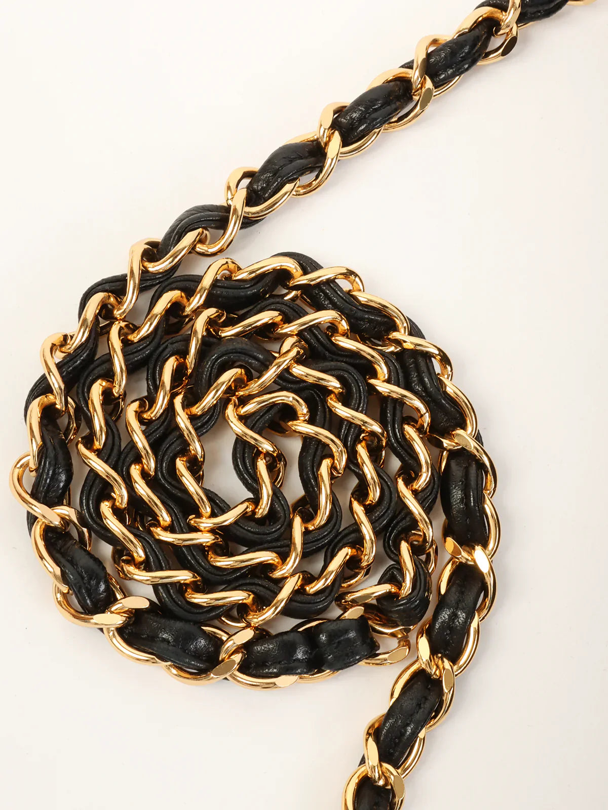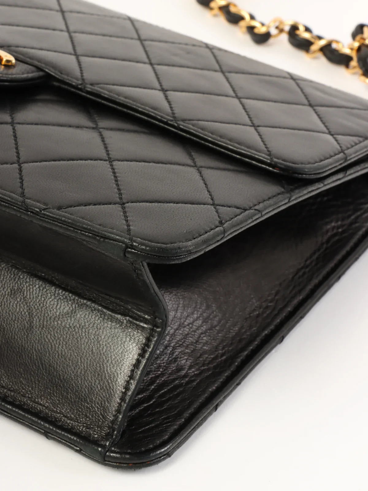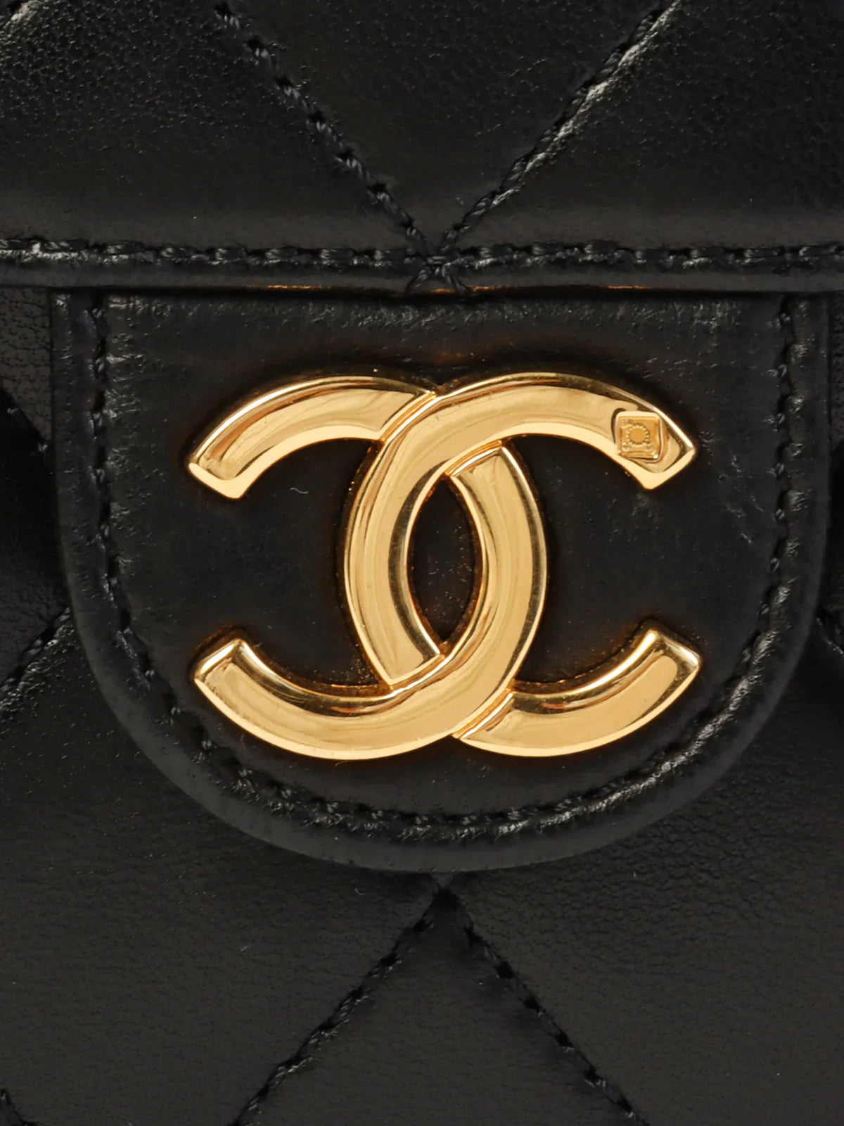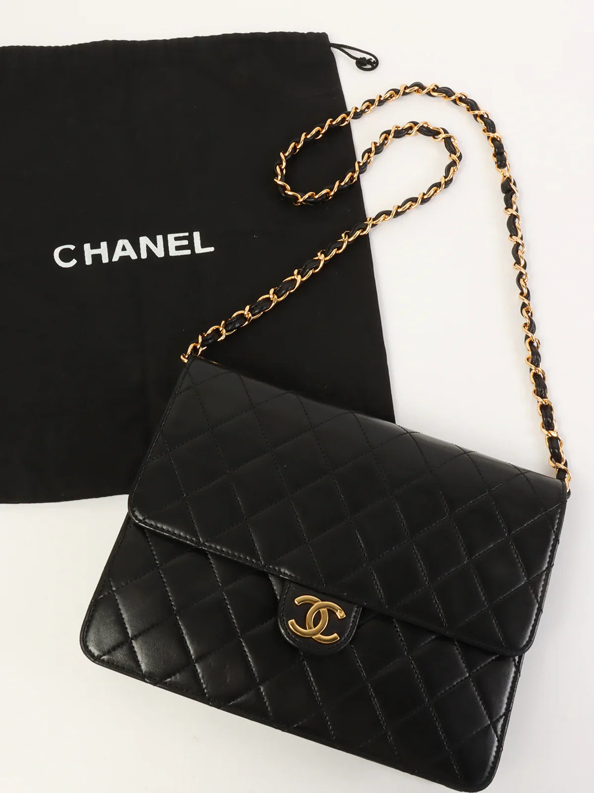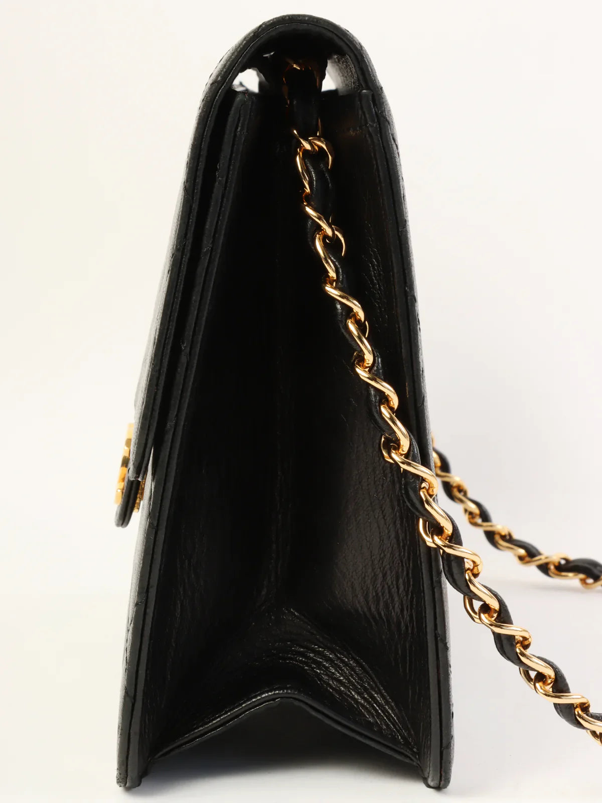 CHANEL Around 1998 Made Straight Flap Cc Mark Plate Chain Bag Black