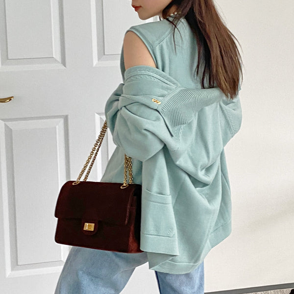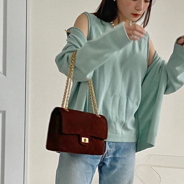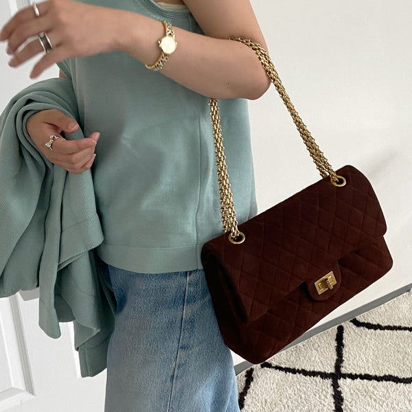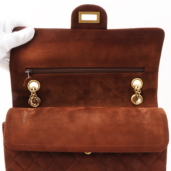Chanel Around 1998 Made Suede 2.55 Classic Flap Chain Bag 25Cm Brown