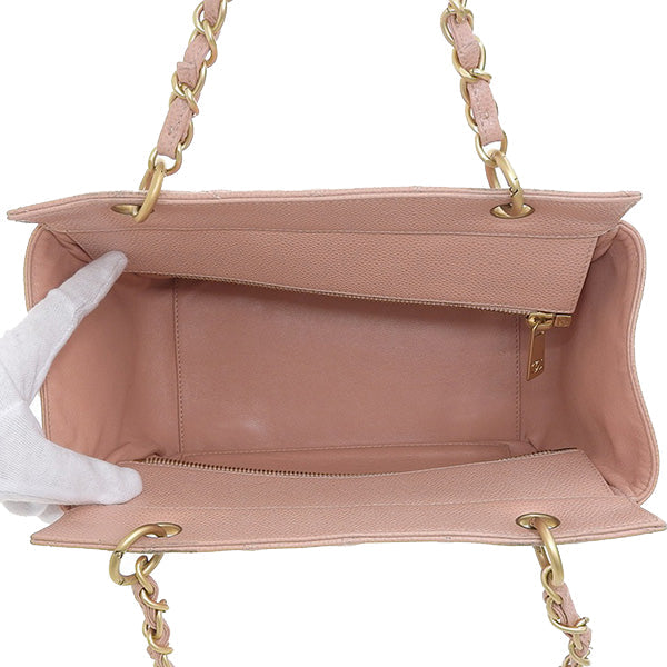 CHANEL Around 2000 Made Caviar Skin Cc Mark Stitch Chain Top Handle Bag Pink
