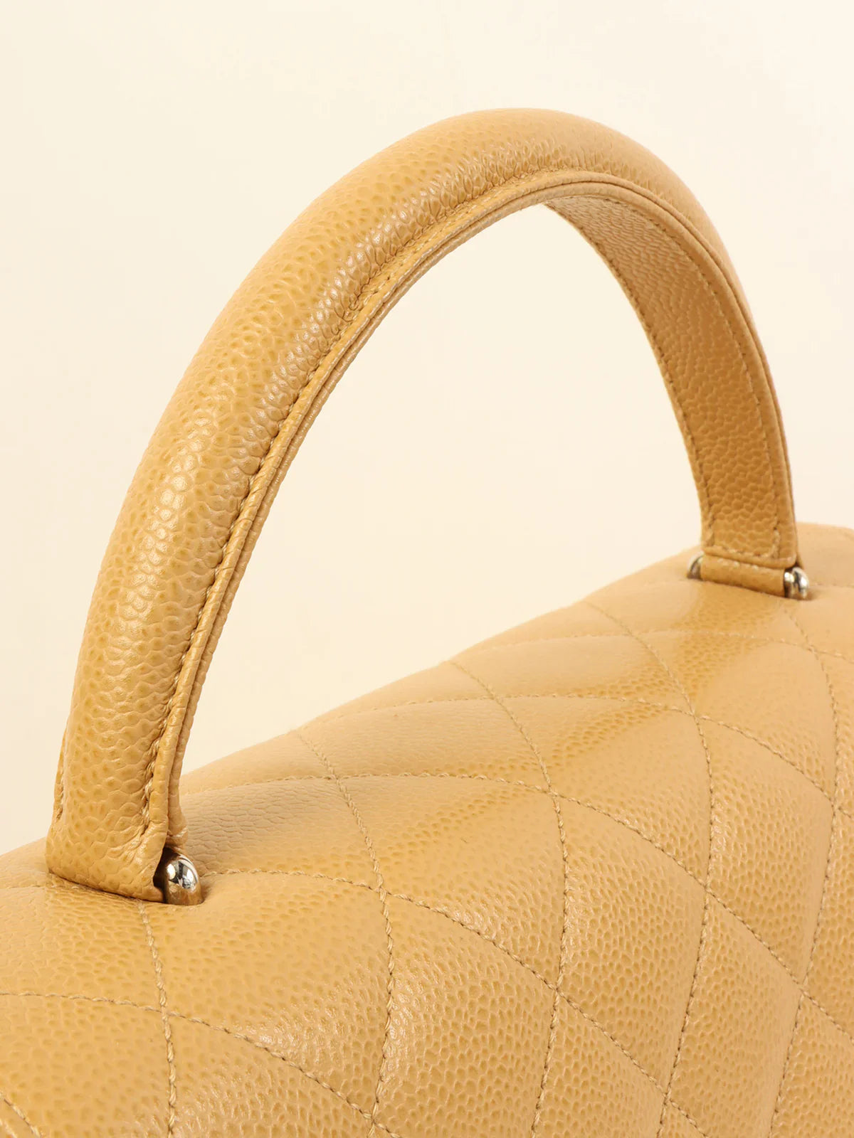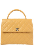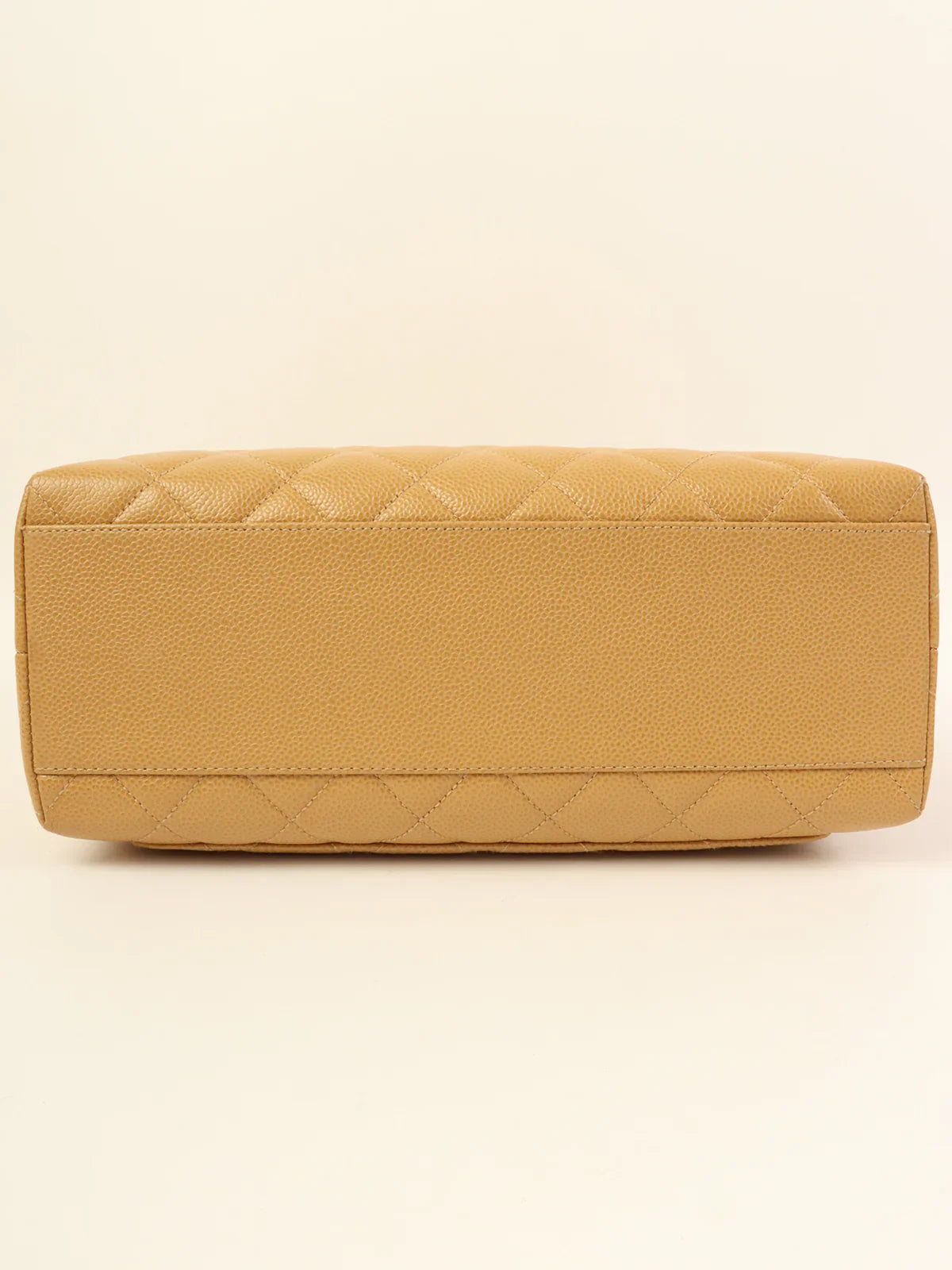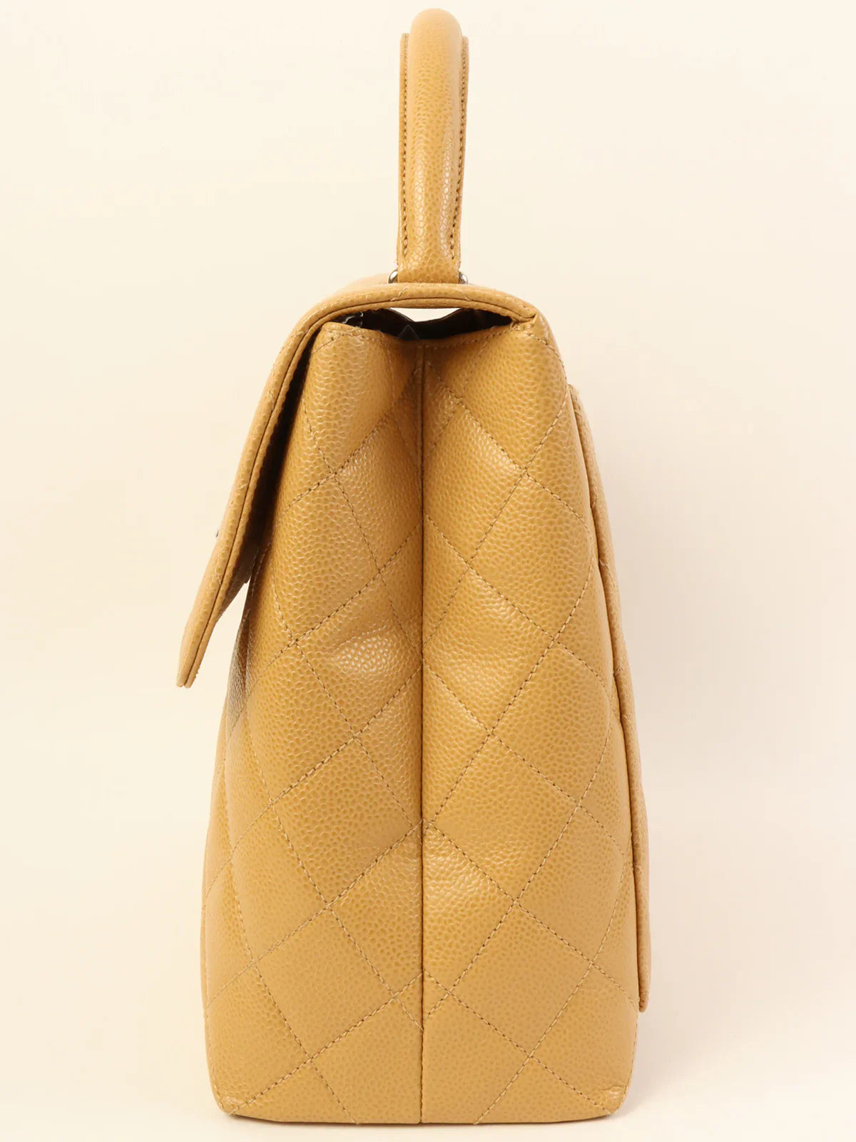 CHANEL Around 2000 Made Caviar Skin Turn-Lock Top Handle Bag Beige