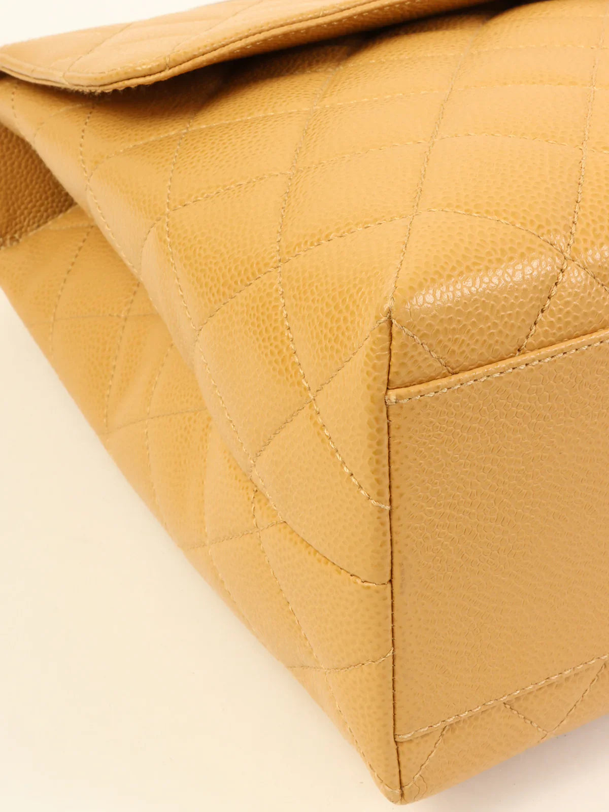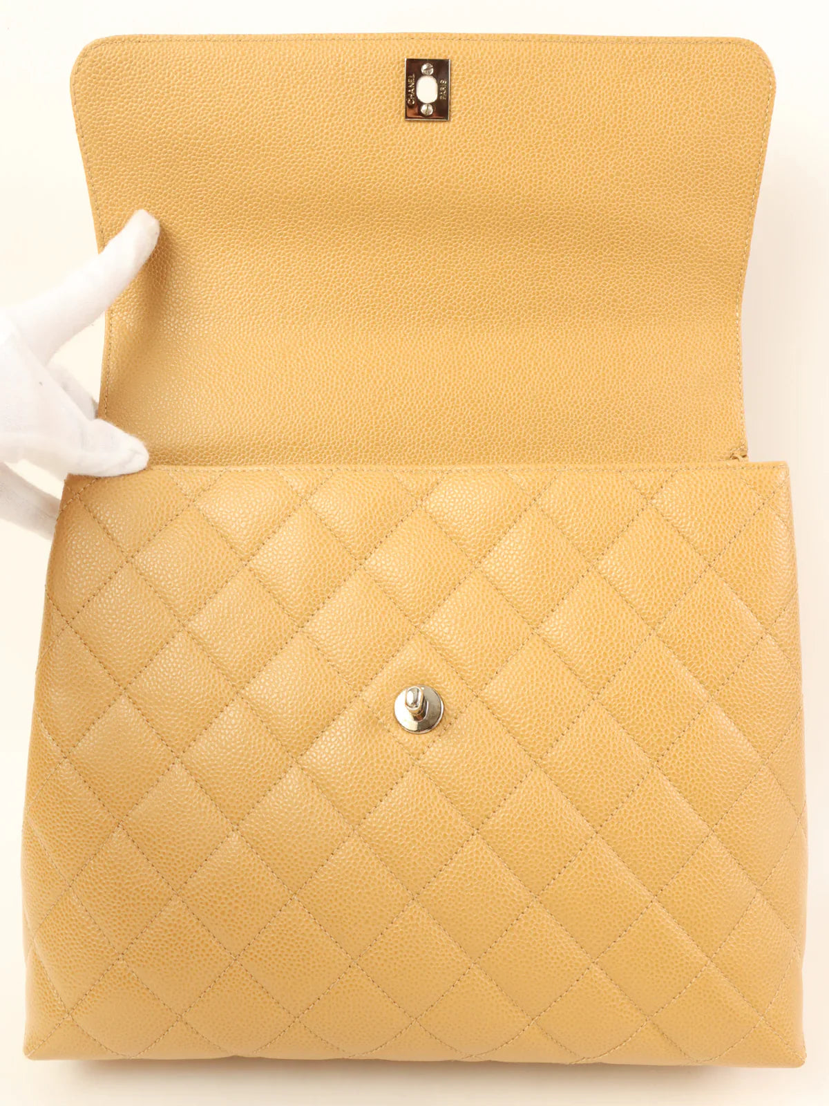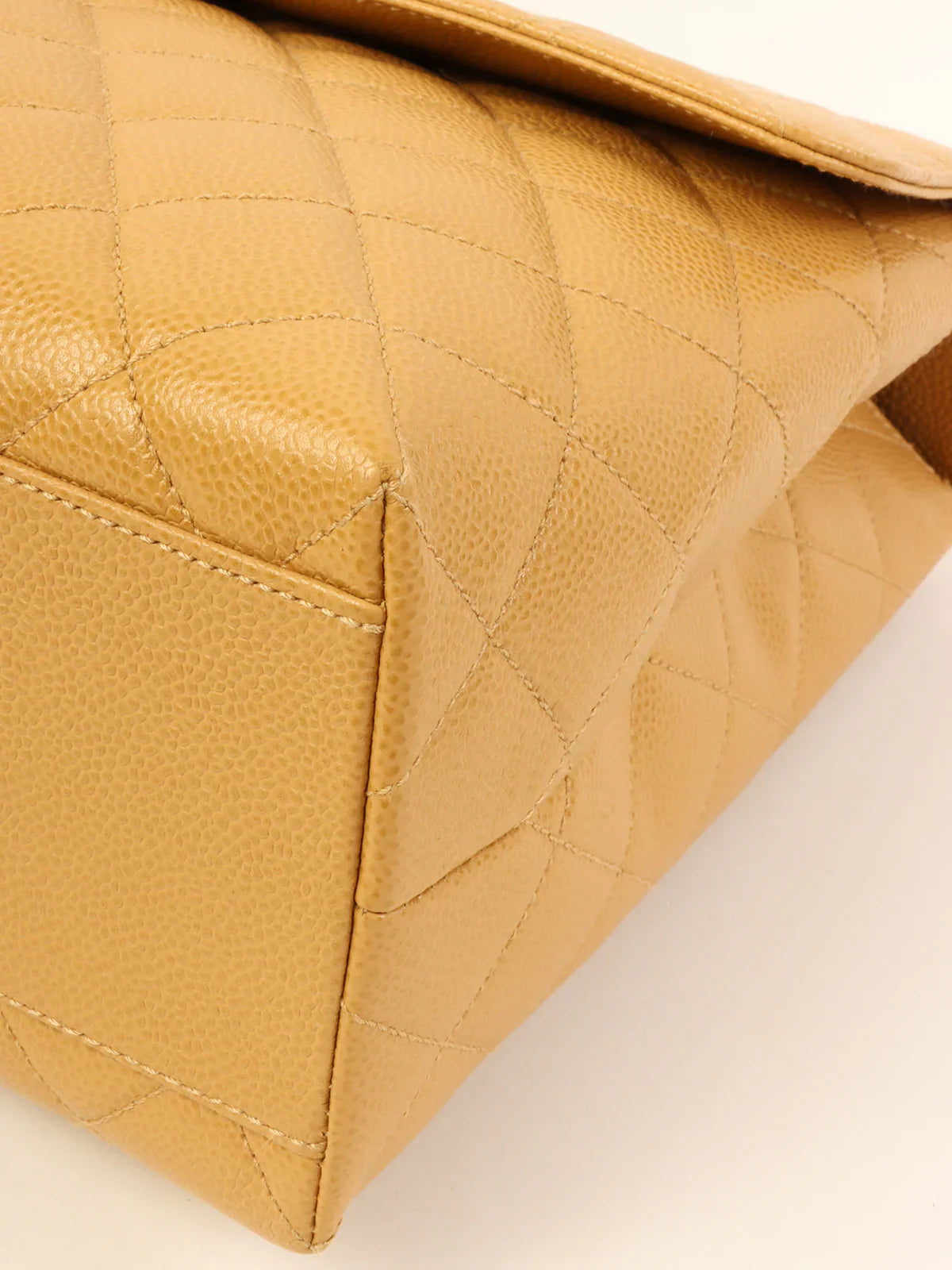 CHANEL Around 2000 Made Caviar Skin Turn-Lock Top Handle Bag Beige