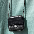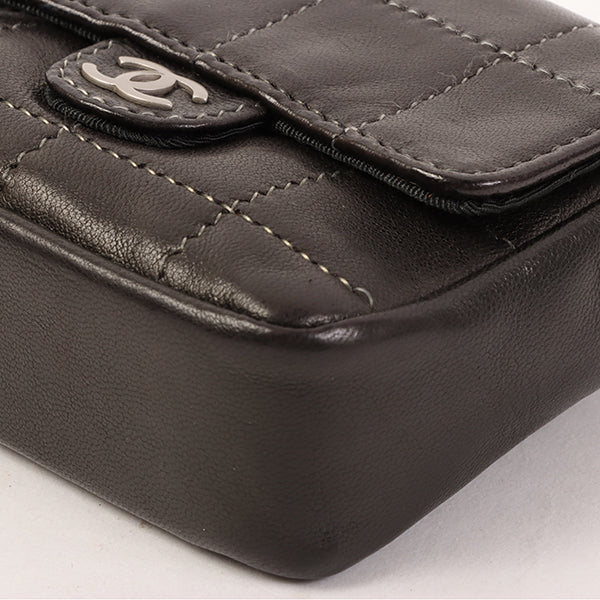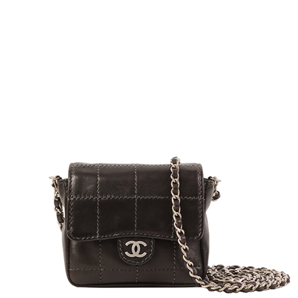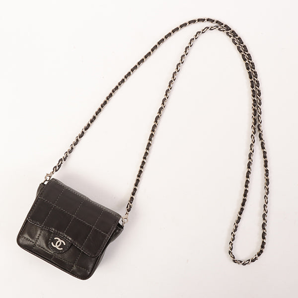 Chanel Around 2000 Made Chocolate Bar Cc Mark Plate Micro Chain Bag Black