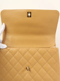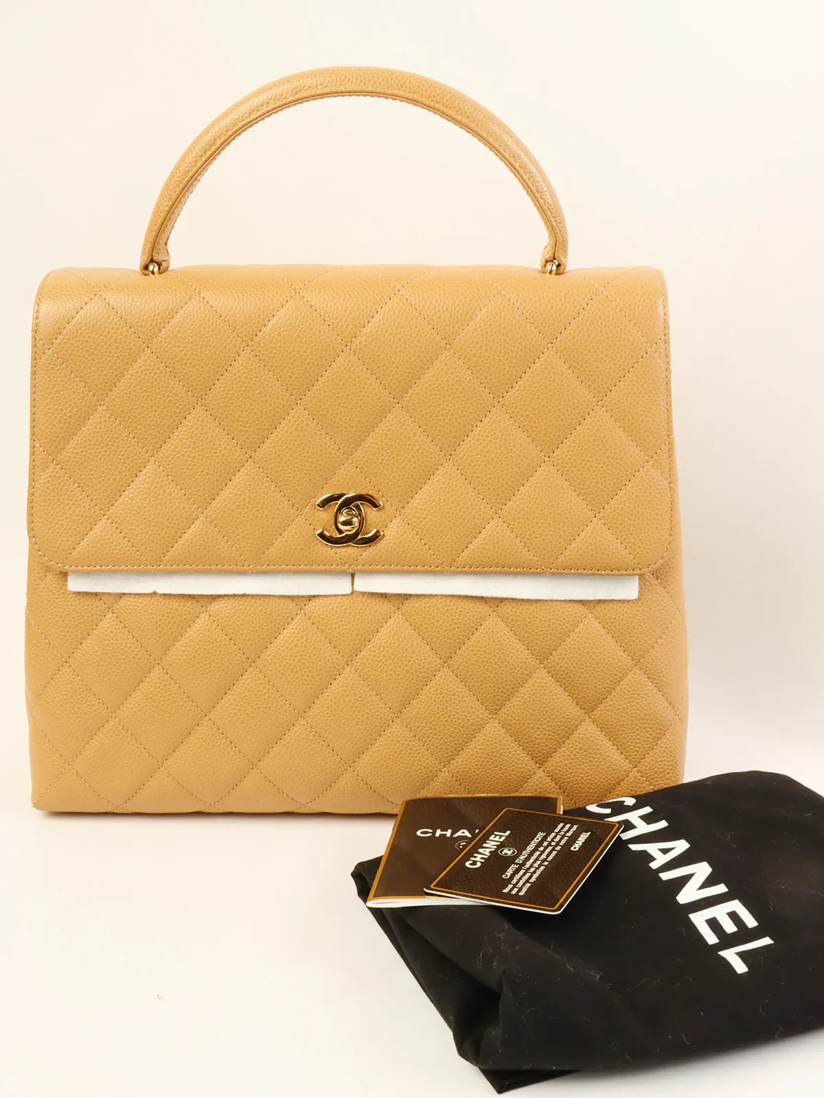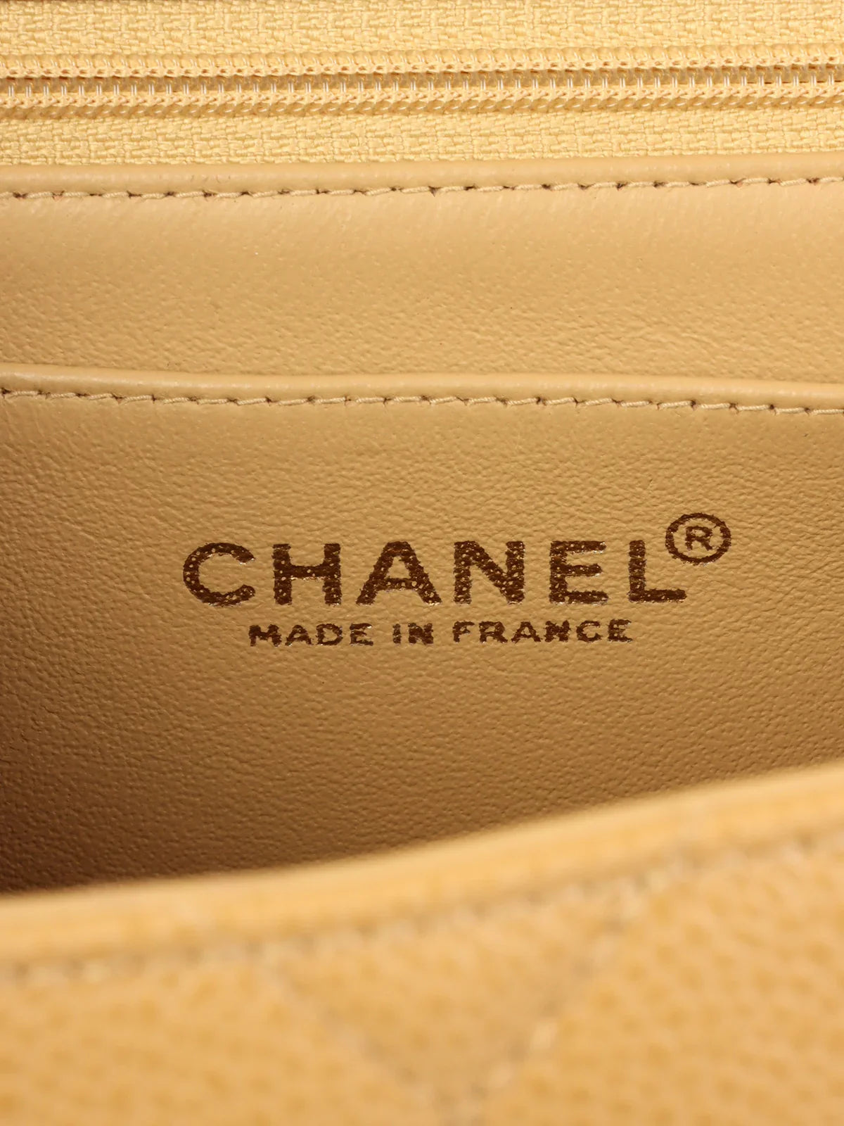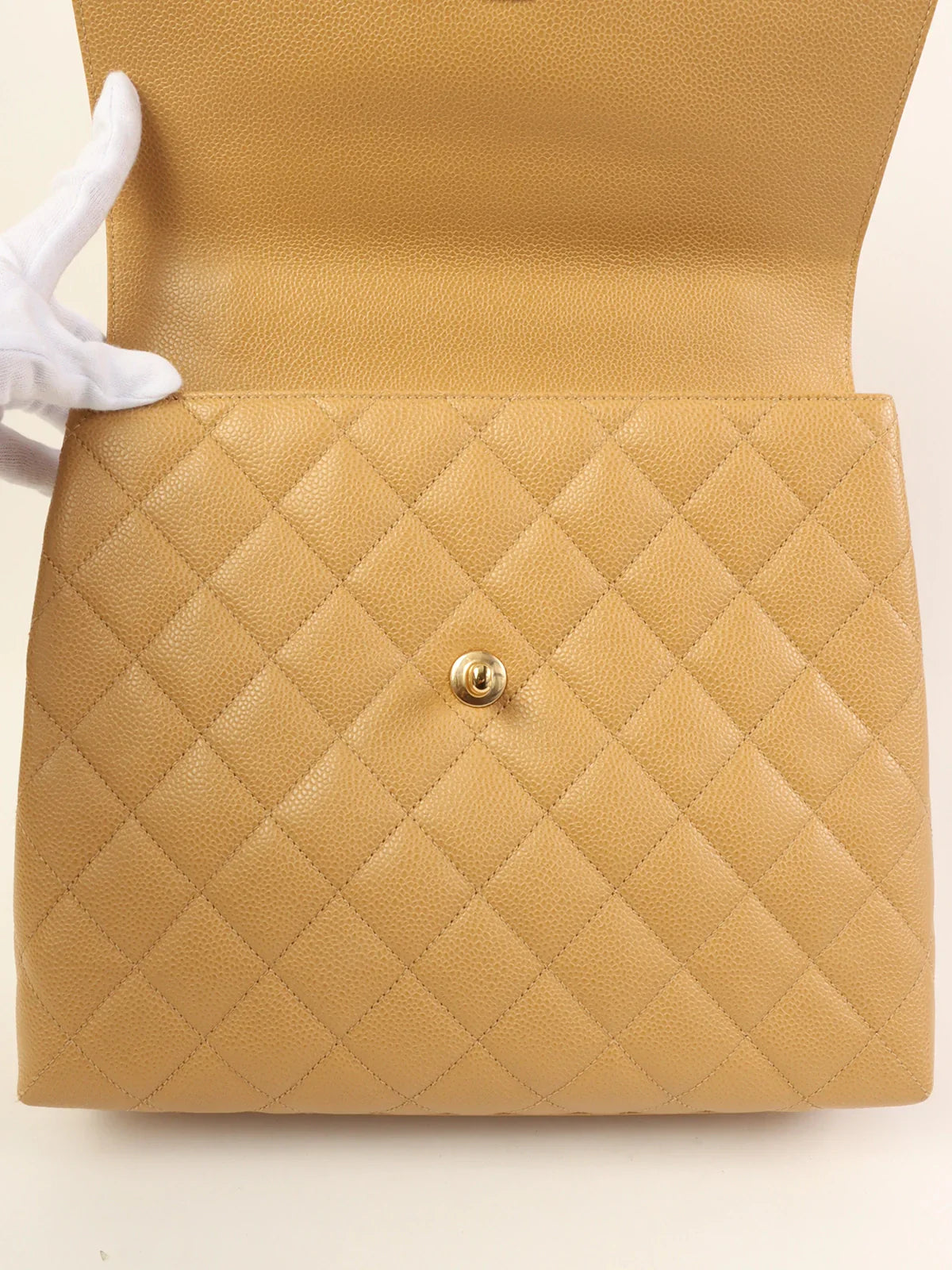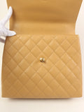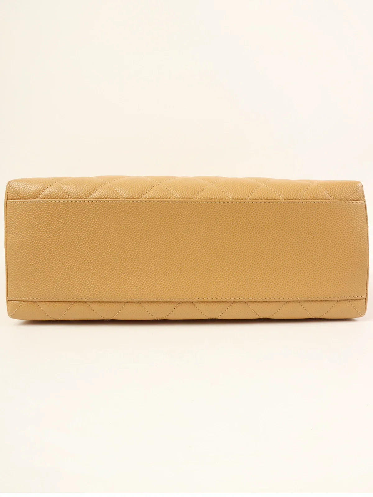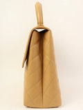 CHANEL Around 2000 Made Ciaviar Skin Stright Flap Turn-Lock Top Handle Bag Beige
