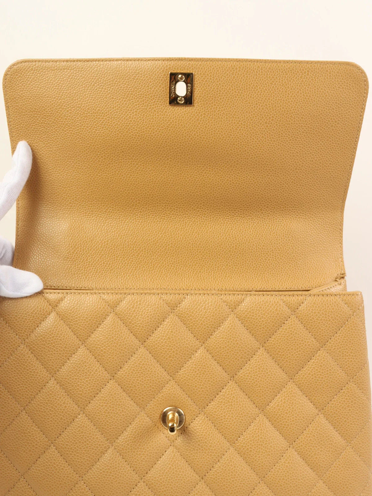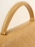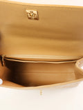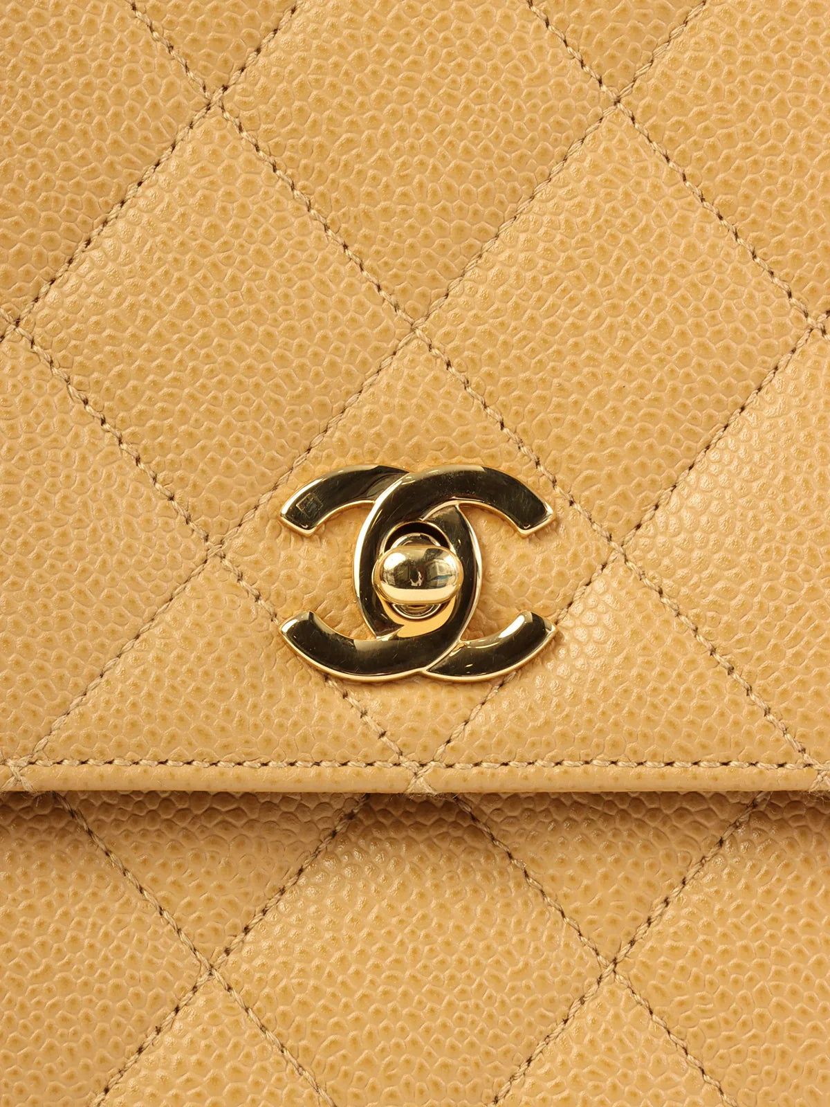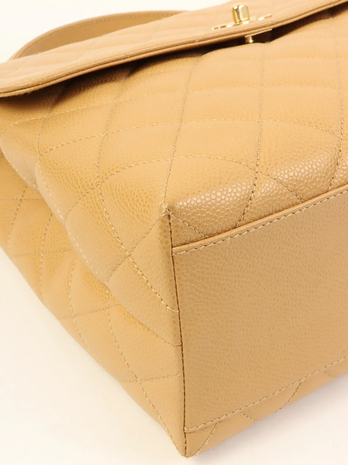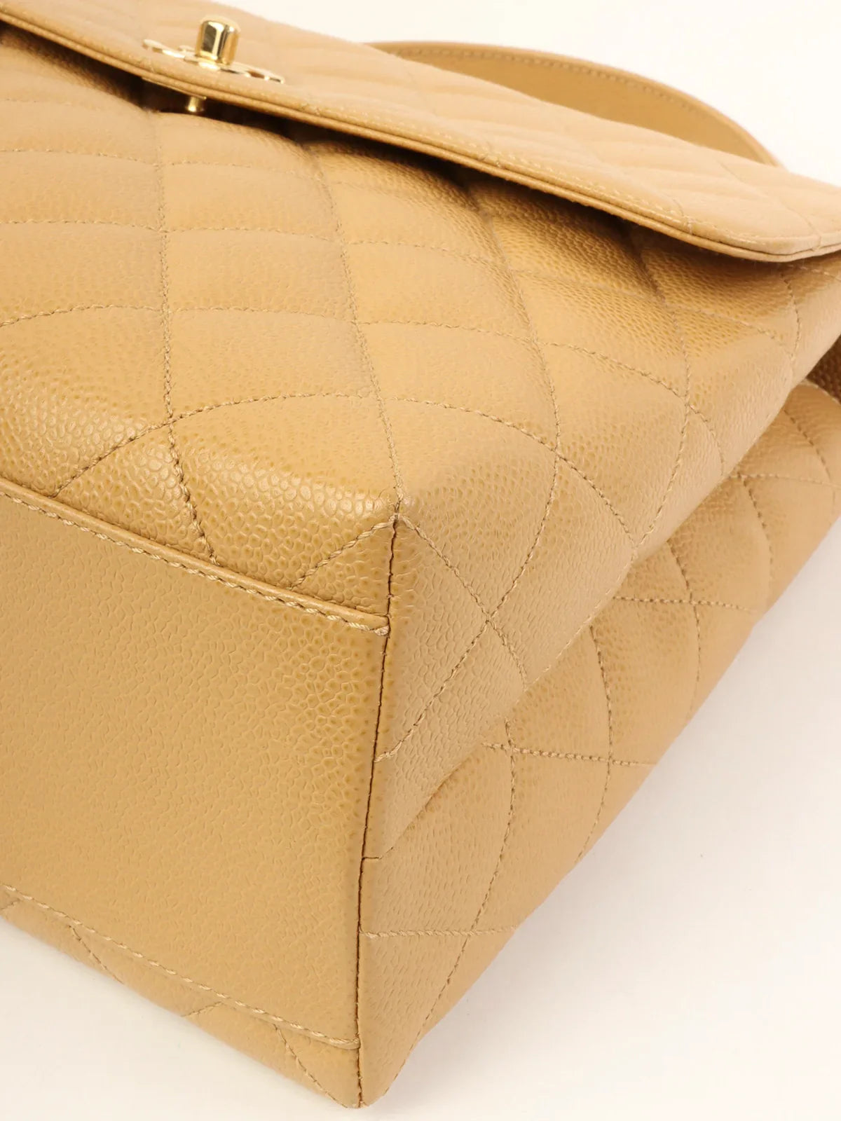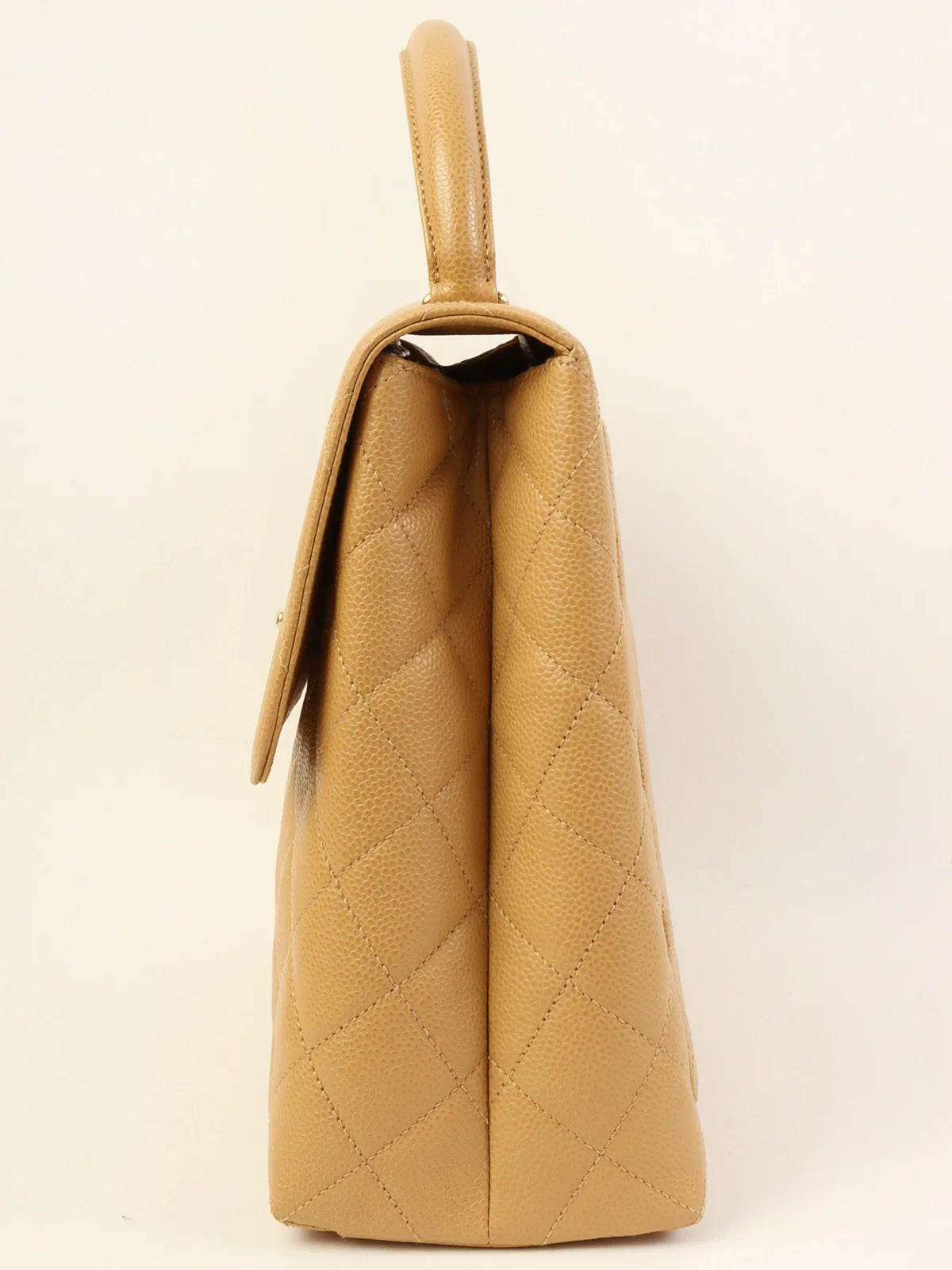 CHANEL Around 2000 Made Ciaviar Skin Stright Flap Turn-Lock Top Handle Bag Beige