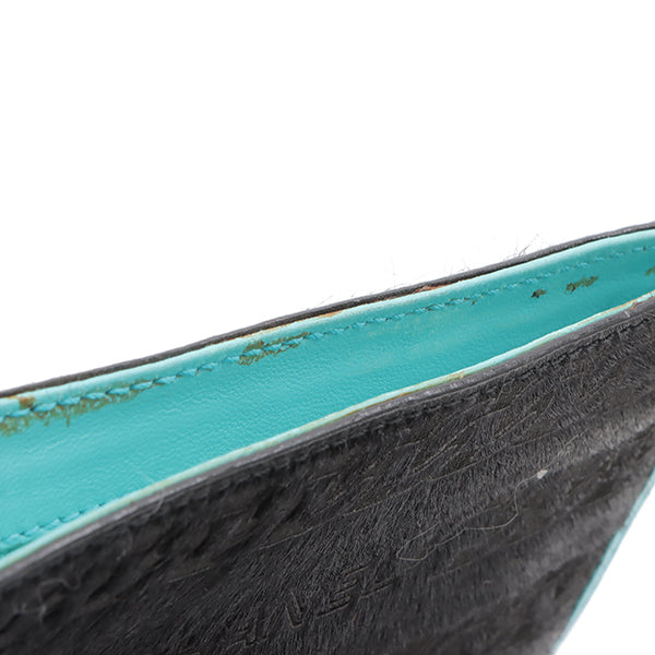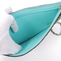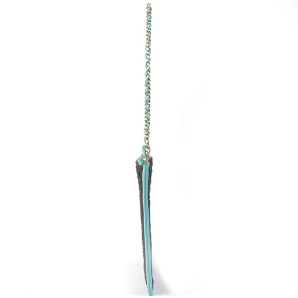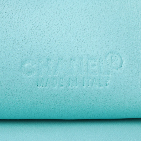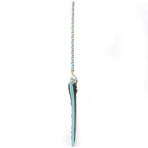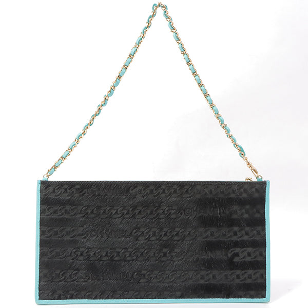 Chanel Around 2000 Made Unborn Calf Logo Embossed Chain Clutch Bag Black/Turquoise Blue