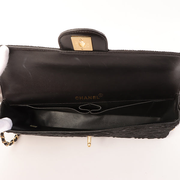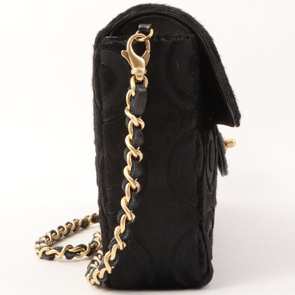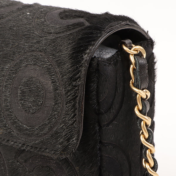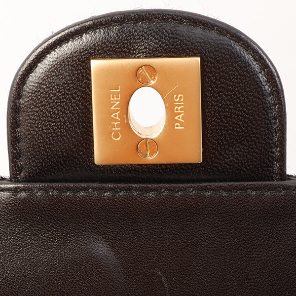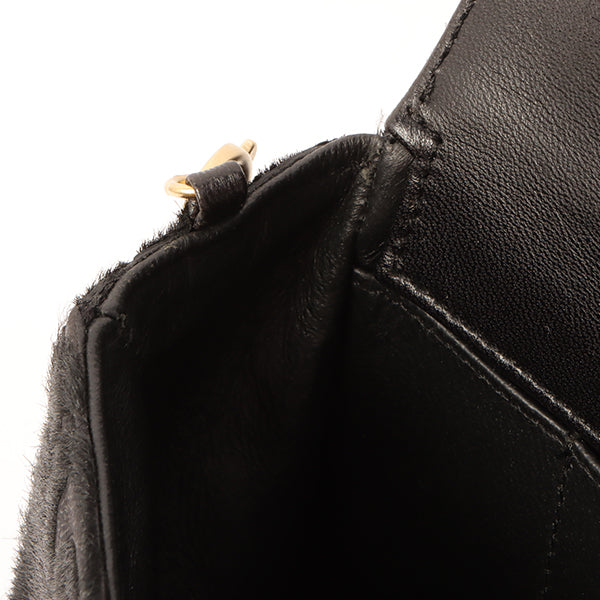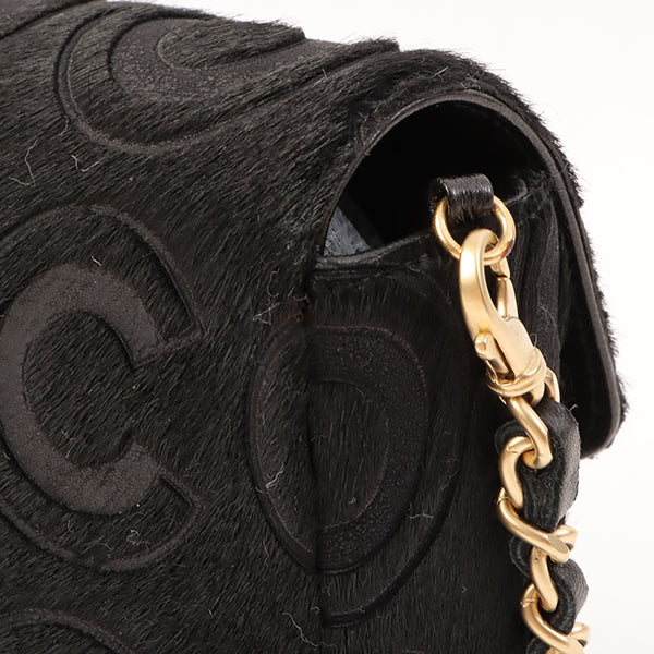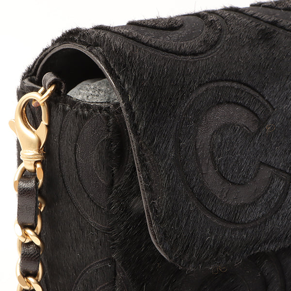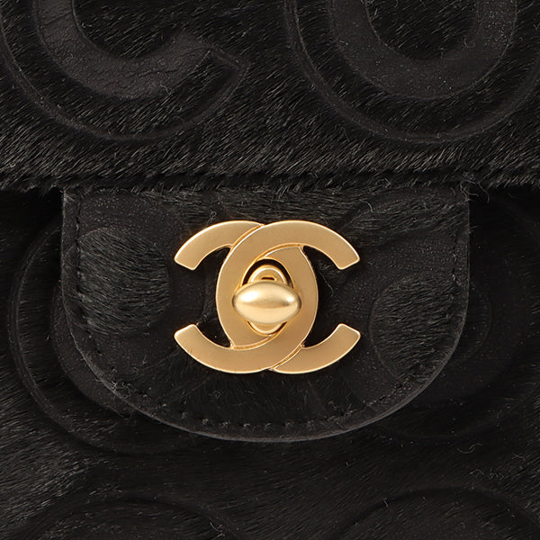 Chanel Around 2000 Made Unborn Calf Turn-Lock Logo Chain Bag Black