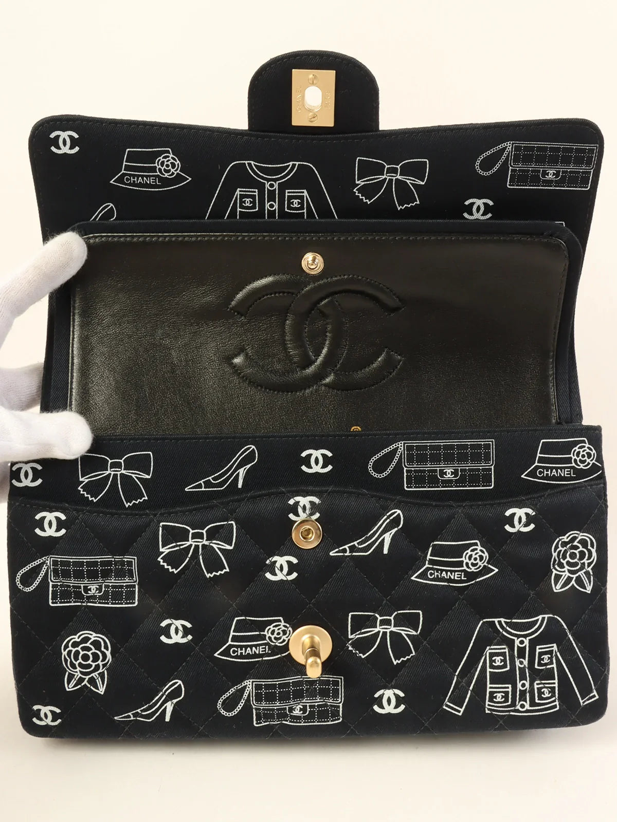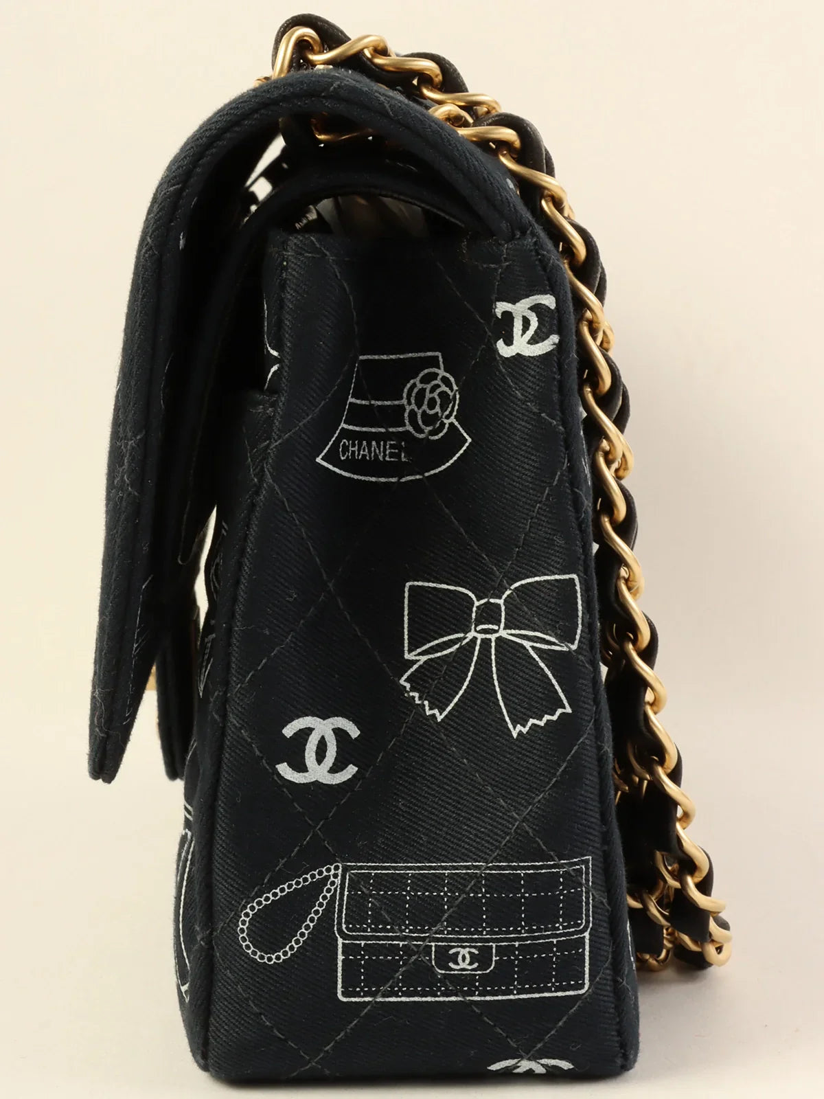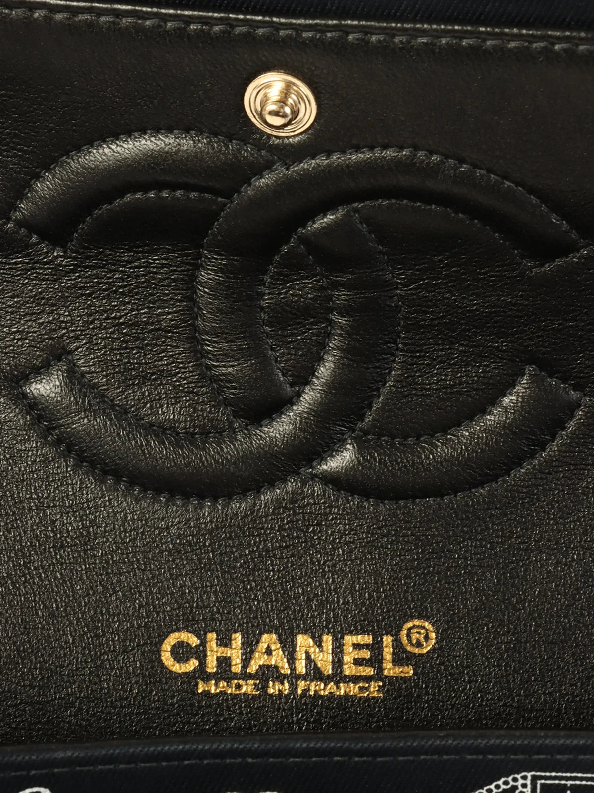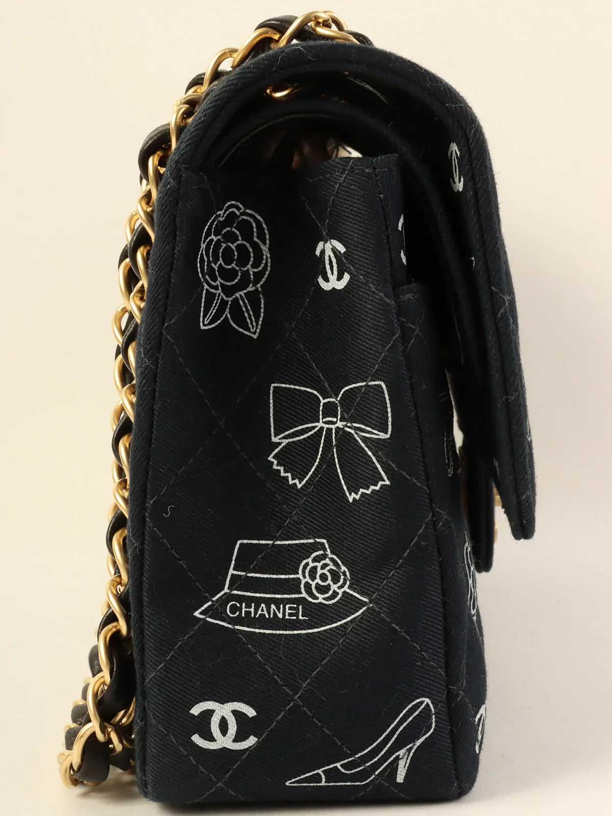 CHANEL Around 2001 Made Canvas Cc Mark Multi Print Classic Flap Chain Bag 25Cm Navy