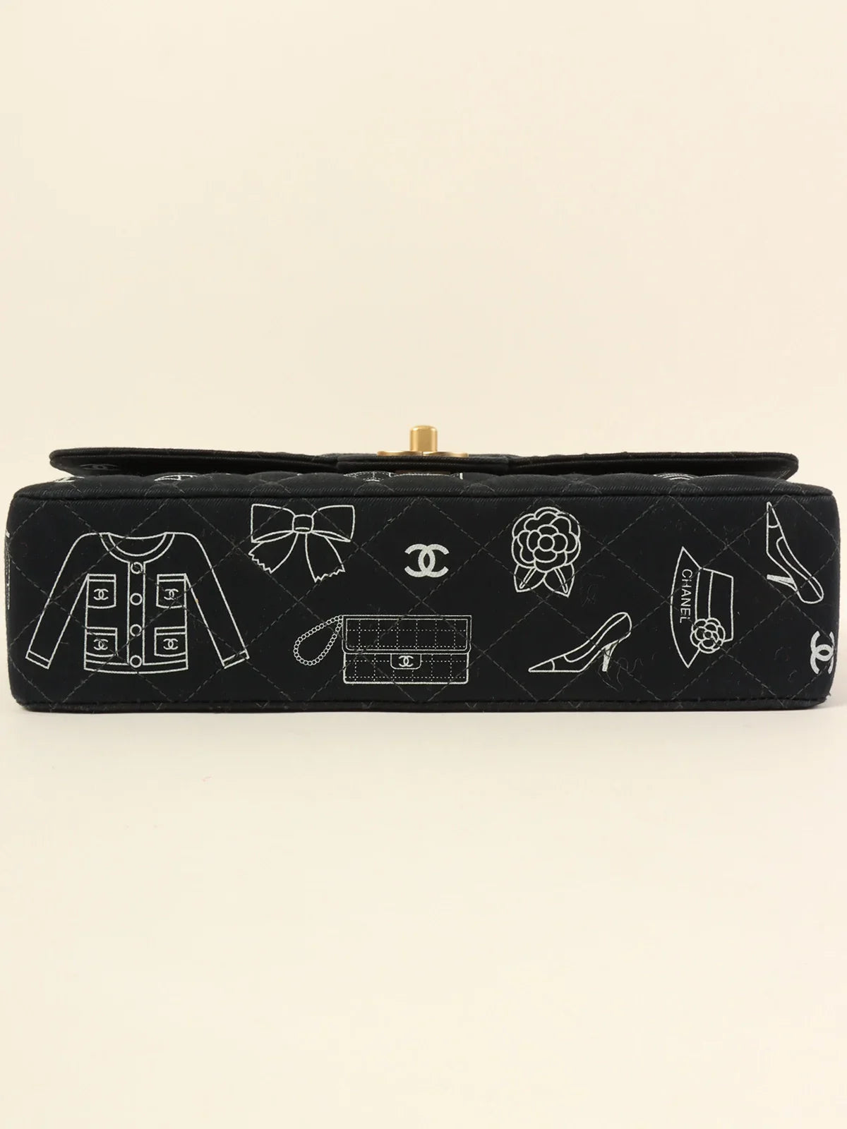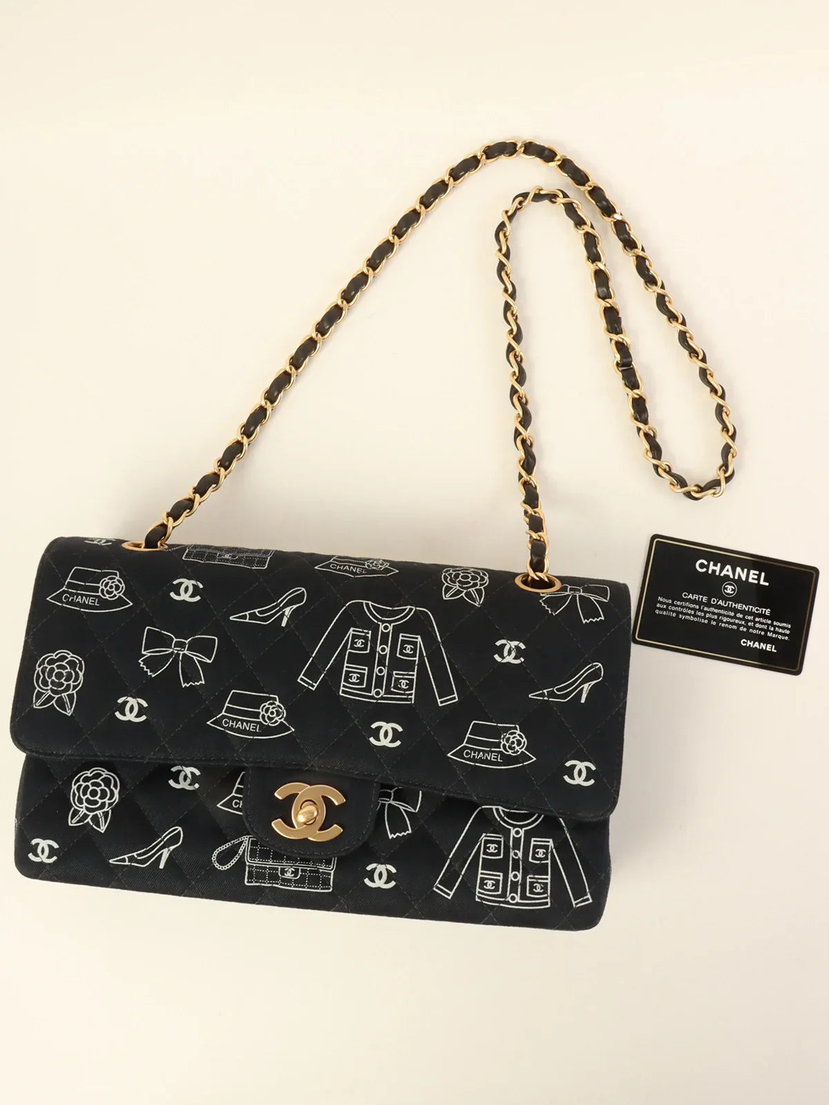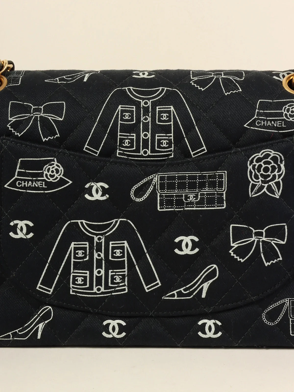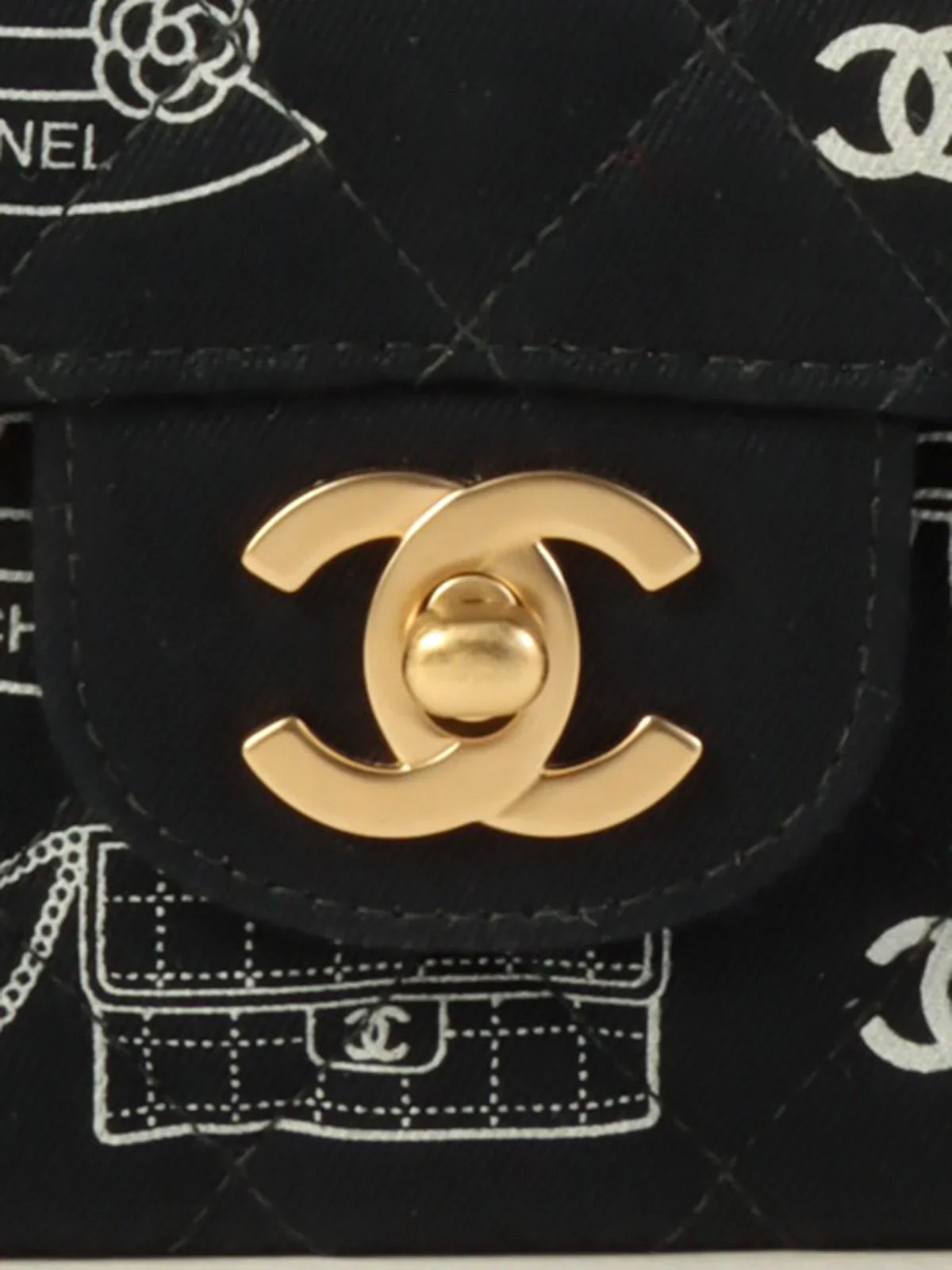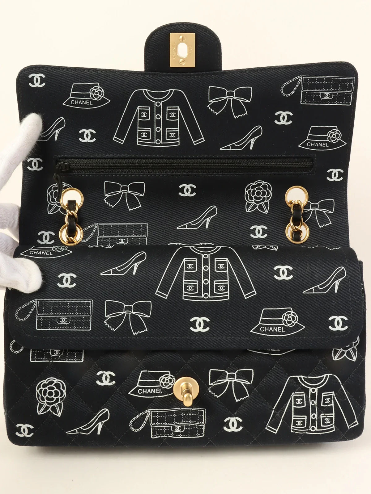 CHANEL Around 2001 Made Canvas Cc Mark Multi Print Classic Flap Chain Bag 25Cm Navy