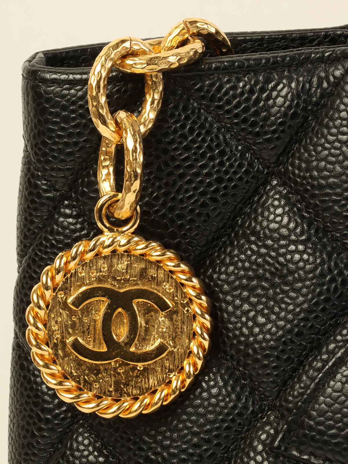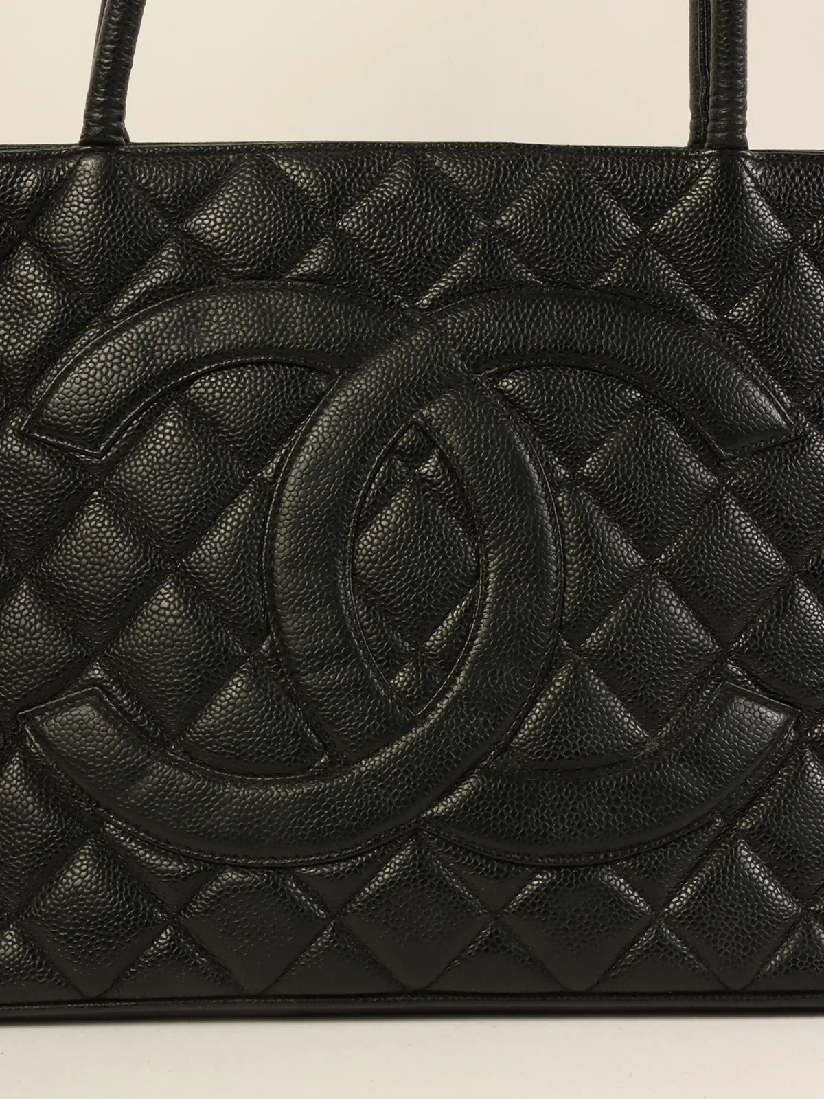 CHANEL Around 2001 Made Caviar Skin Cc Mark Stitch Revival Tote Bag Black
