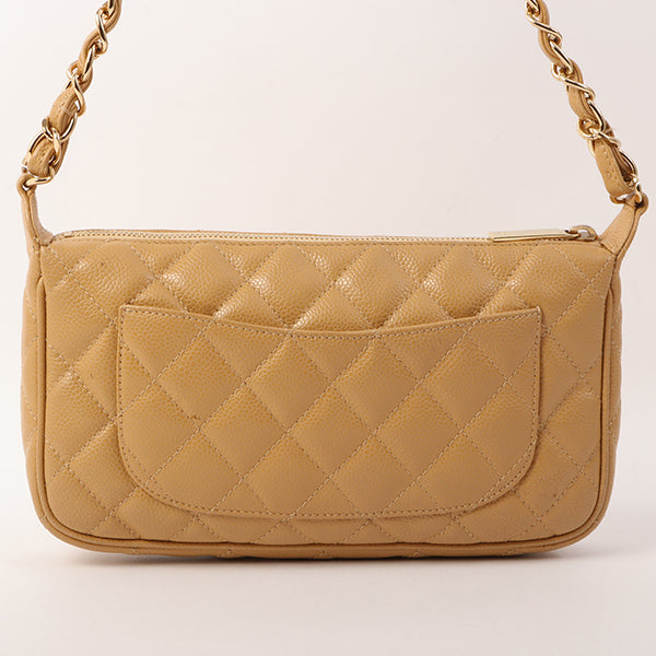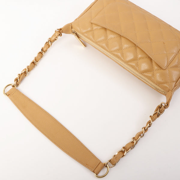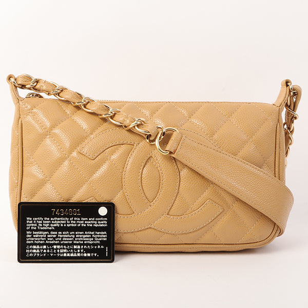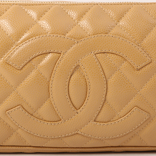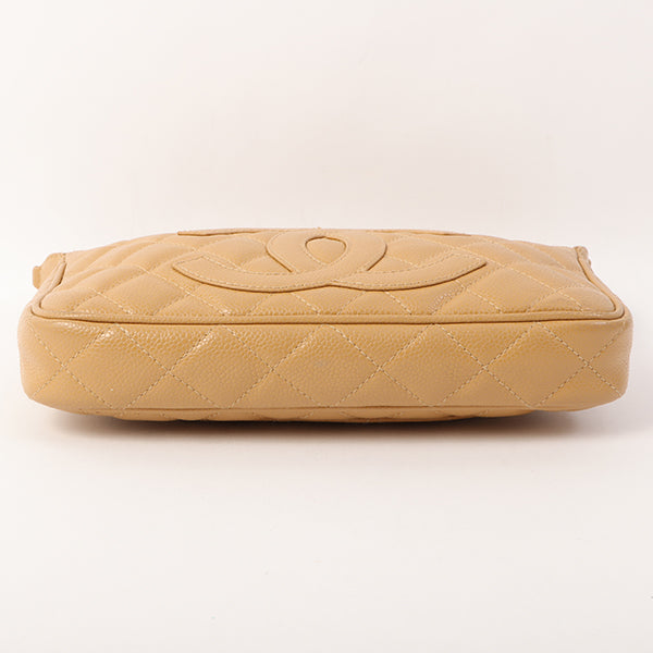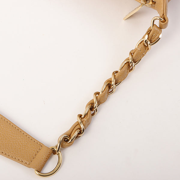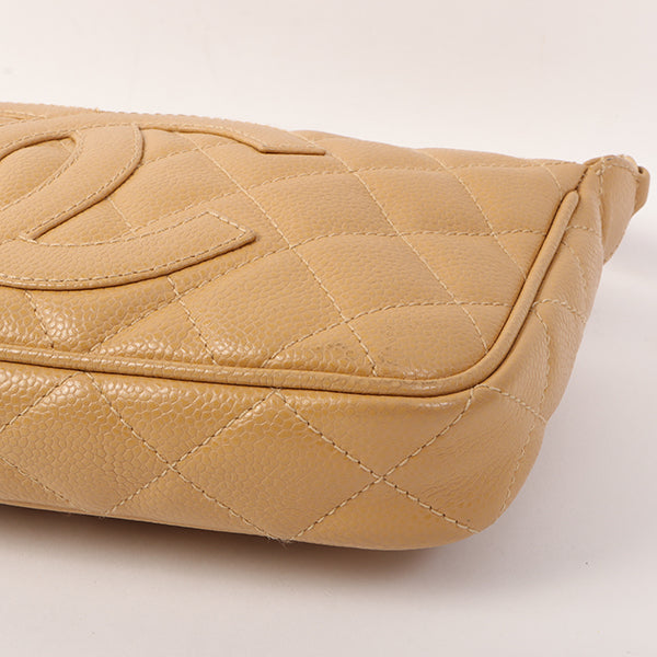 Chanel Around 2001 Made Caviar Skin Cc Mark Stitch Shoulder Bag Beige