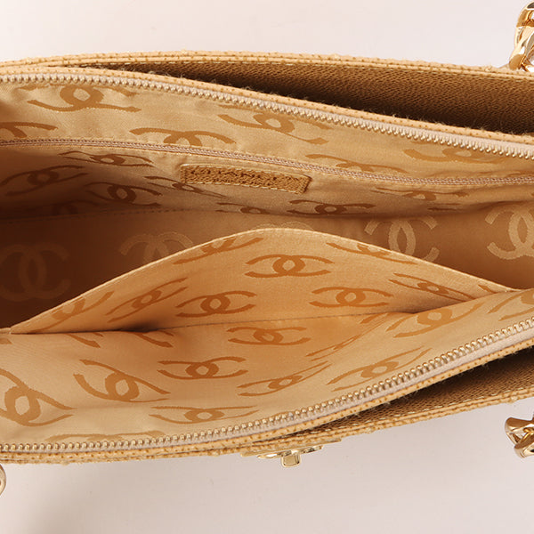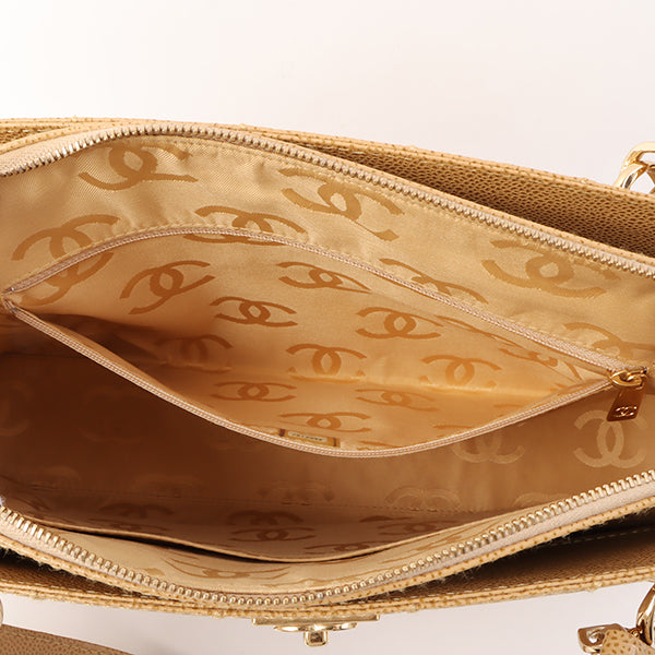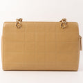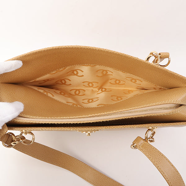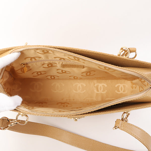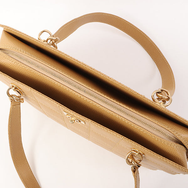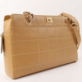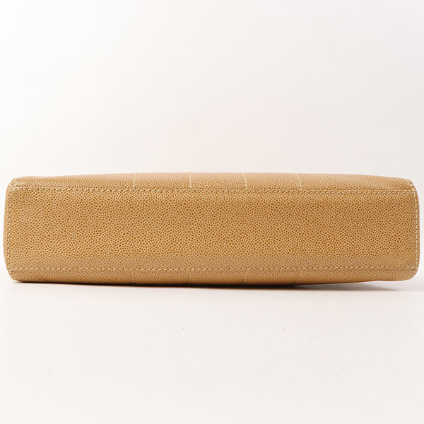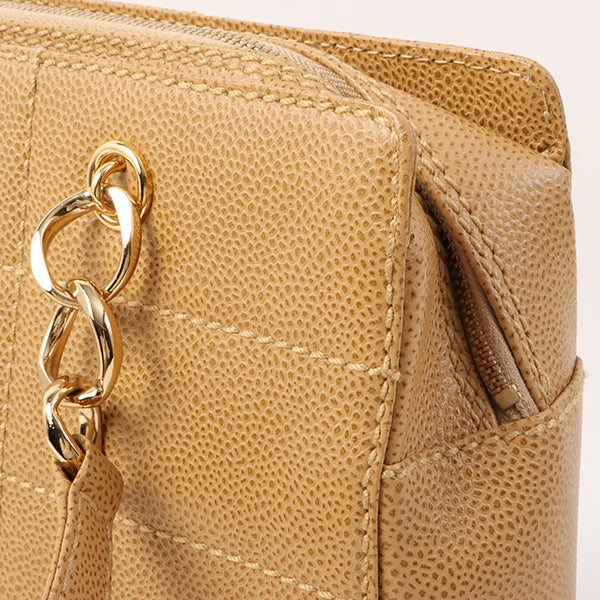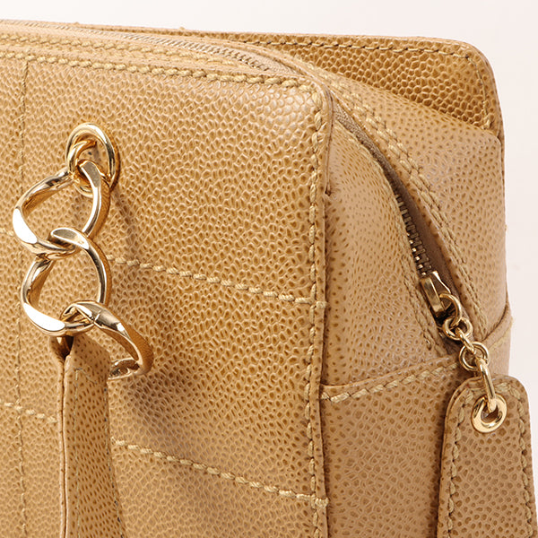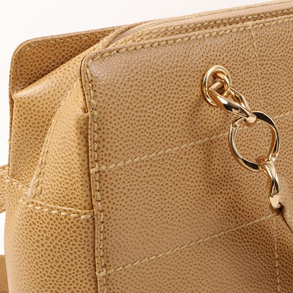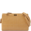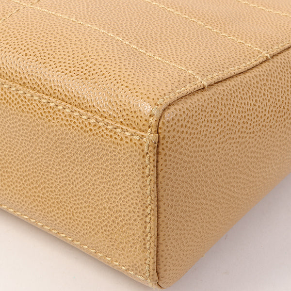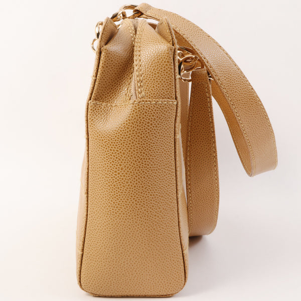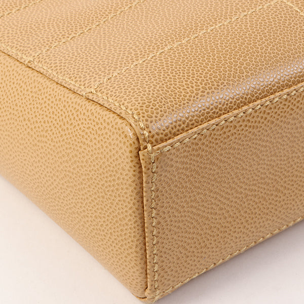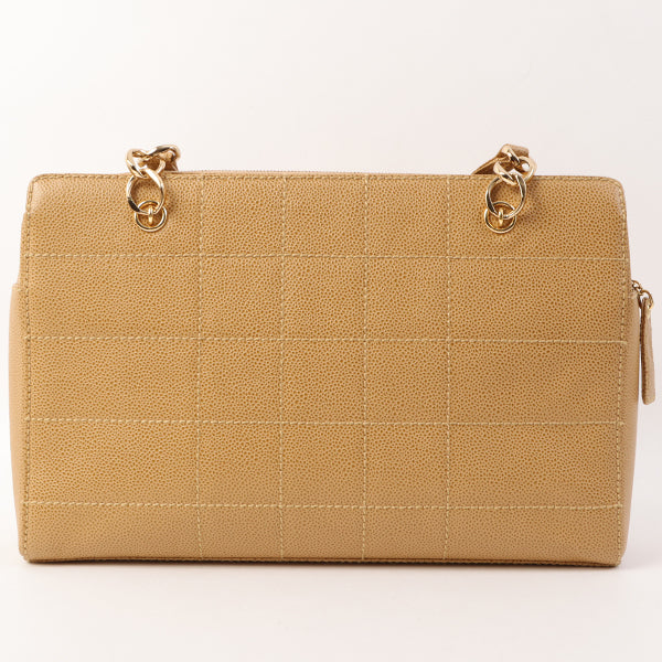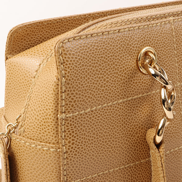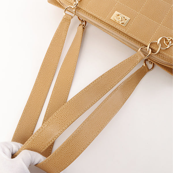 Chanel Around 2001 Made Caviar Skin Square Turn-Lock Chocolate Bar Shoulder Bag Beige