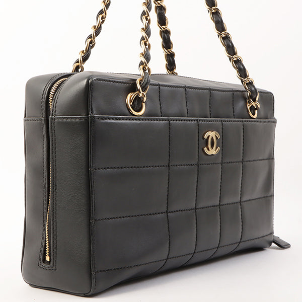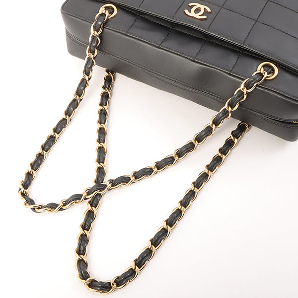 Chanel Around 2001 Made Chocolate Bar Stitch Cc Mark Plate Chain Bag Black