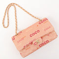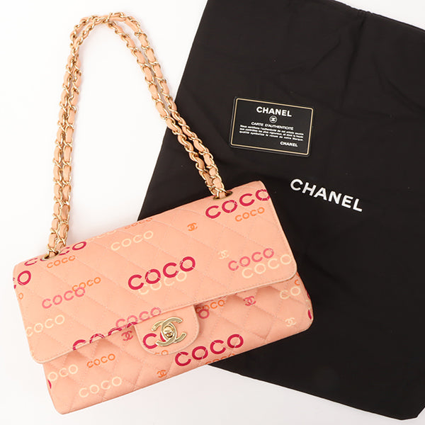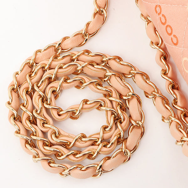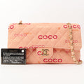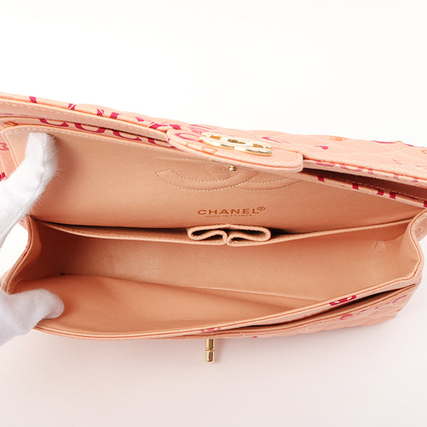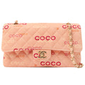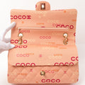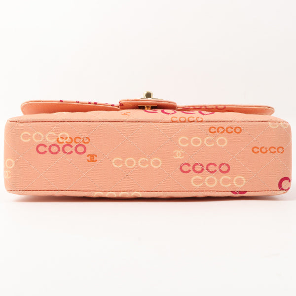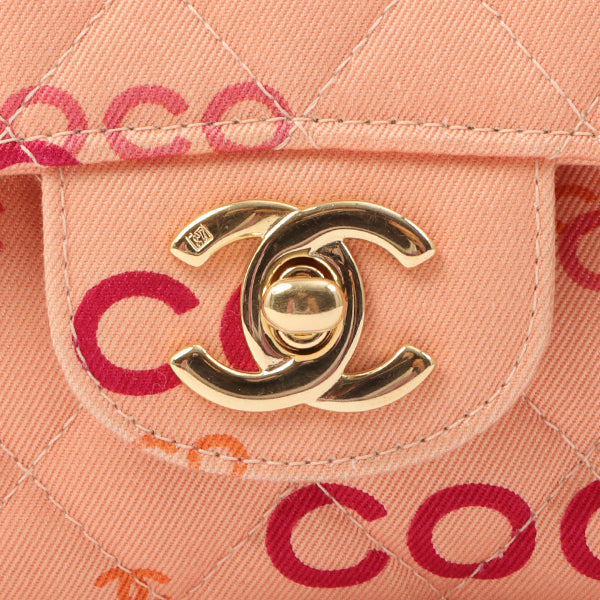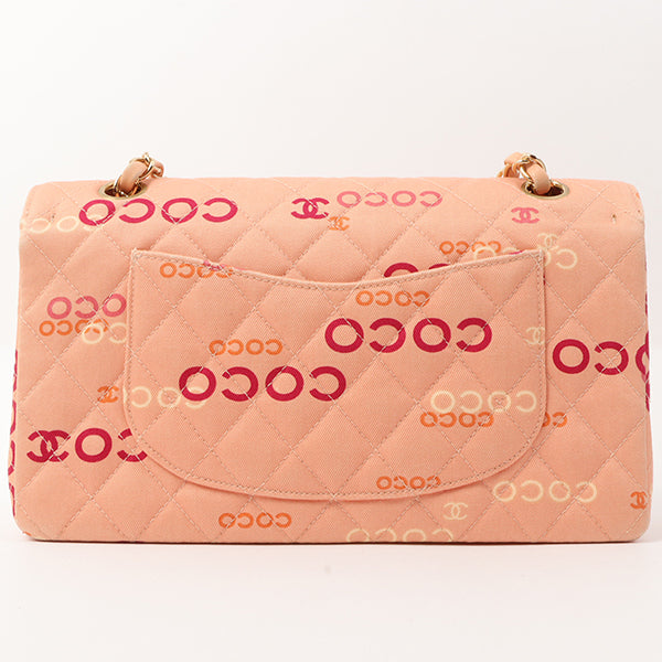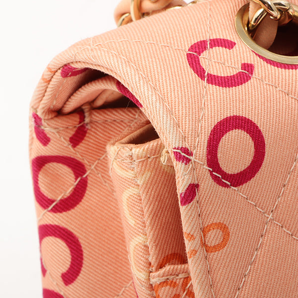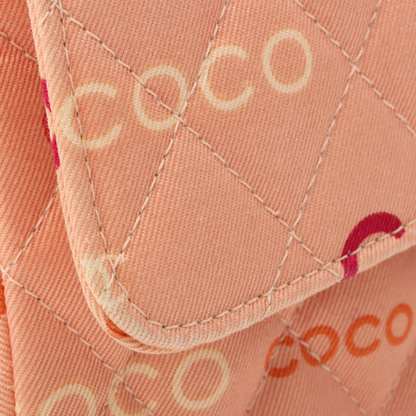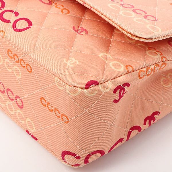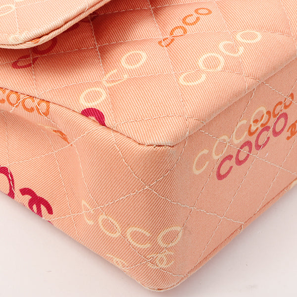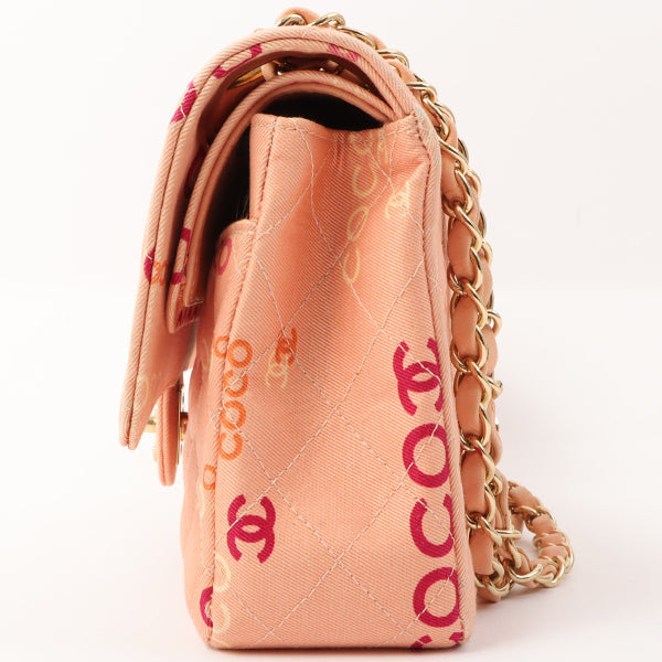 Chanel Around 2001 Made Cotton Logo Print Classic Flap Chain Bag 25Cm Coral Pink